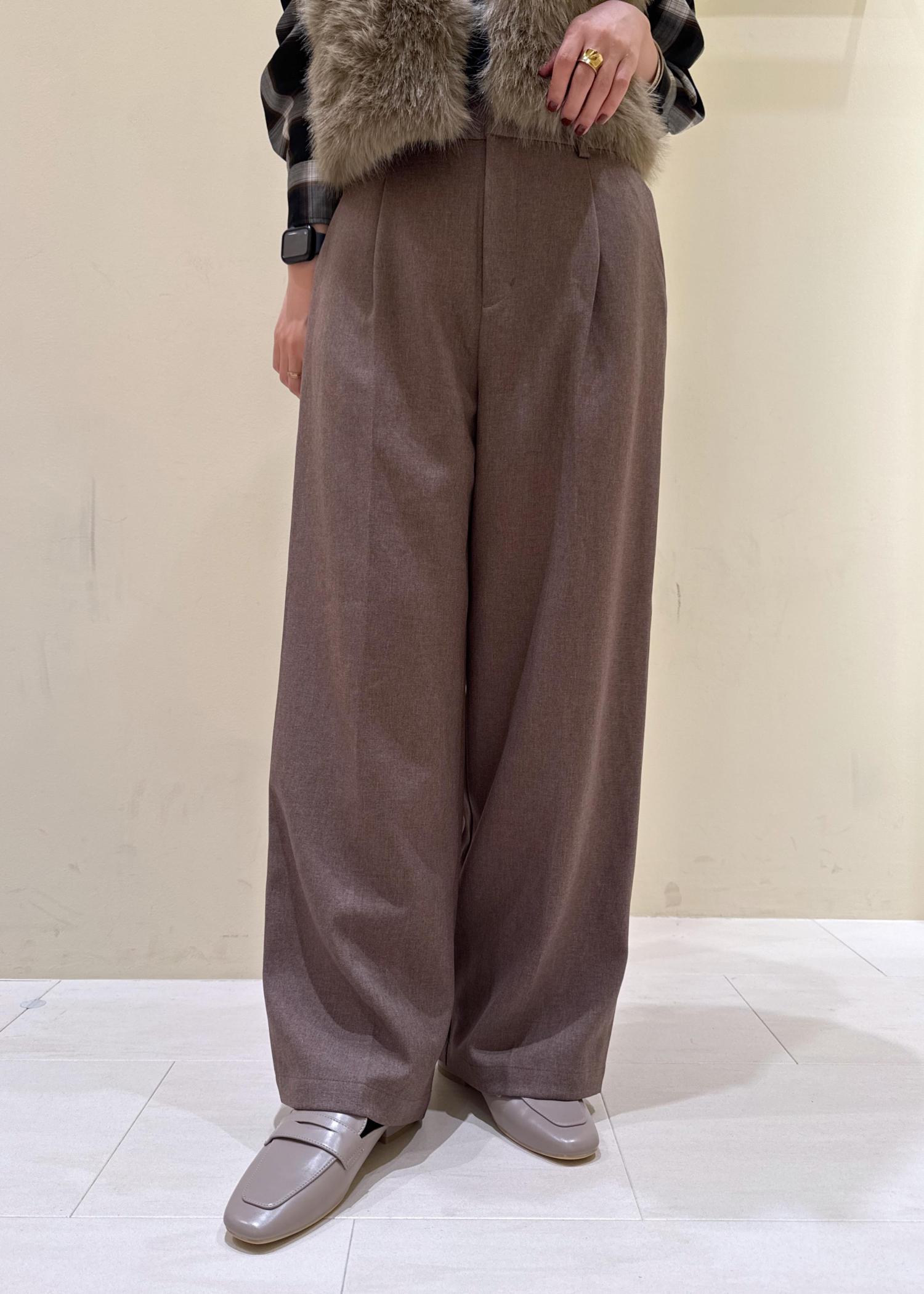 タック入りでウエスト周りをすっきりと見せてくれるワイドパンツです。