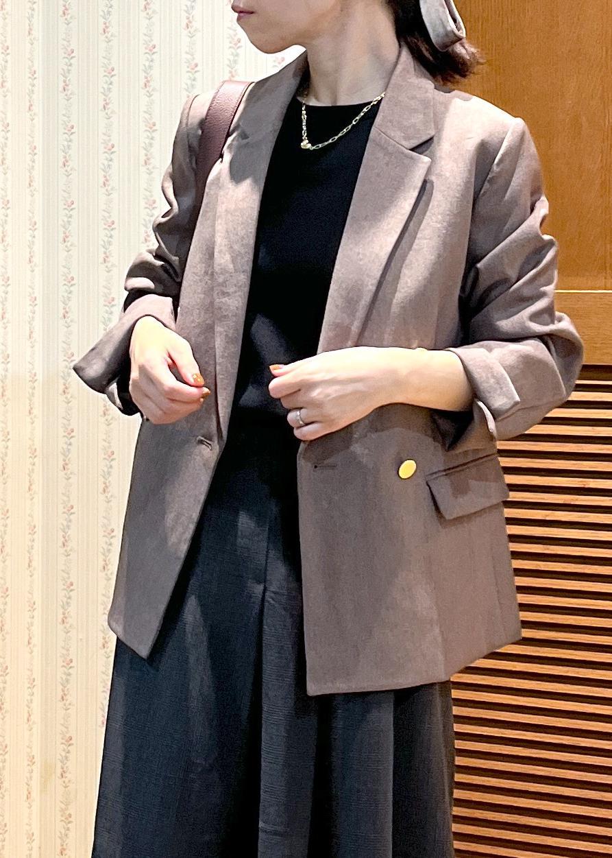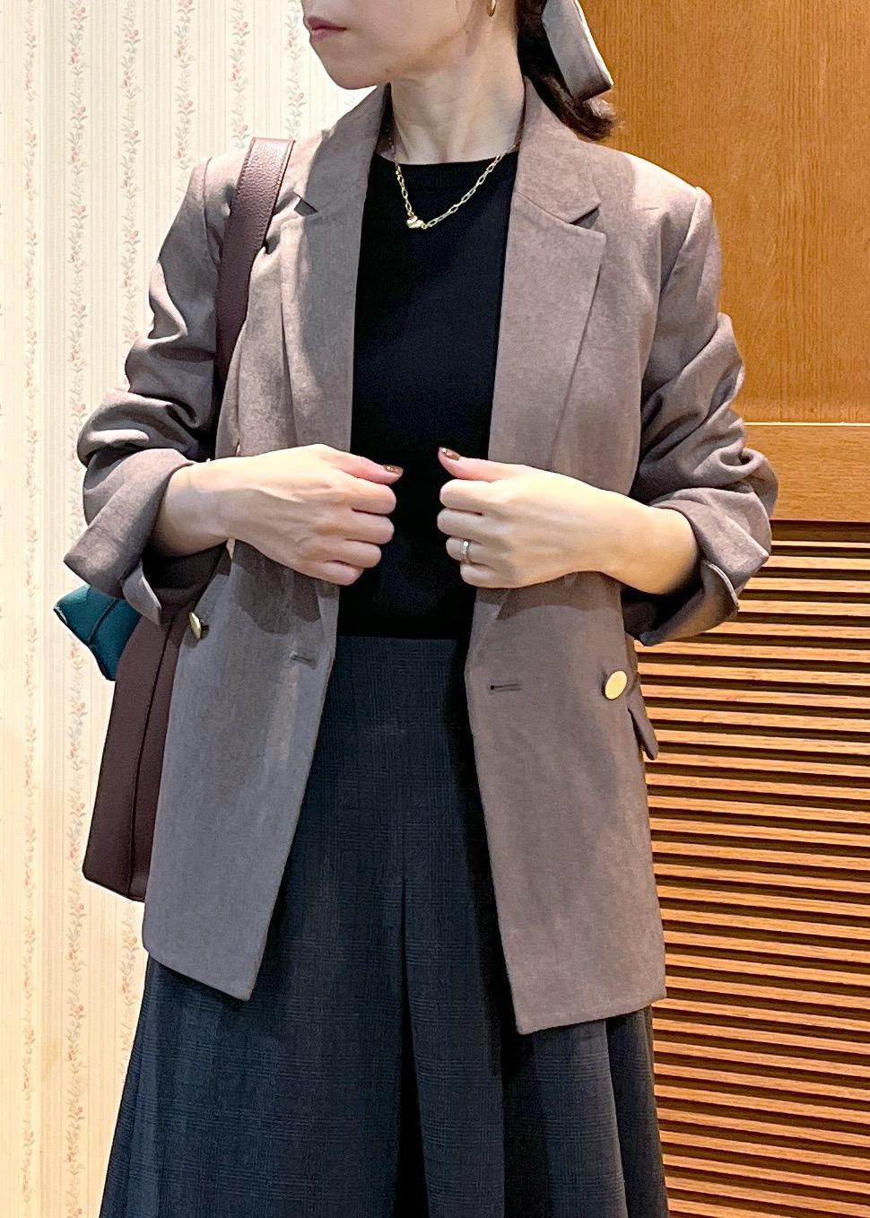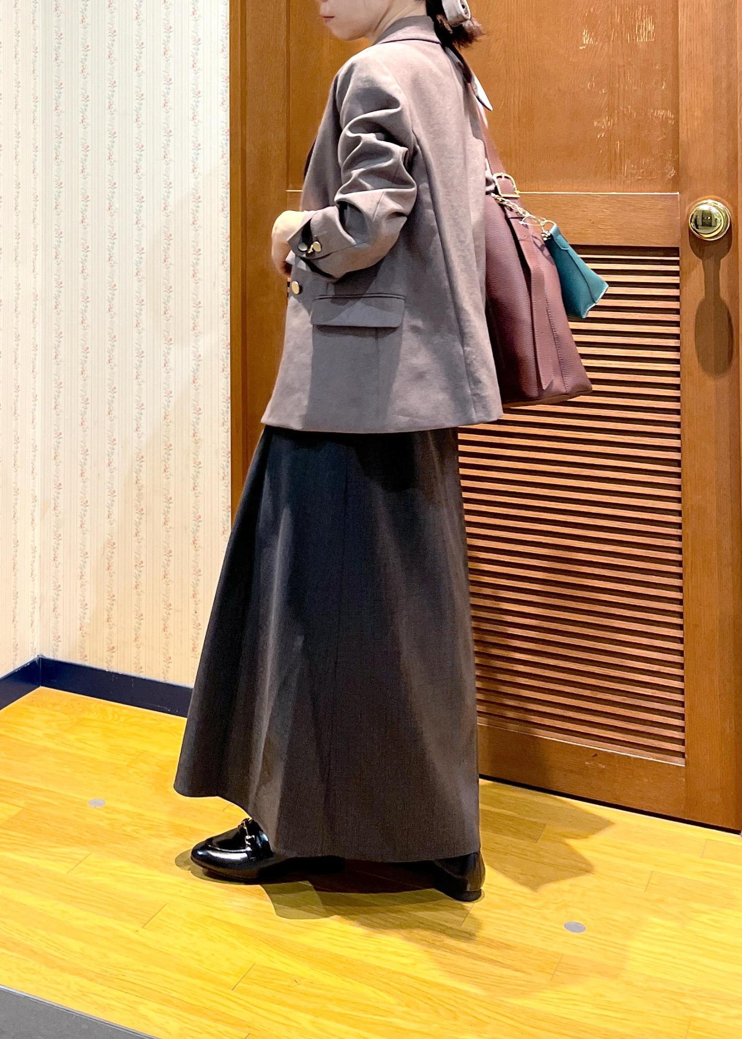 ジャケットにスカートを合わせた秋のきれいめコーデです。