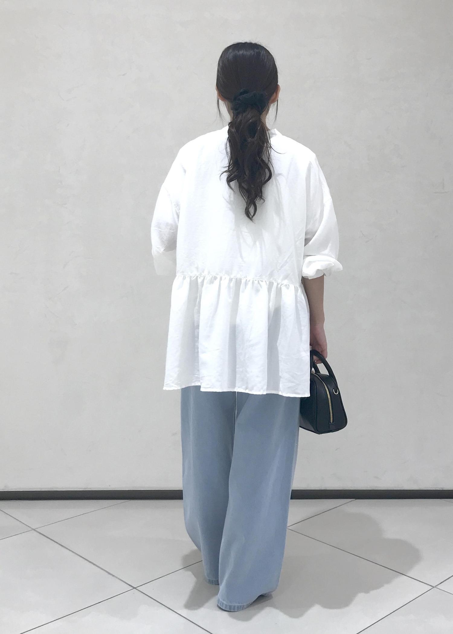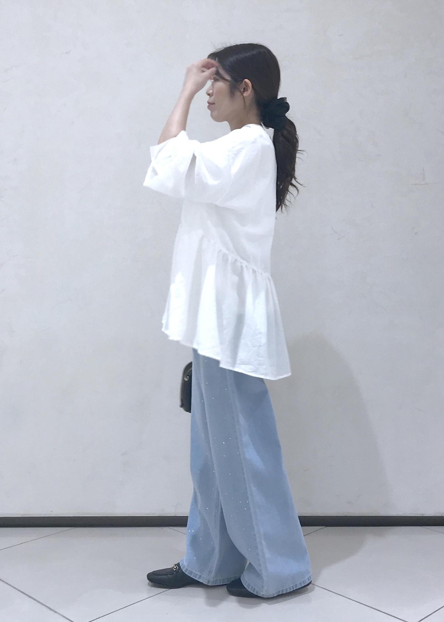 着用した感じはサラッとしていてゆったりなサイズ感です。ヒップラインも隠れるので安心感があります♪ -