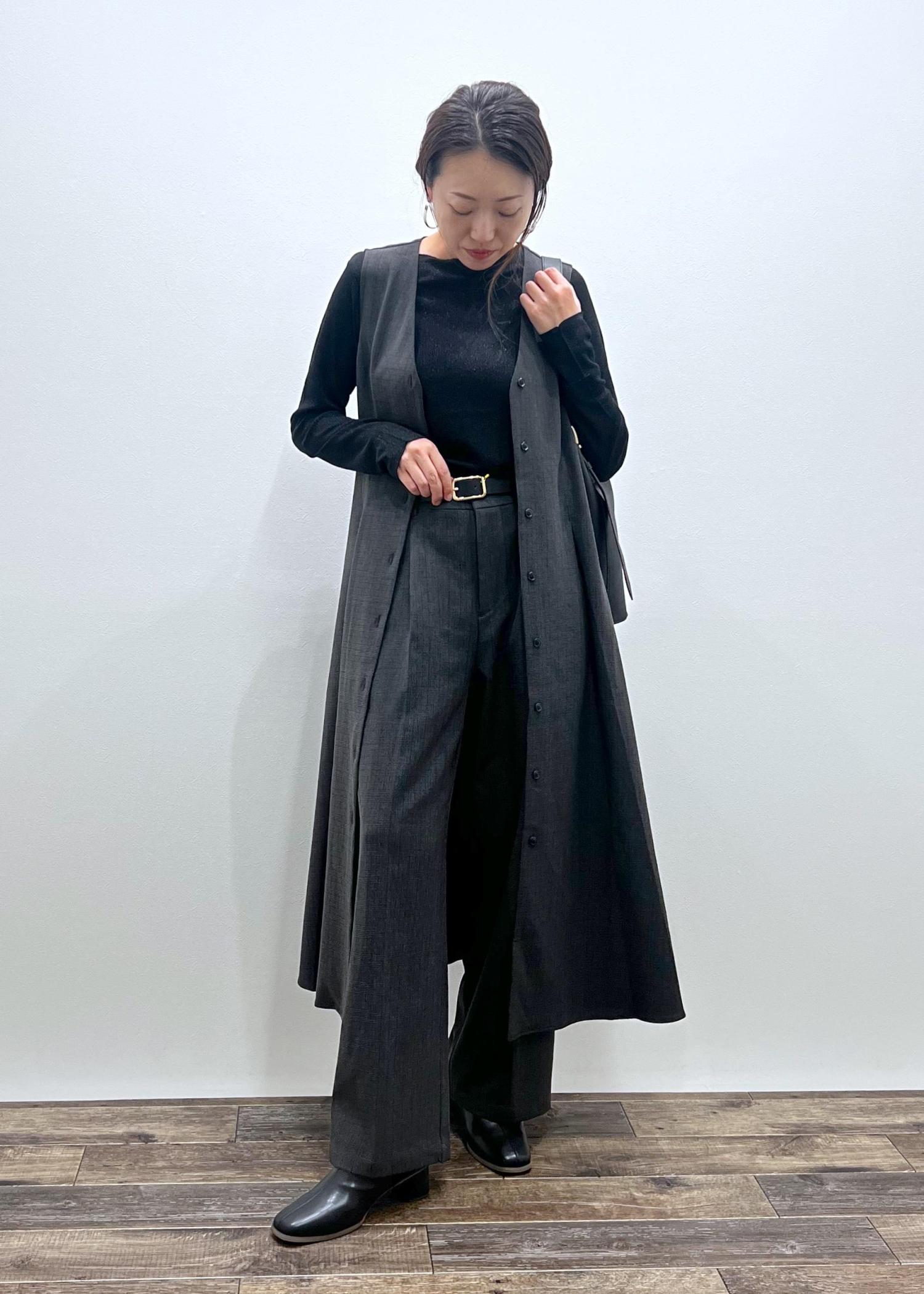 1枚では勿論、パンツ合わせでジレスタイルもおすすめです。