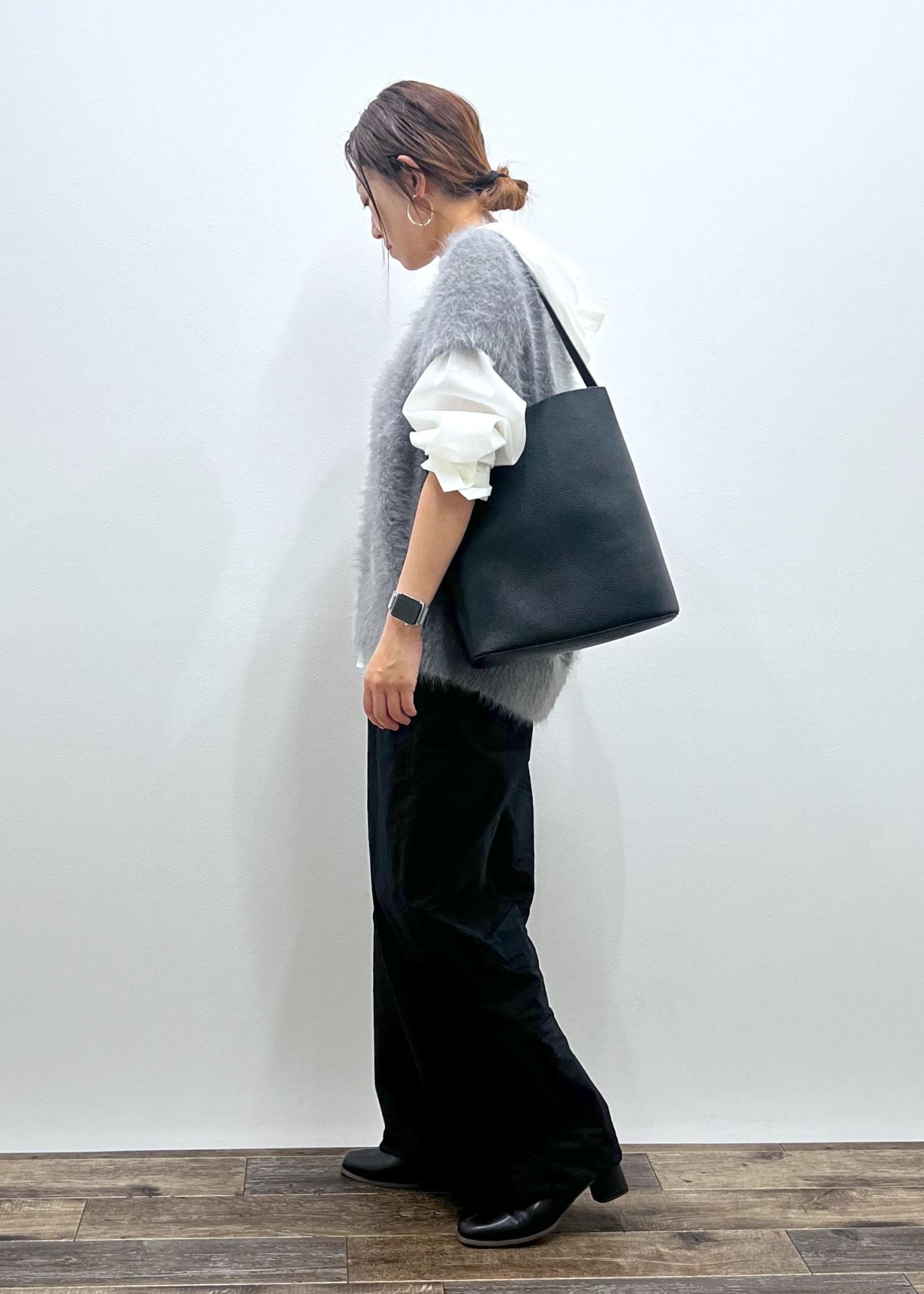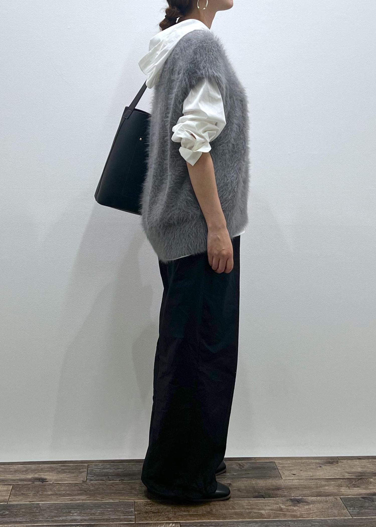 羽織りだけではなく、ジレやビスチェなどのレイヤードもしやすいサイズ感です。 -