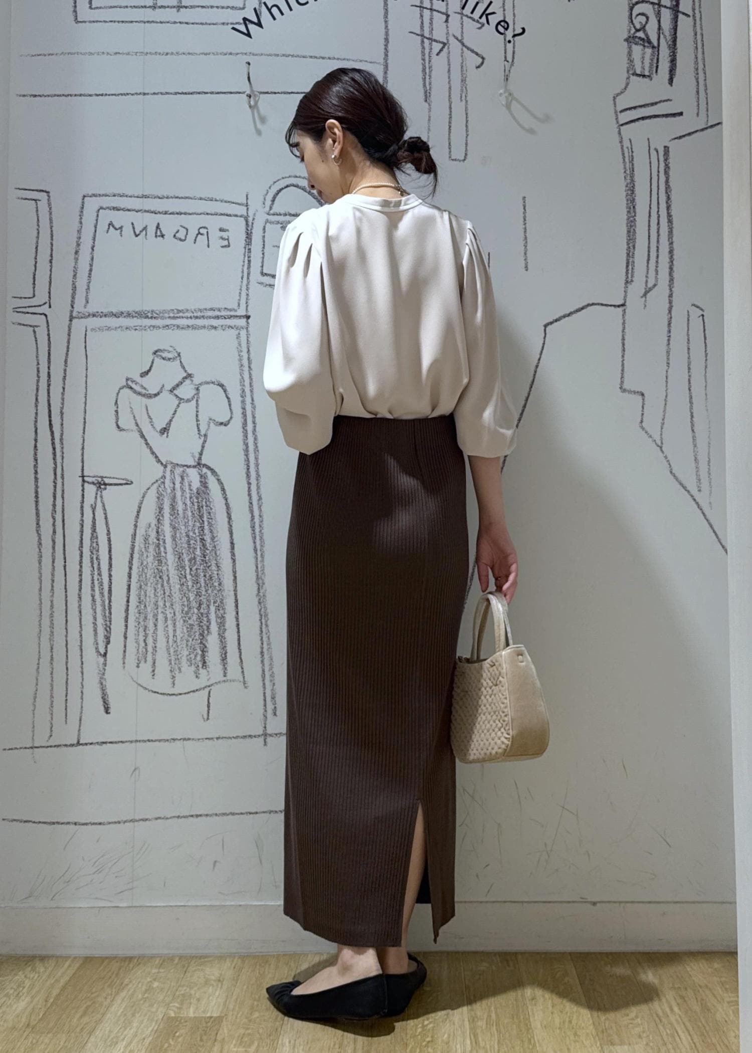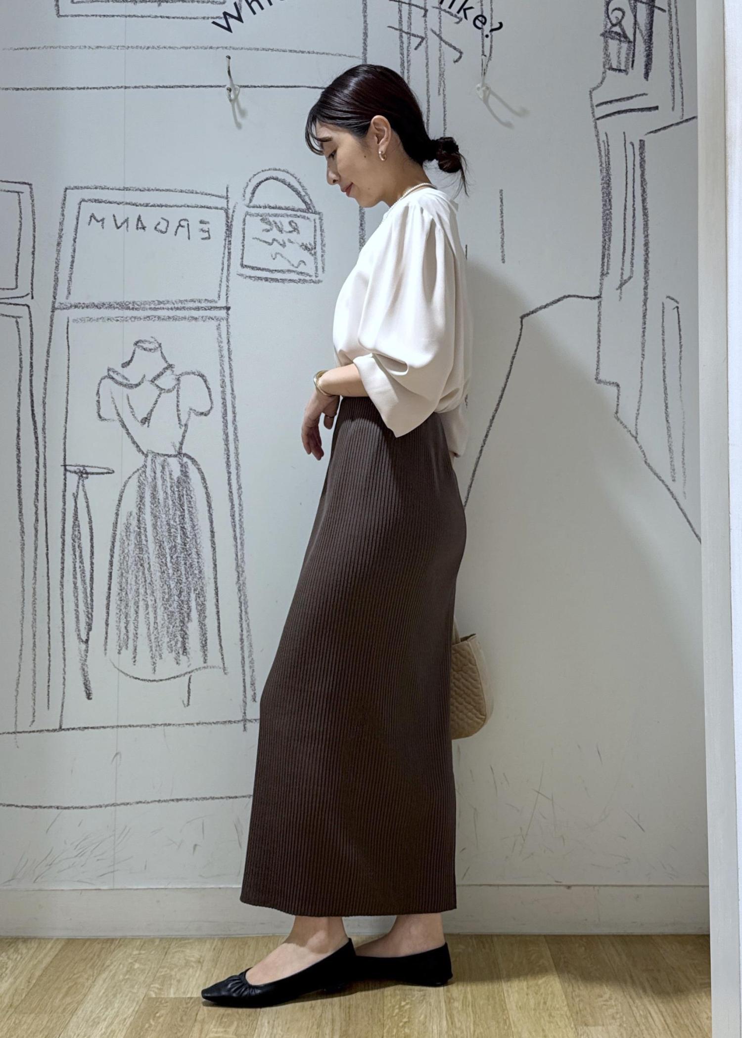 ROPÉ PICNICトタンテレコ Iラインリブニットスカートカーキ系 / 38¥4,499レビューストレッチ性とバックスリット入りで動きやすいです。リブデザインなので縦のラインを強調してくれるのでスッキリ見えが叶います。162㎝で足首に掛かる長さです。