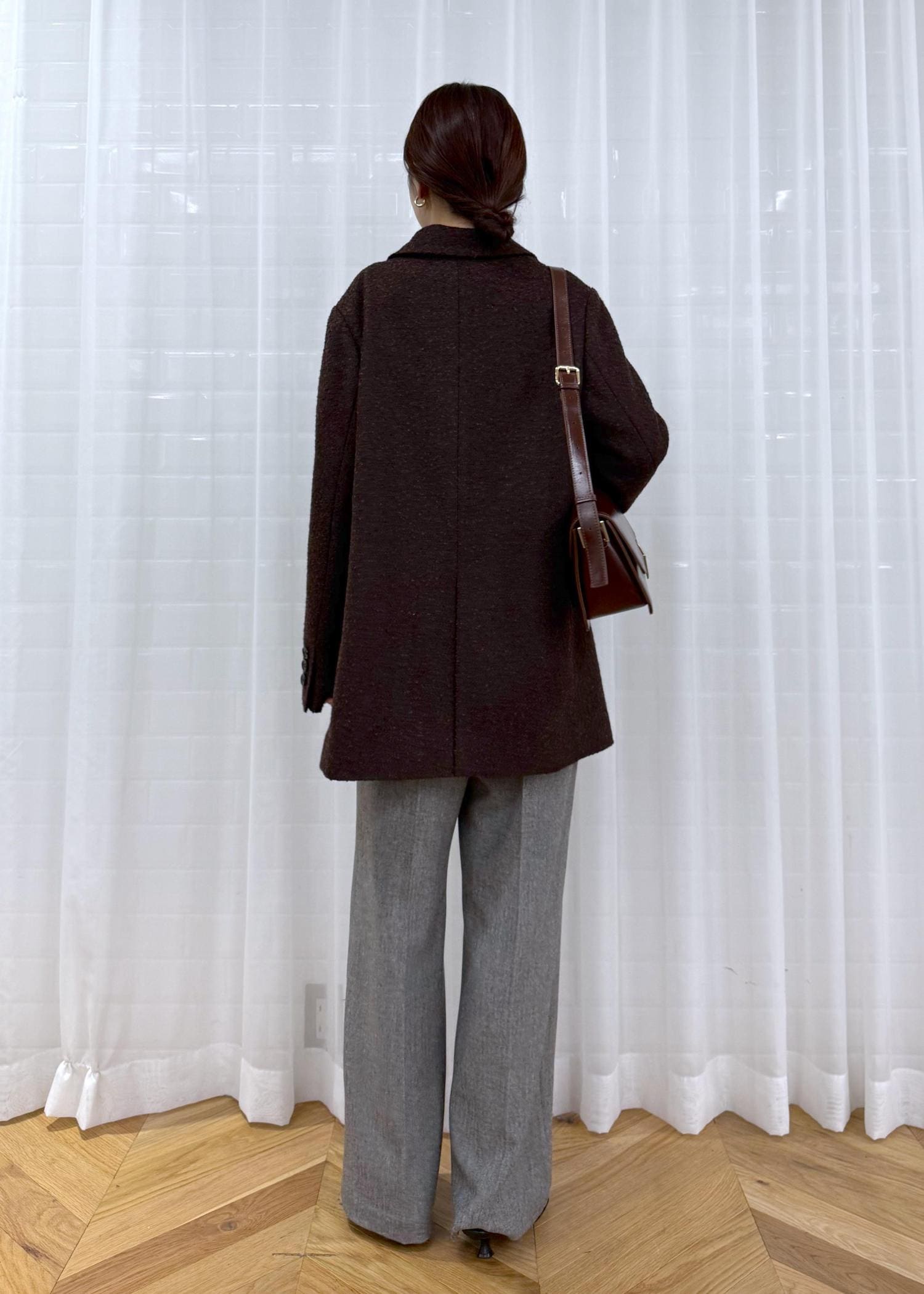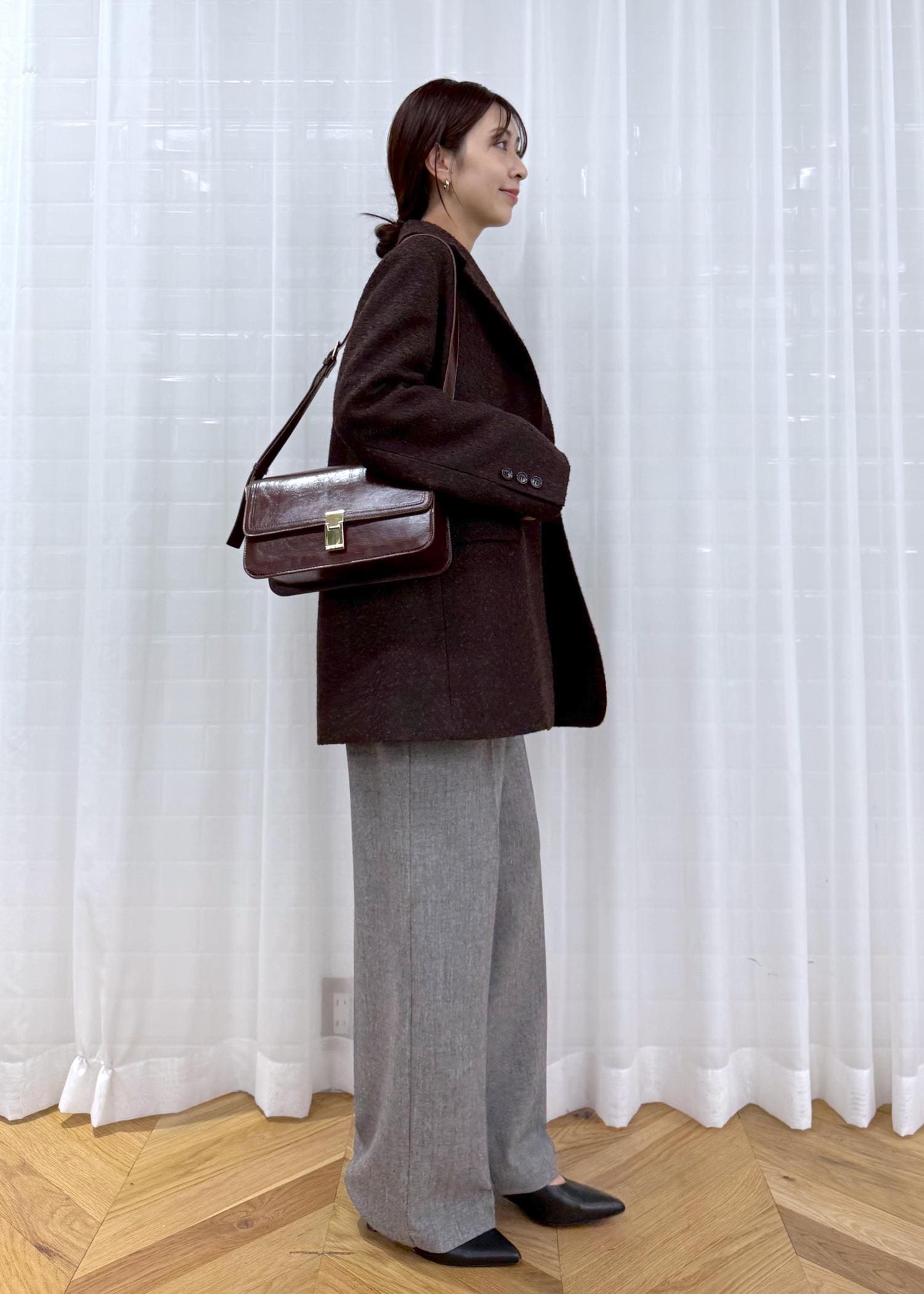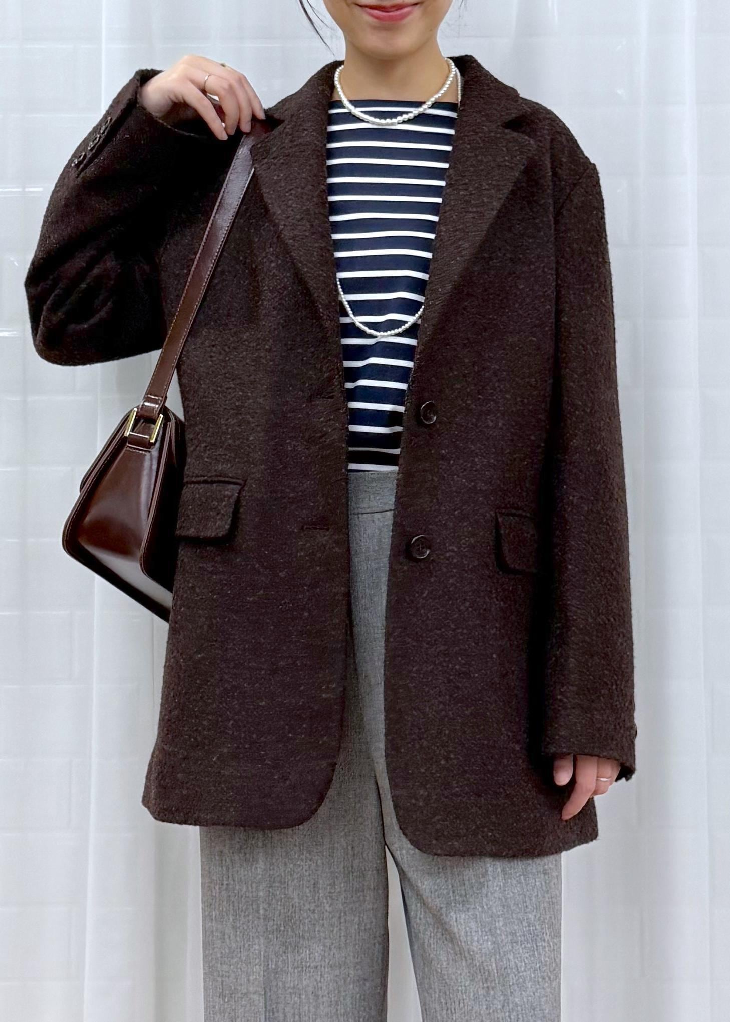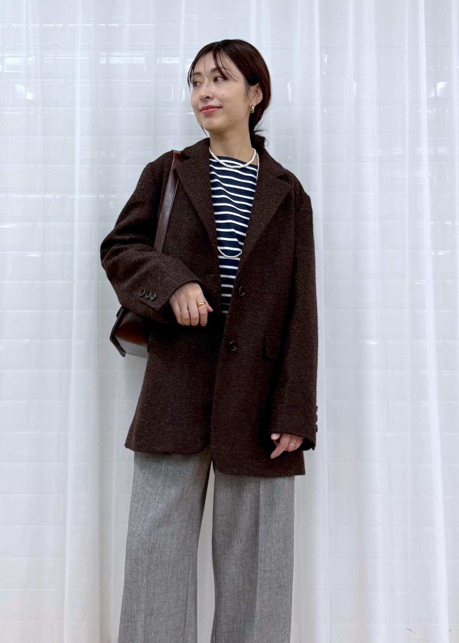 ROPÉ PICNICネップツイードテーラードジャコットダークブラウン系 / F¥13,200レビュー身幅・袖幅ともにゆとりがあるので中肉のニットやトレーナーなら問題なく羽織れます。着丈はお尻がちょうど隠れる長さ。表情のある生地のため、シンプルなインナー合わせもこなれて見えます♪