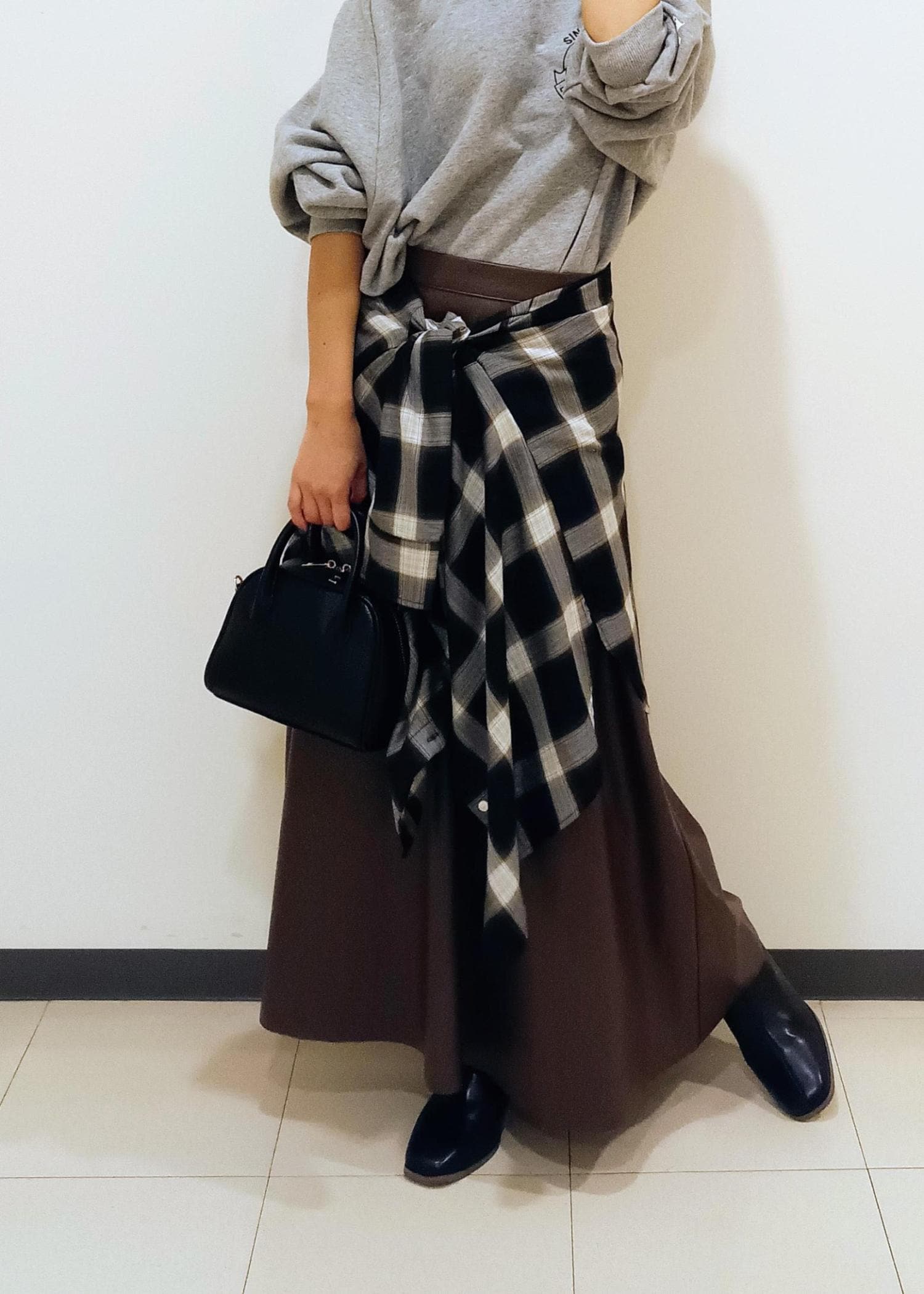 チェック柄のを腰に巻いて今っぽさをプラスしました!
