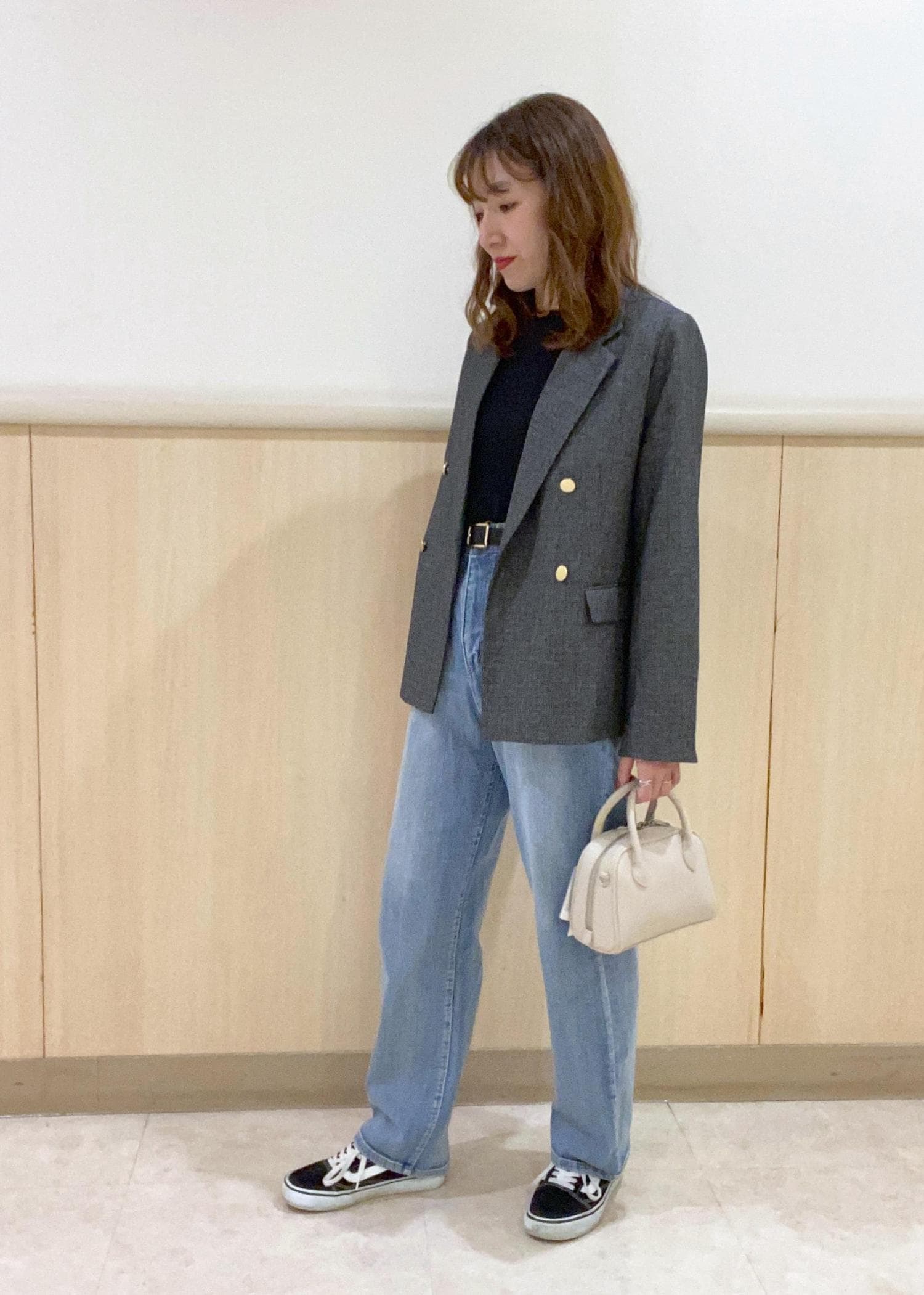 モノトーンでまとめたジャケット×デニムのメンズライクコーデです。