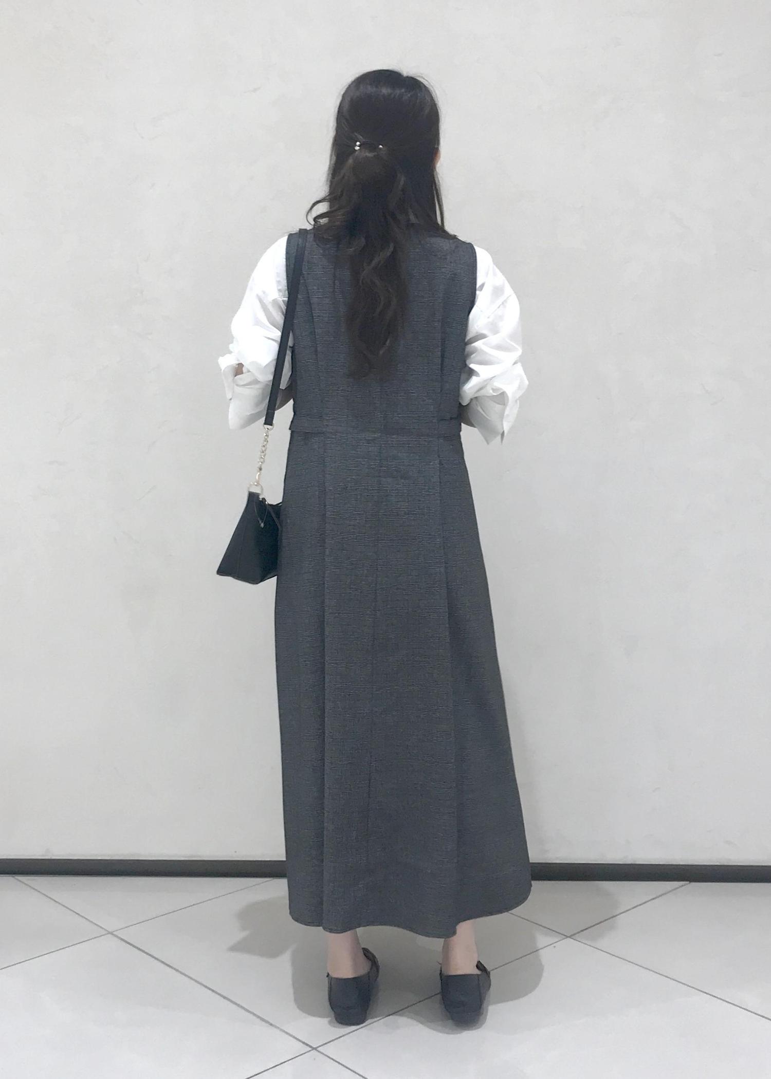 今回はブラウスを合わせた綺麗めなスタイリングですが、ボタンを開けてジレとしても着用可能です!