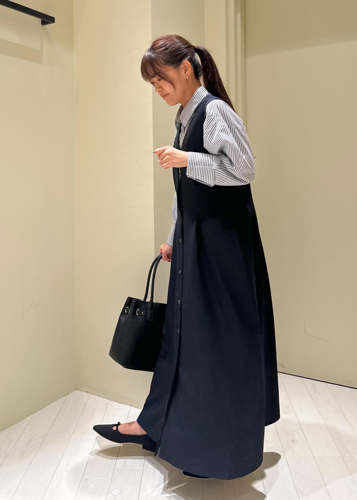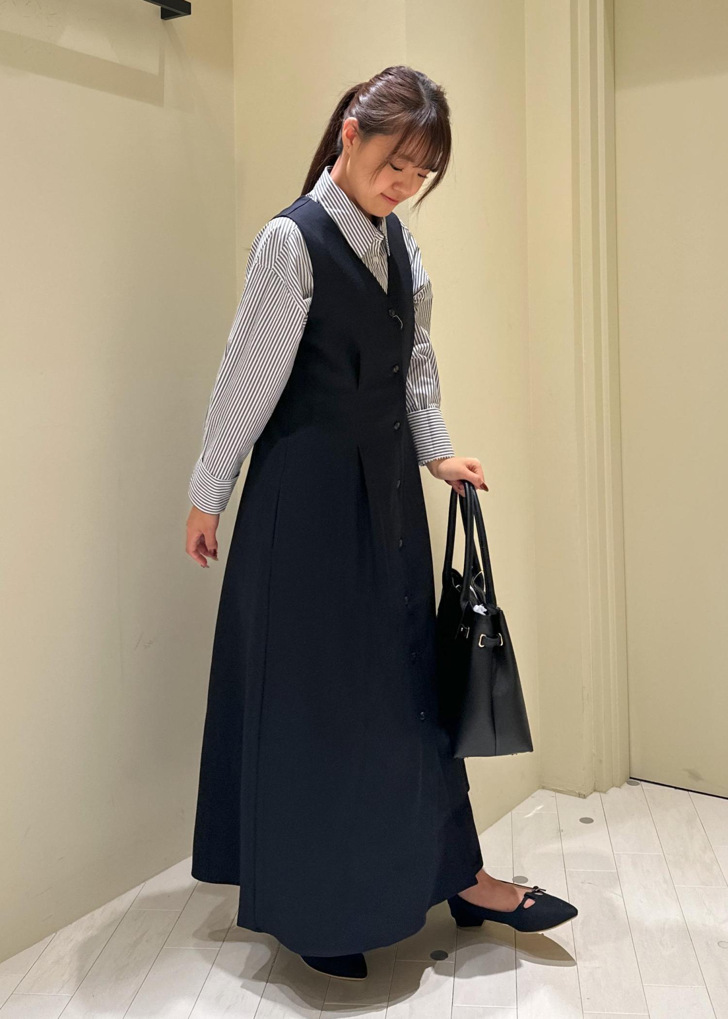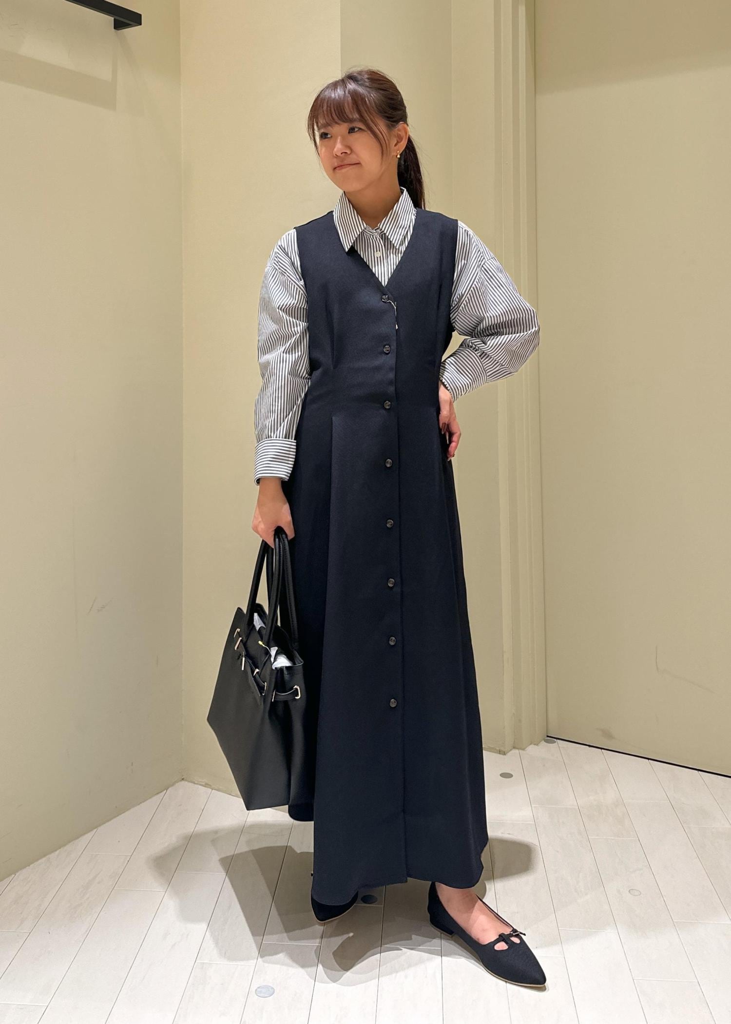 中を柄のシャツにする事で大人っぽく、こなれ感プラスされ着こなせるのでストライプシャツを合わせてみました!