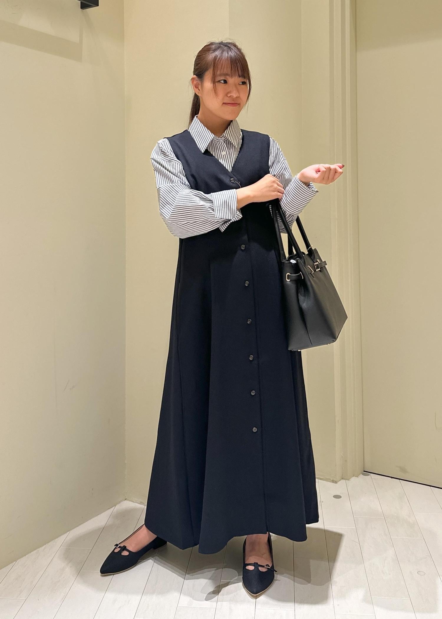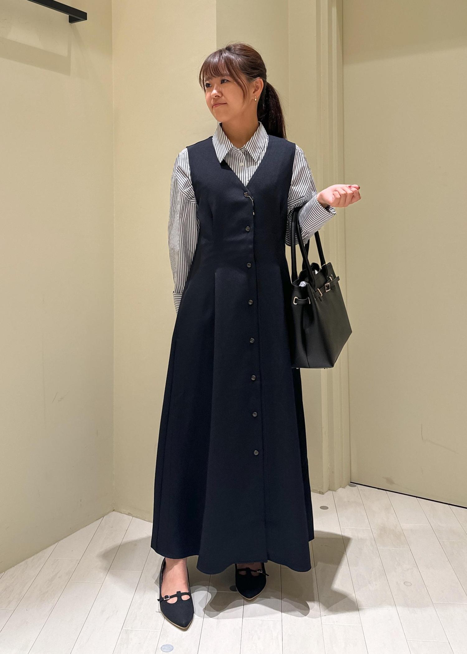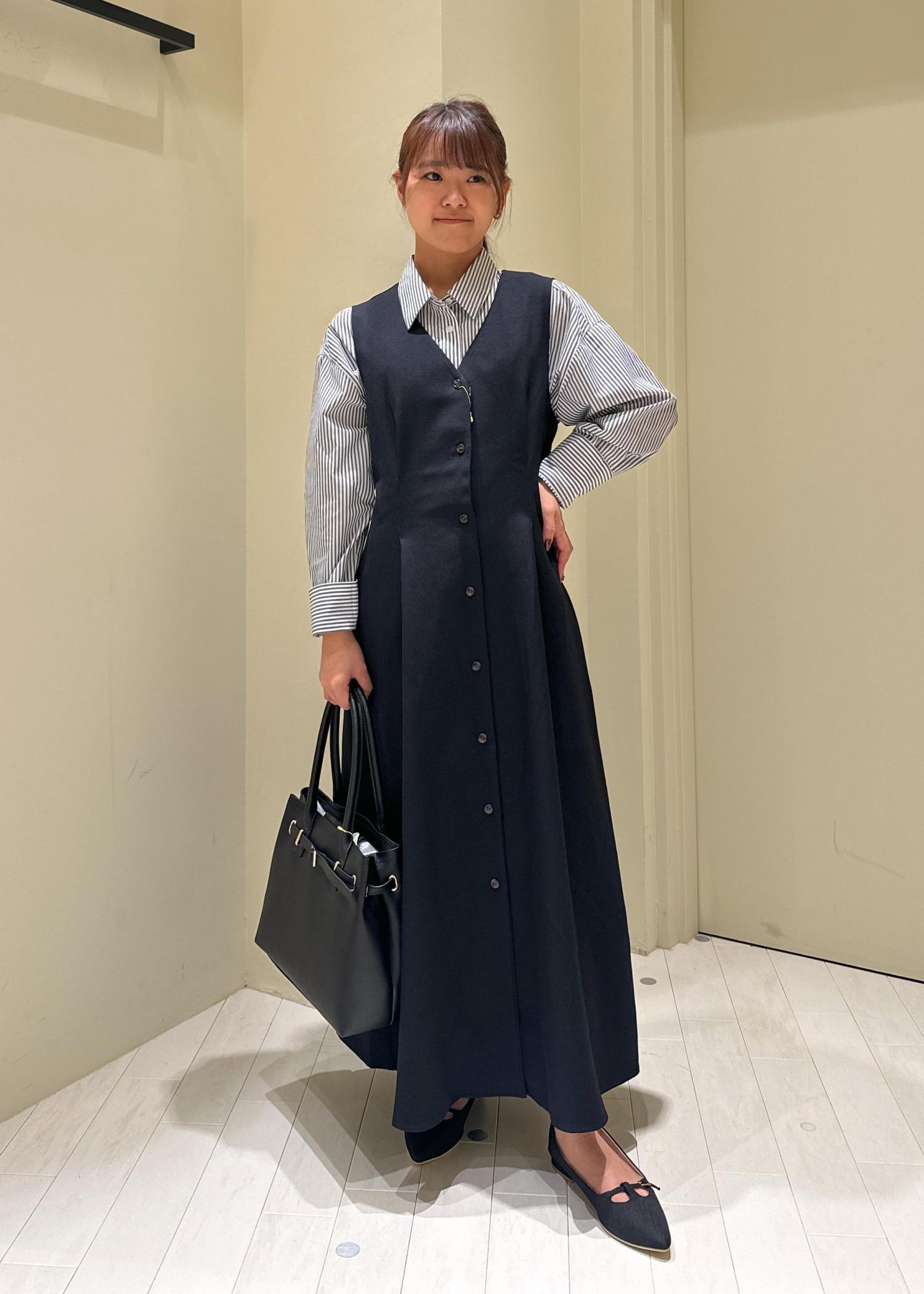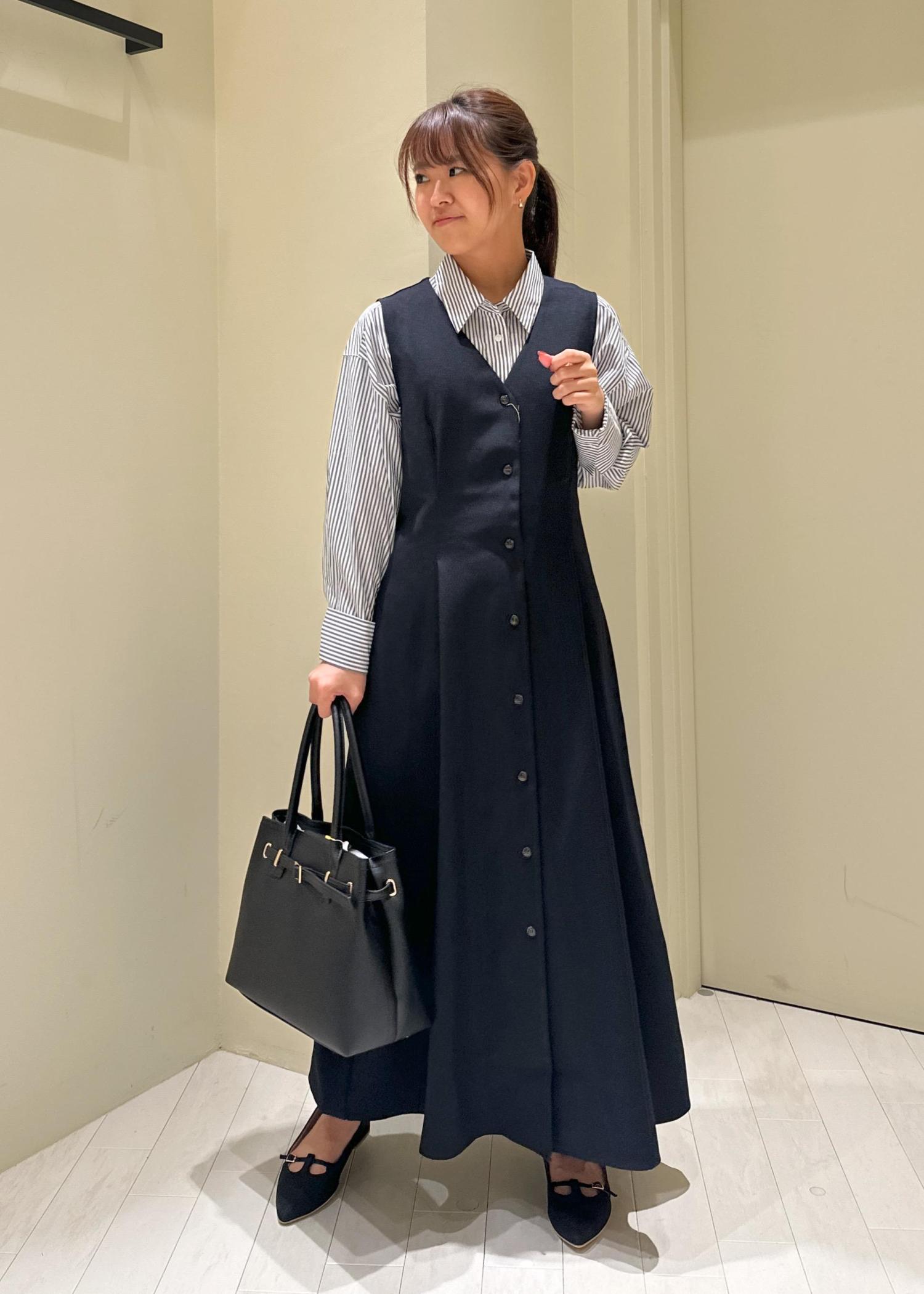 中を柄のシャツにする事で大人っぽく、こなれ感プラスされ着こなせるのでストライプシャツを合わせてみました!