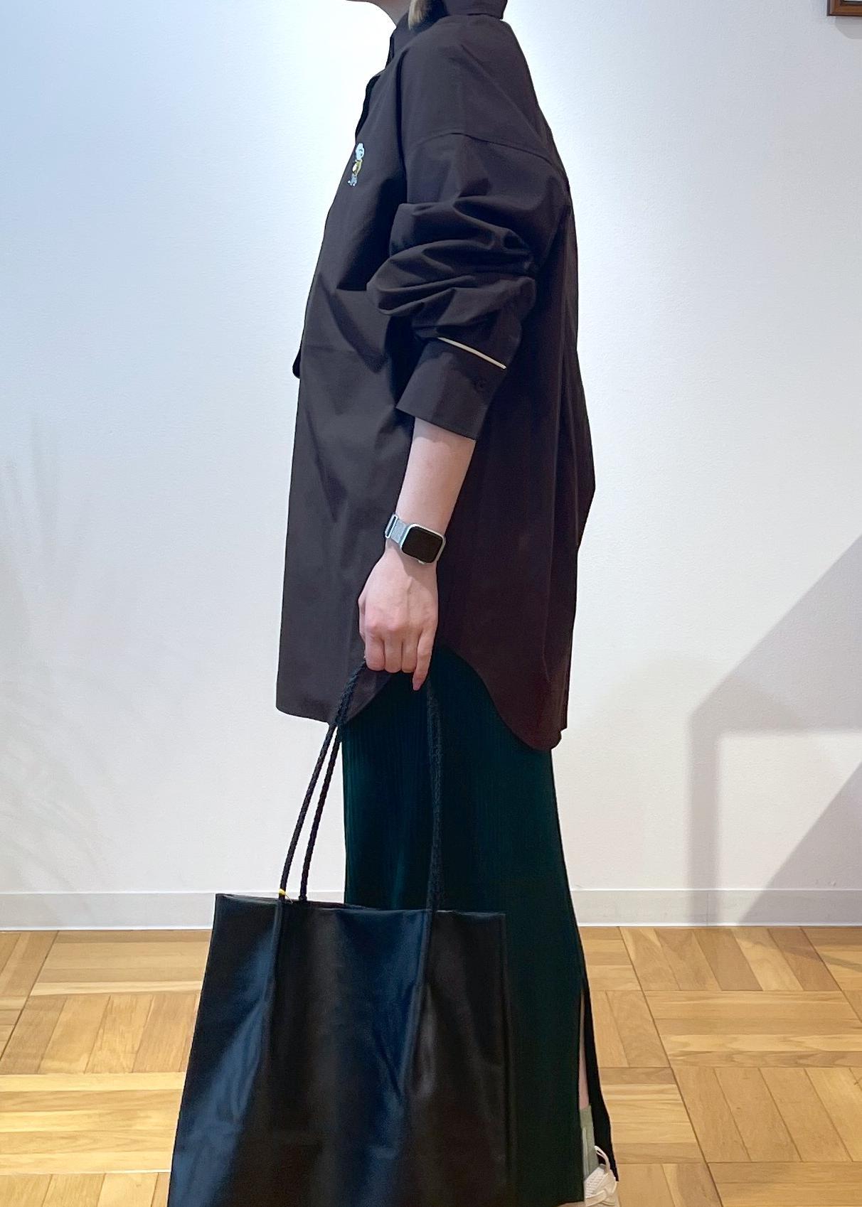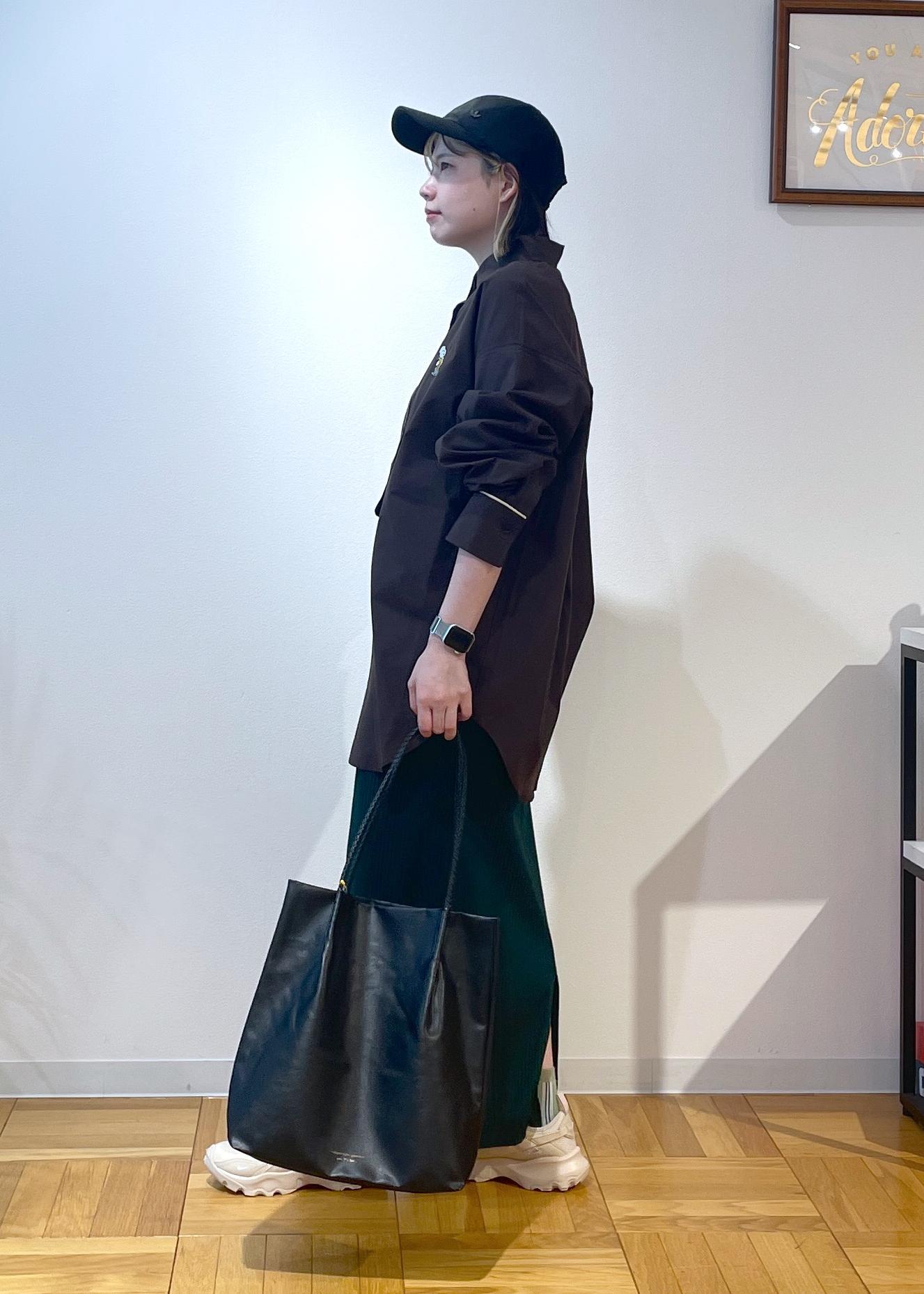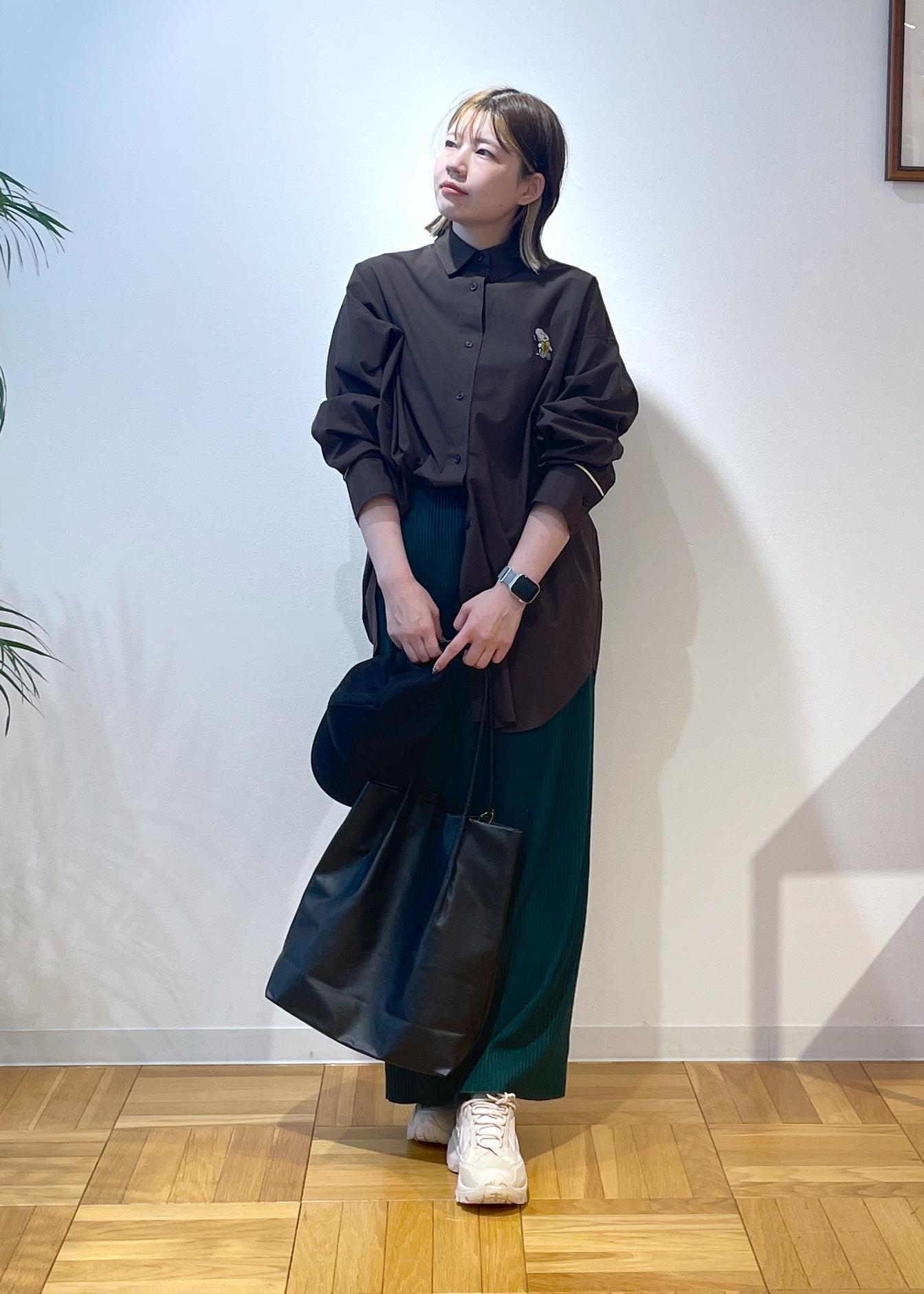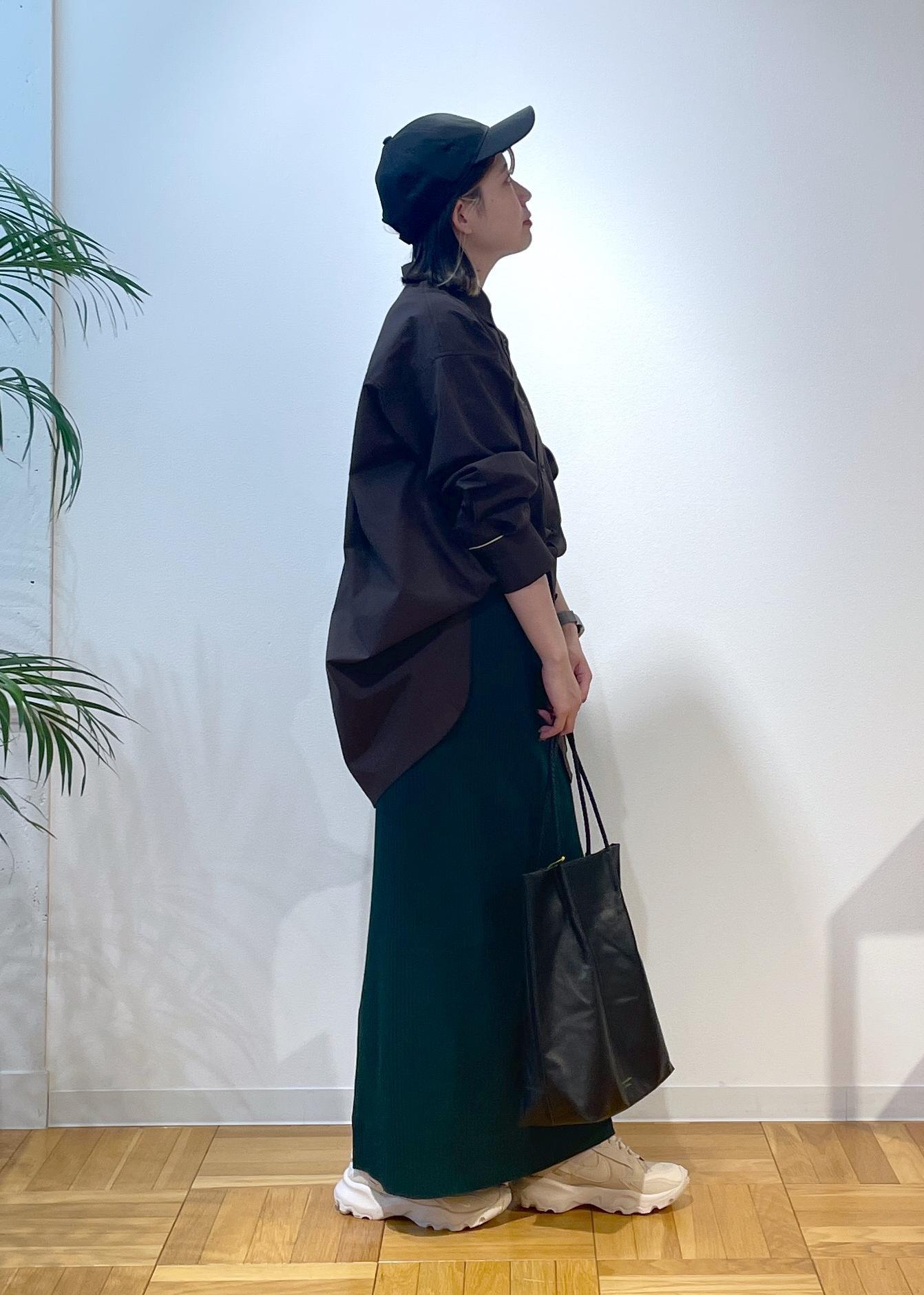 シャツがオーバーサイズなので、タイトスカートと合わせてメリハリ◎!