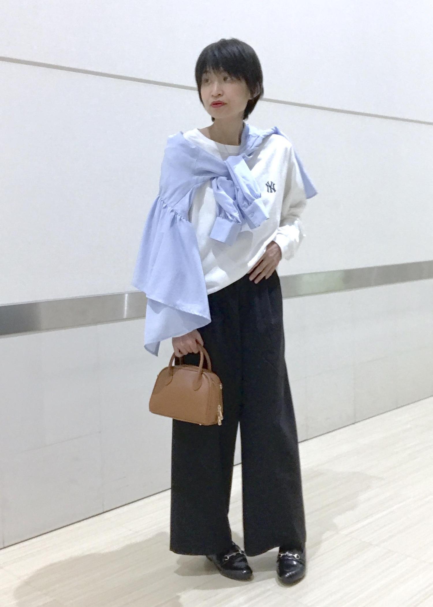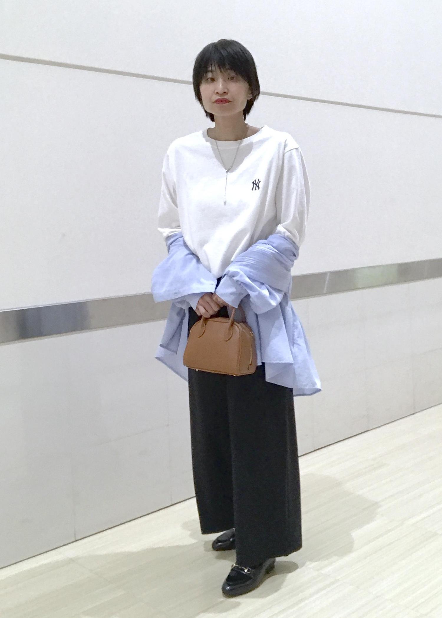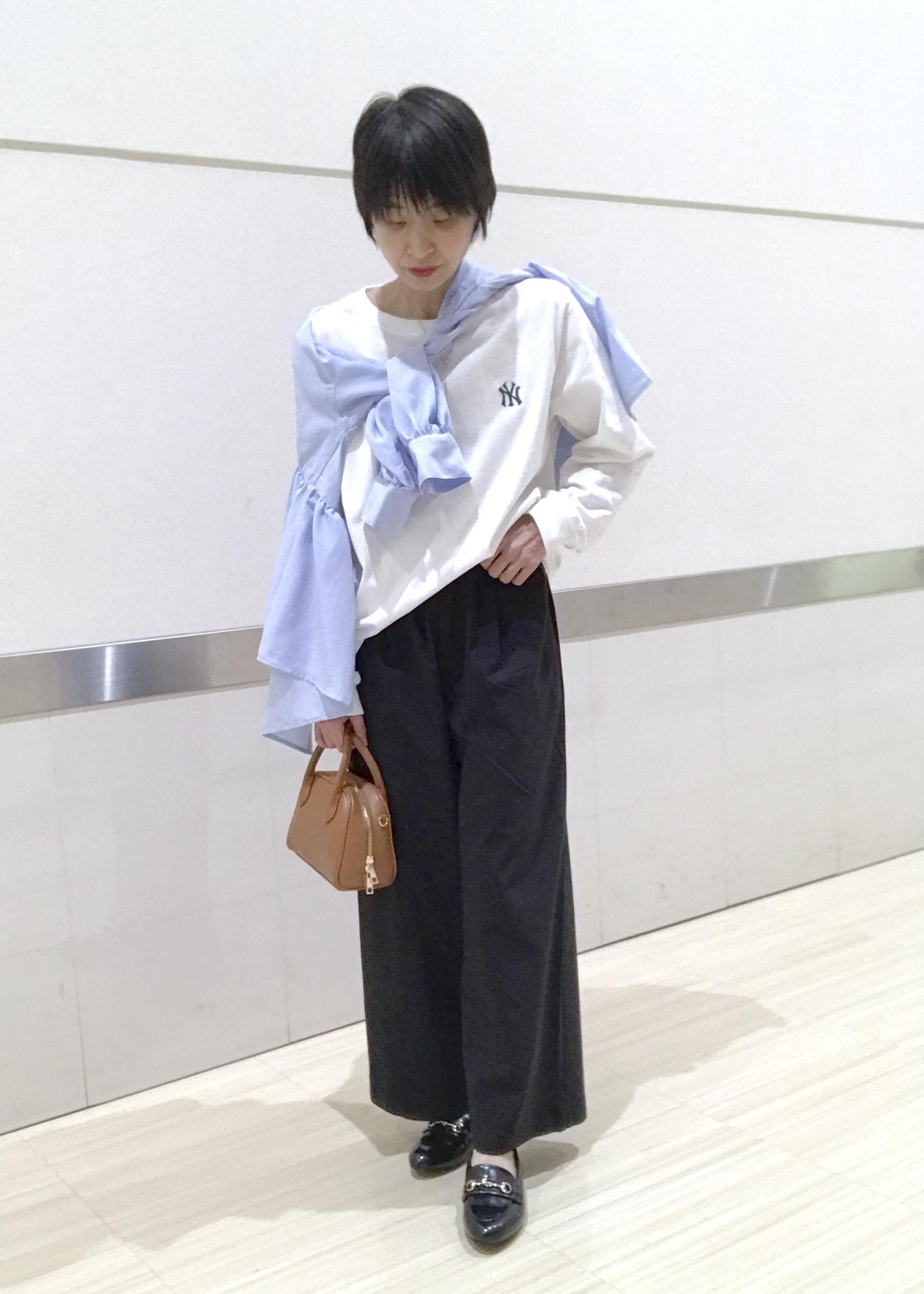 MLB×スヌーピーコラボTシャツに水色のシャツでさわやかさを出しました。