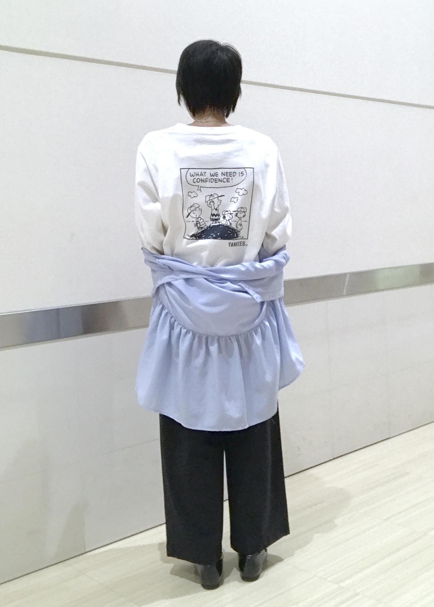 脱ぎ着がしやすいので気温の変化がある時はTシャツ一枚!!スヌーピーの絵が後ろにある為、シンプルになりすぎないのが良いです◎
