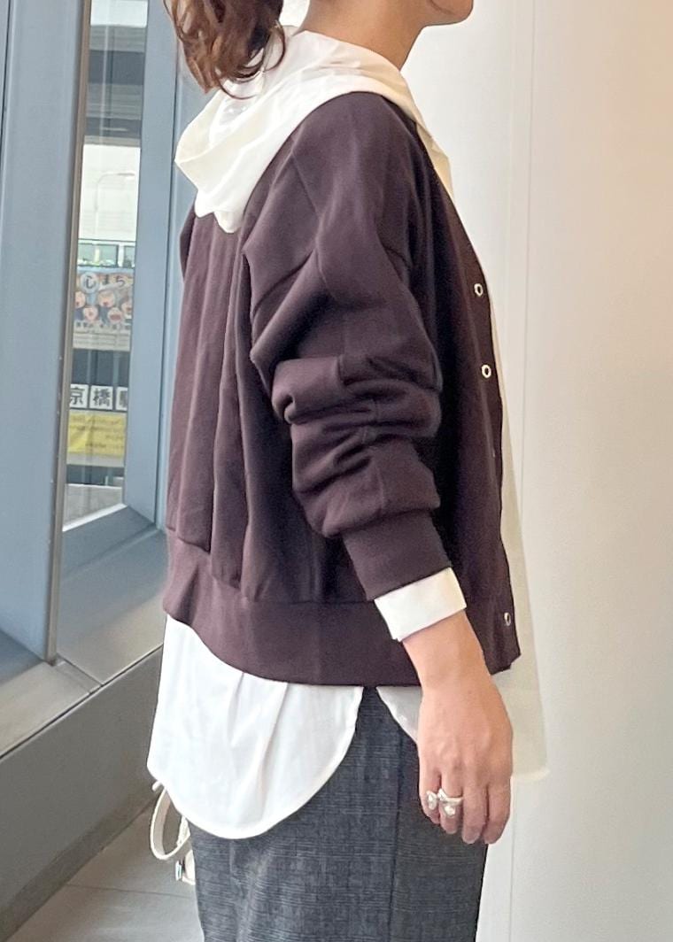 深めのVネックが大人に印象のスウェットカーディガンです。 -
