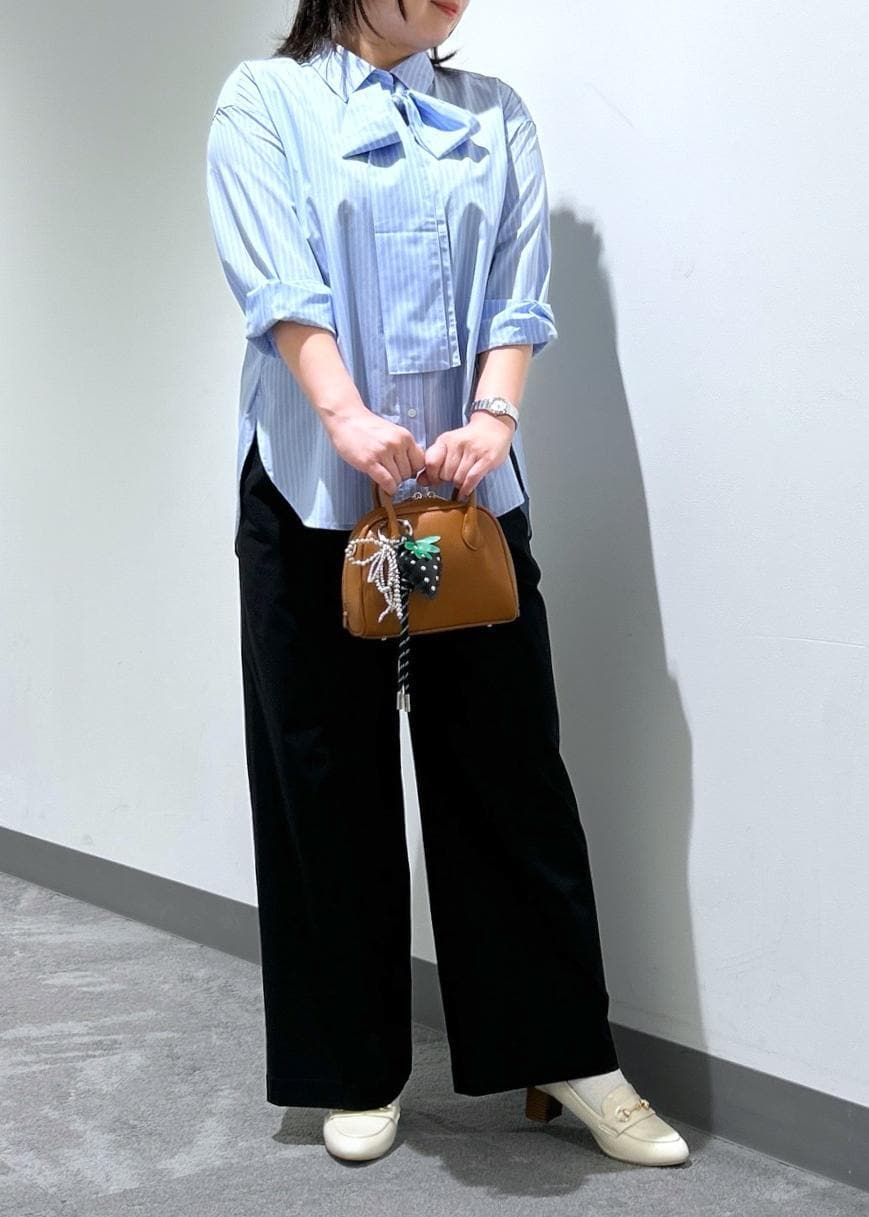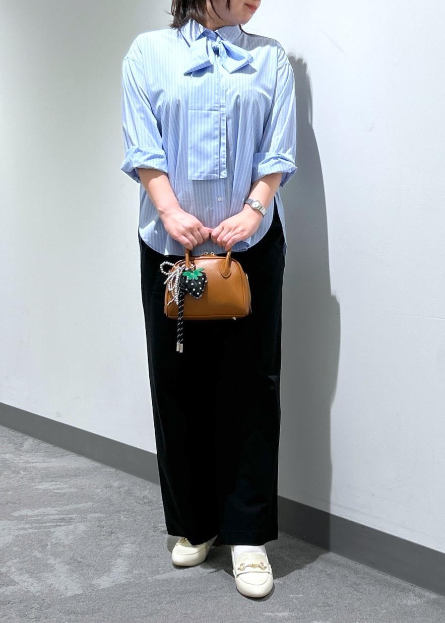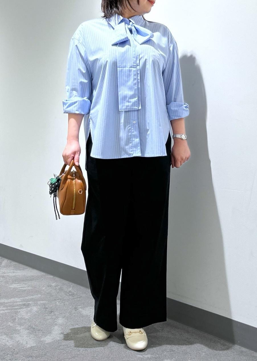 タイ付きレギュラーシャツ× キレイ目イージーワイドパンツ
