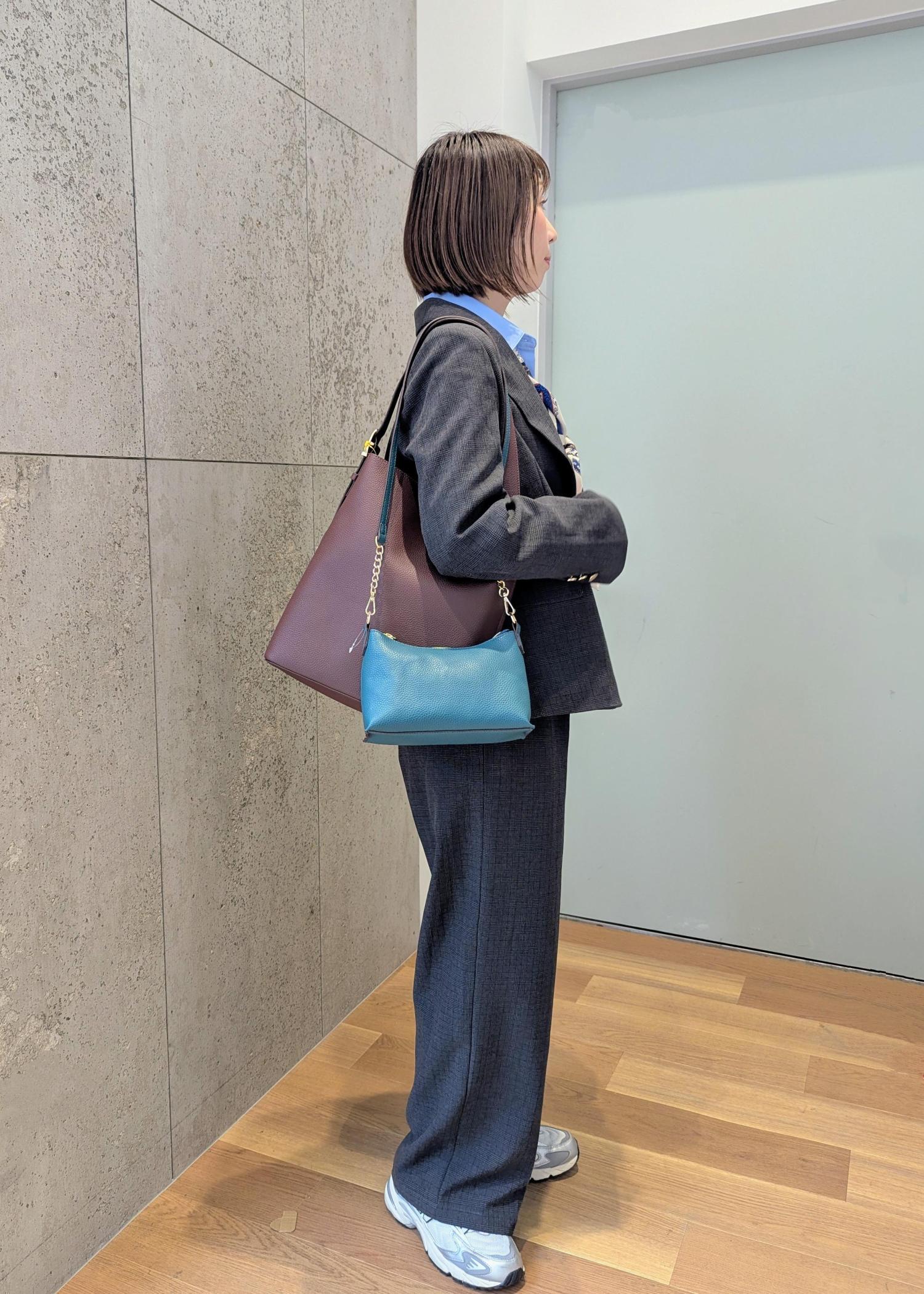 軽くて高見えするバッグなので通勤、通学〜お出かけまで幅広く使えます!2個持ちやミニショルダーのストラップを外してバッグインポーチとしても使えて便利です。