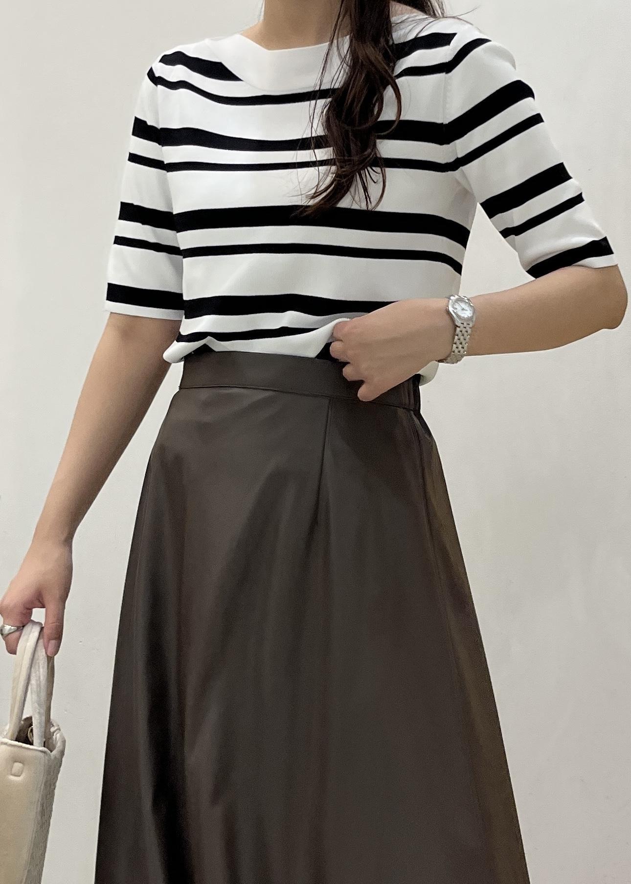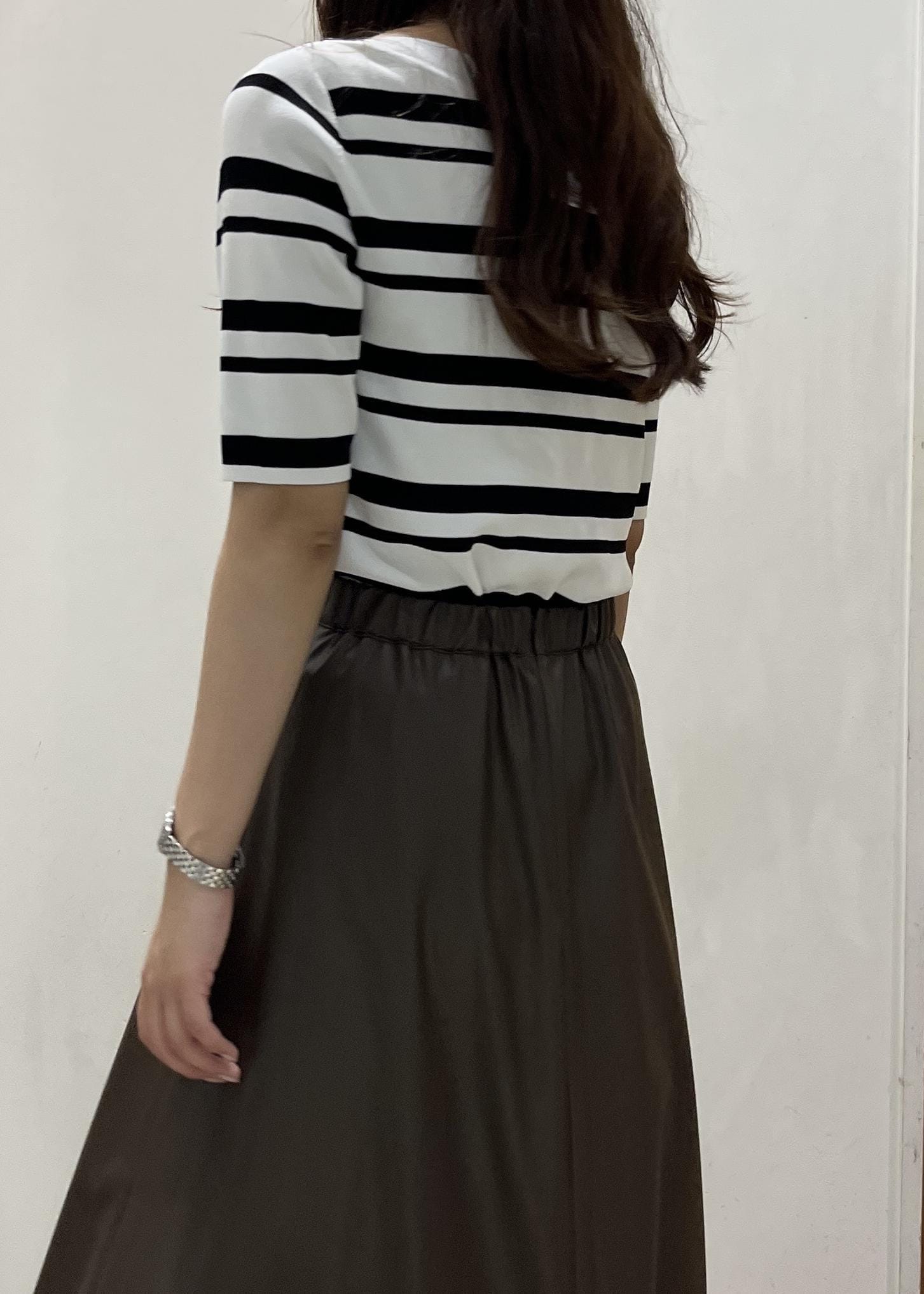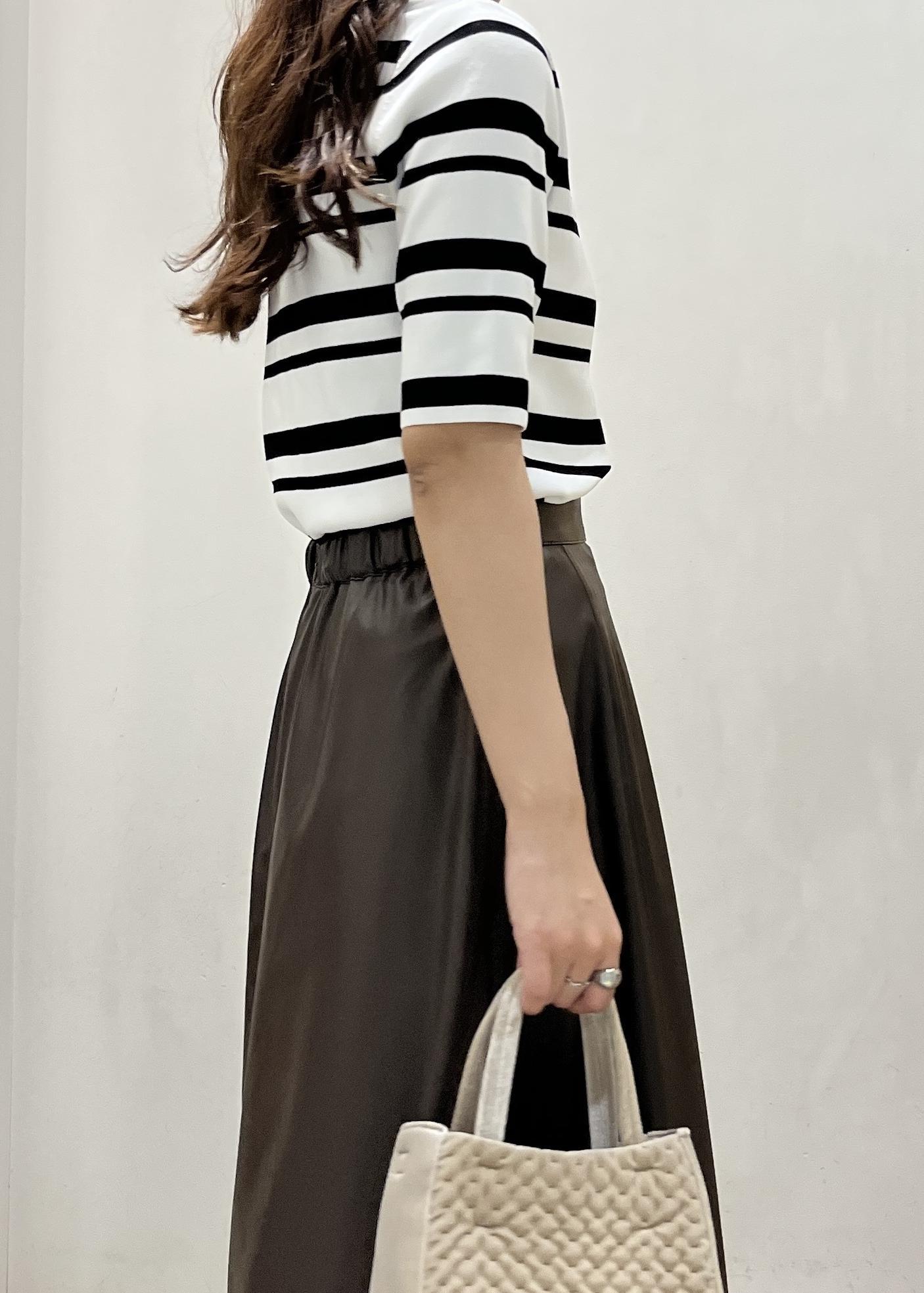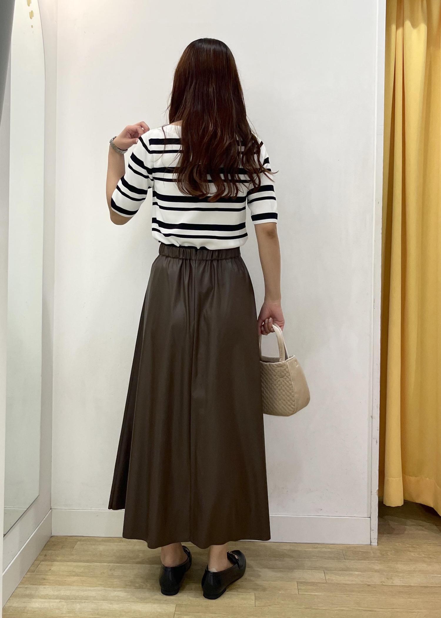 ボーダー×スカートで大人カジュアルコーデ✨足元はローファーを合わせて秋らしい印象に♪
