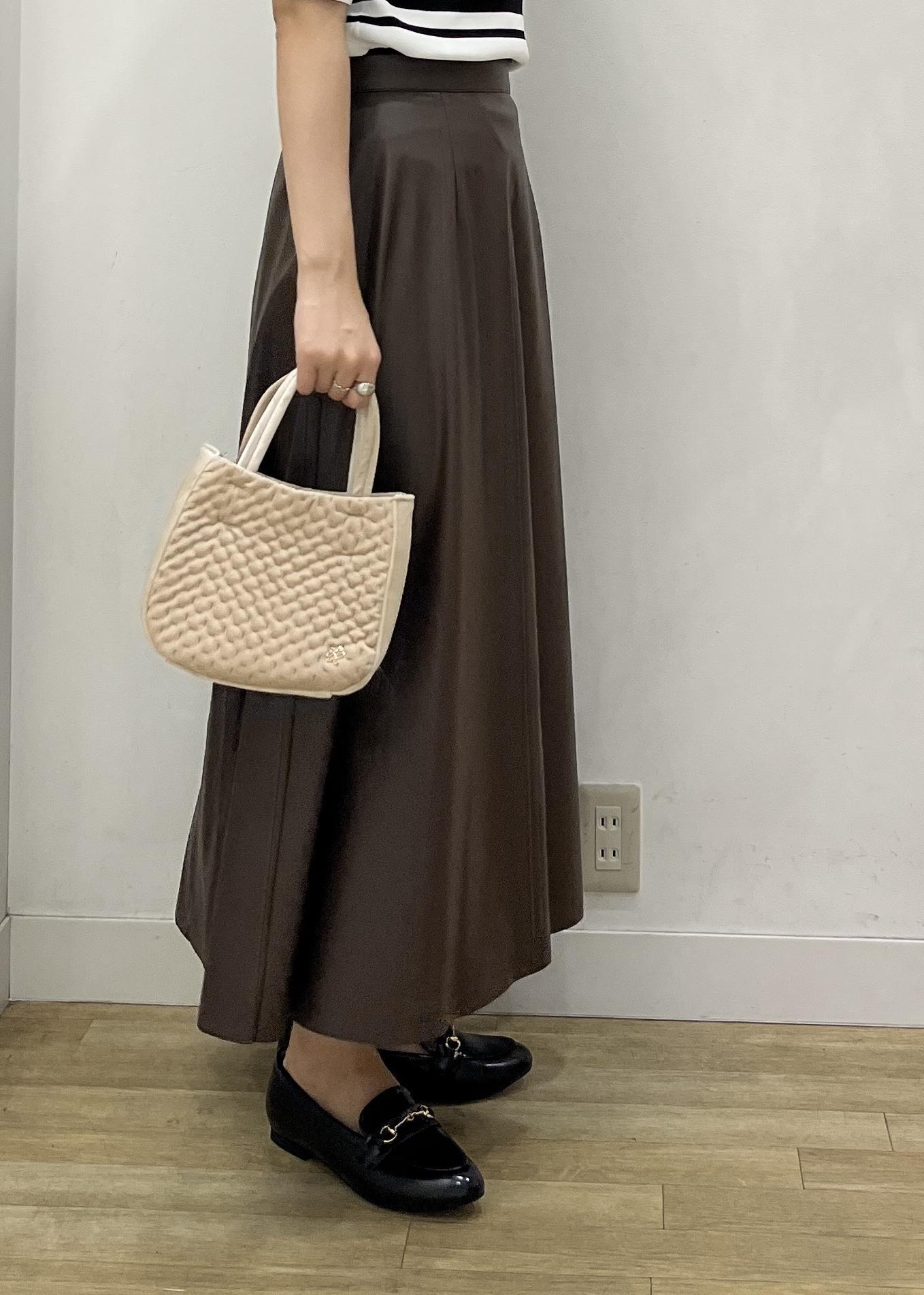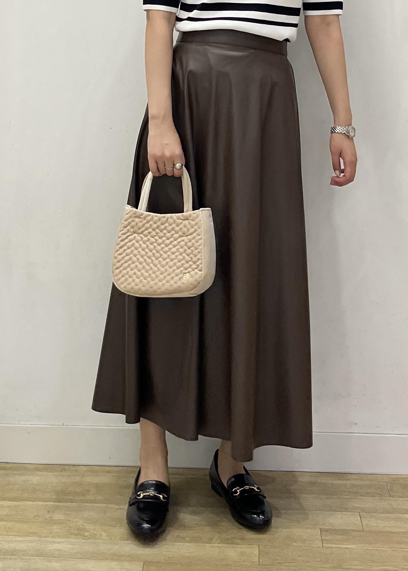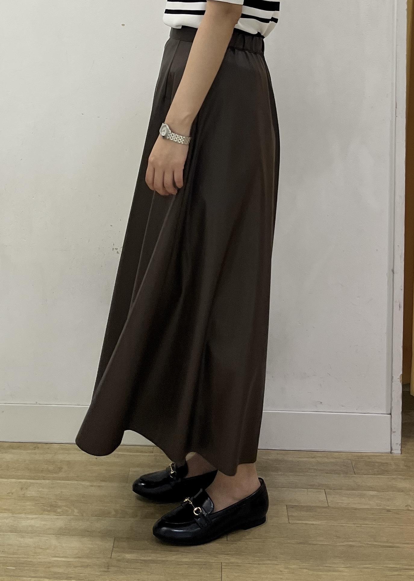 丈感が長めで安心感があり、シンプルなシルエットで合わせやすいデザインになっています。トップスにニットやベストを合わせて着るのもオススメです。
