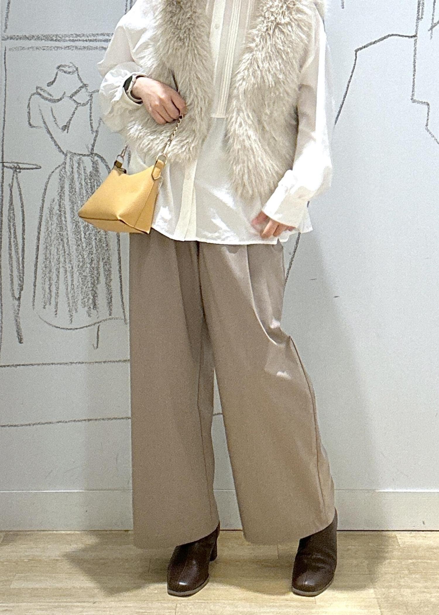 リラックス感のあるワイドパンツですが、ハリとシャリ感できちんと見えもする万能アイテムです! -