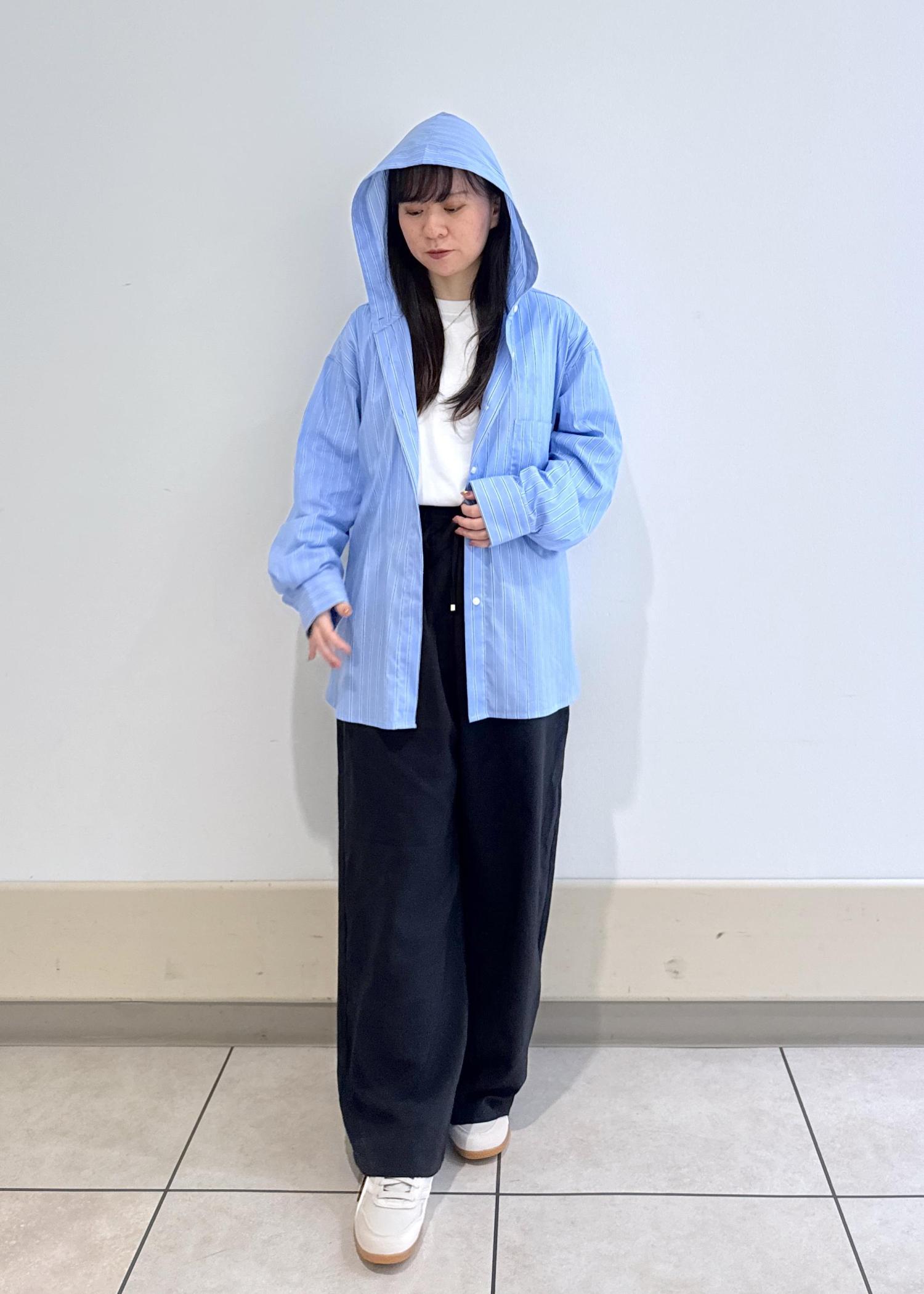 ブルーシャツの爽やかさとフードのカジュアルさがミックスされ、これまでにないシャツです!