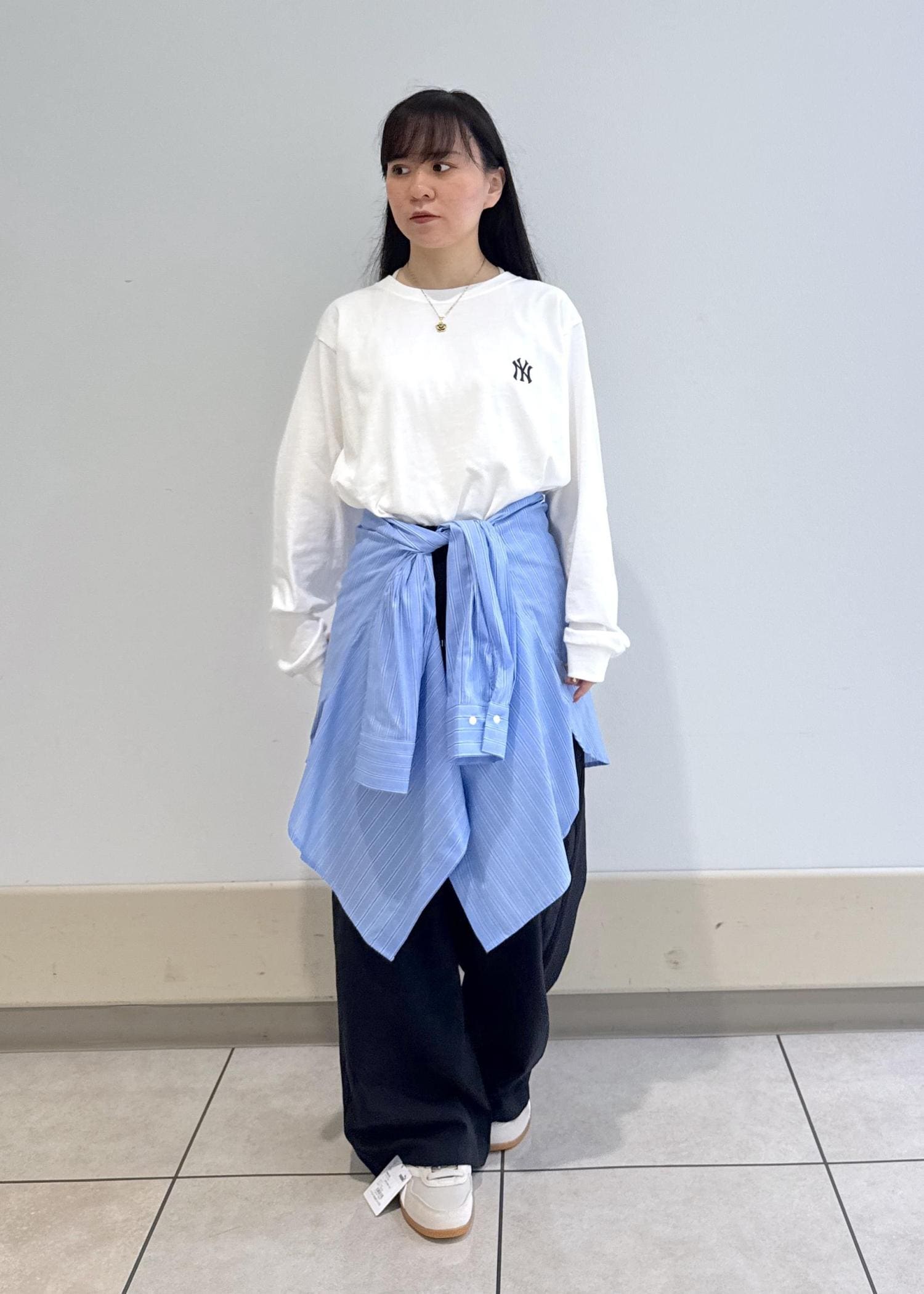 気温の変化によって、シャツを腰に巻くスタイルもいいかもしれません!