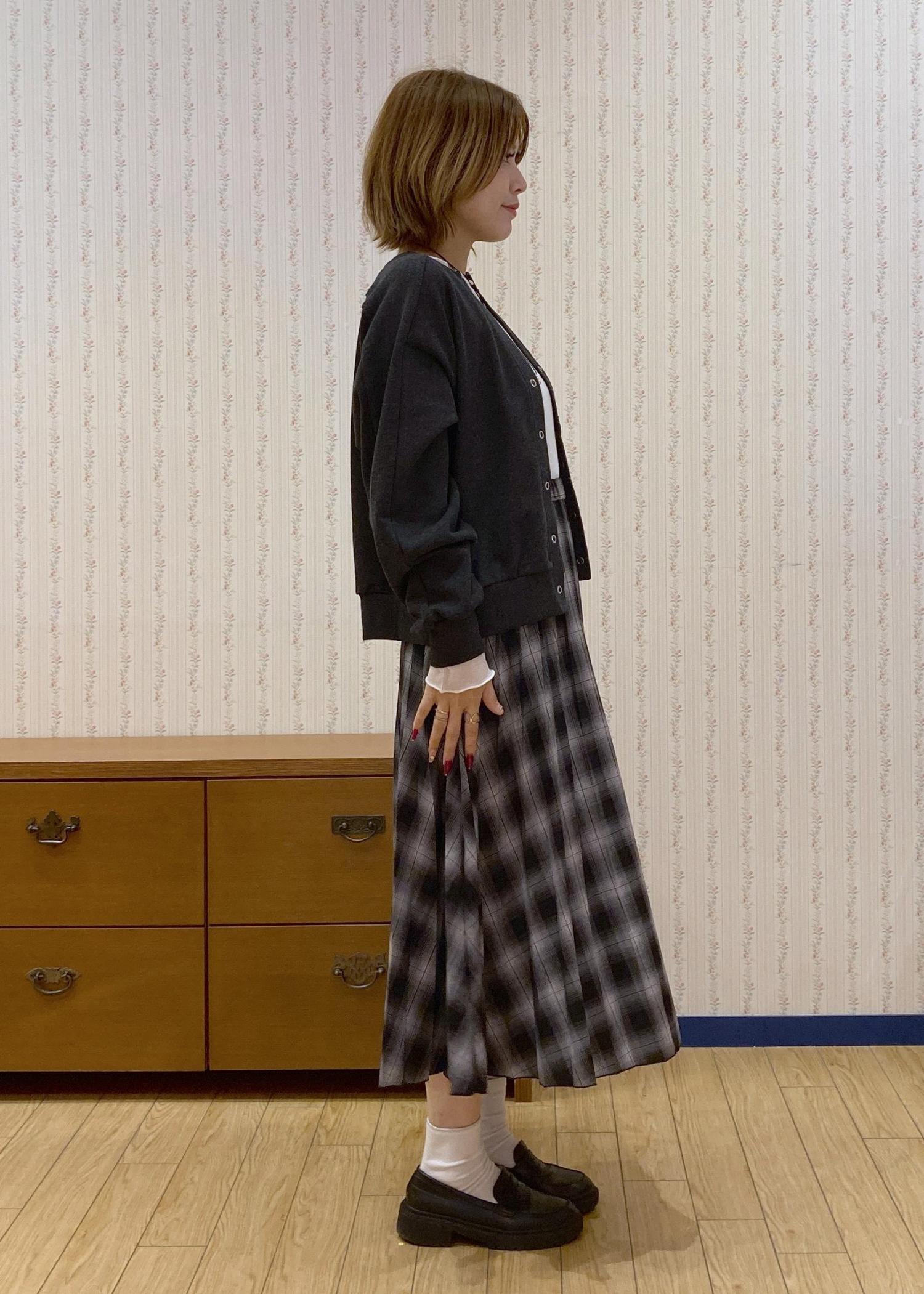 柔らかい素材のプリーツスカートで、ボリュームが出過ぎずスッキリ着れます!