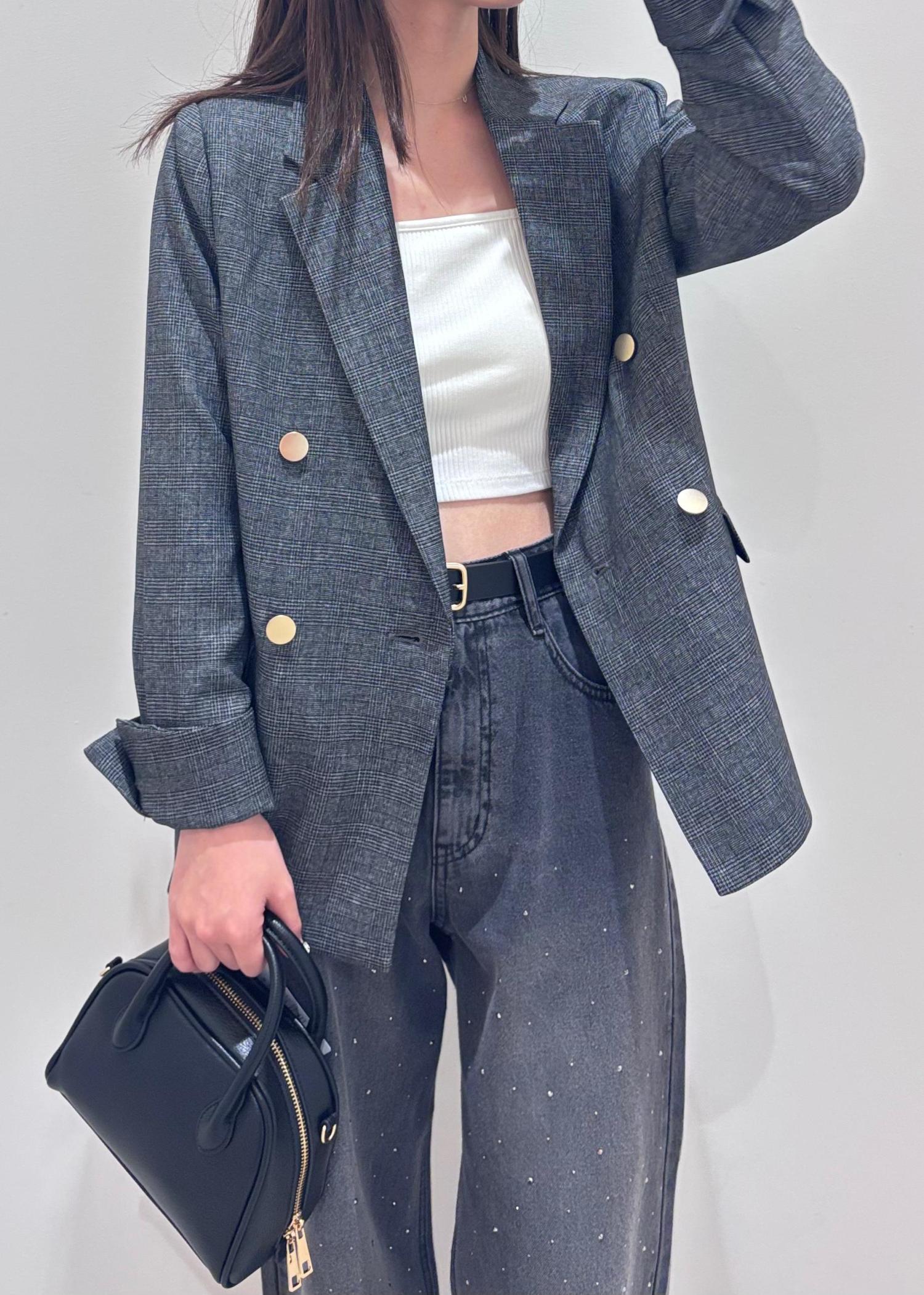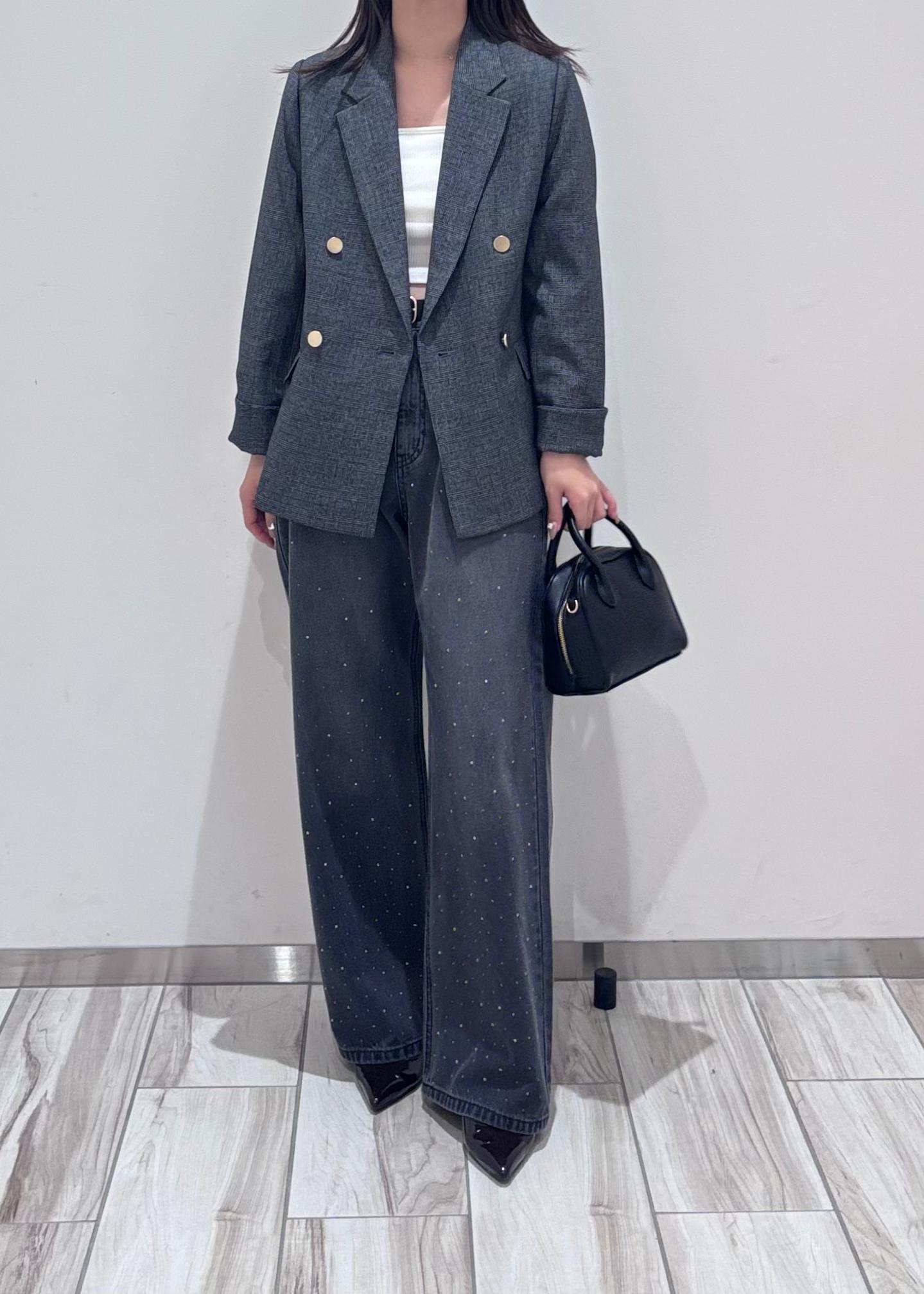 ジャケット×ビジューデニムで綺麗めカジュアル