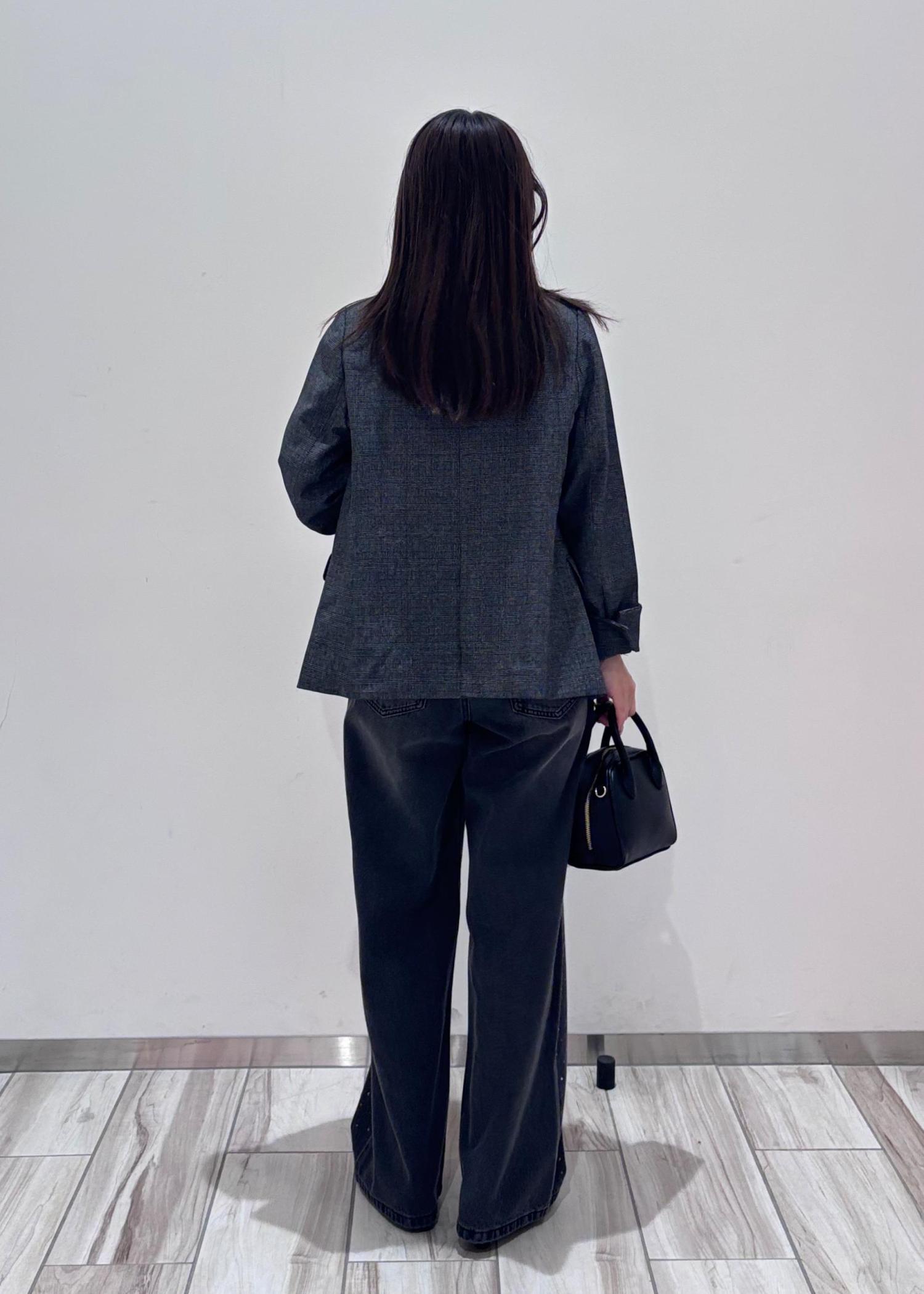 オンオフで使えるジャケットはデニムと合わせる事でカジュアルダウンしてカチッとし過ぎずおしゃれに着ていただけます♪