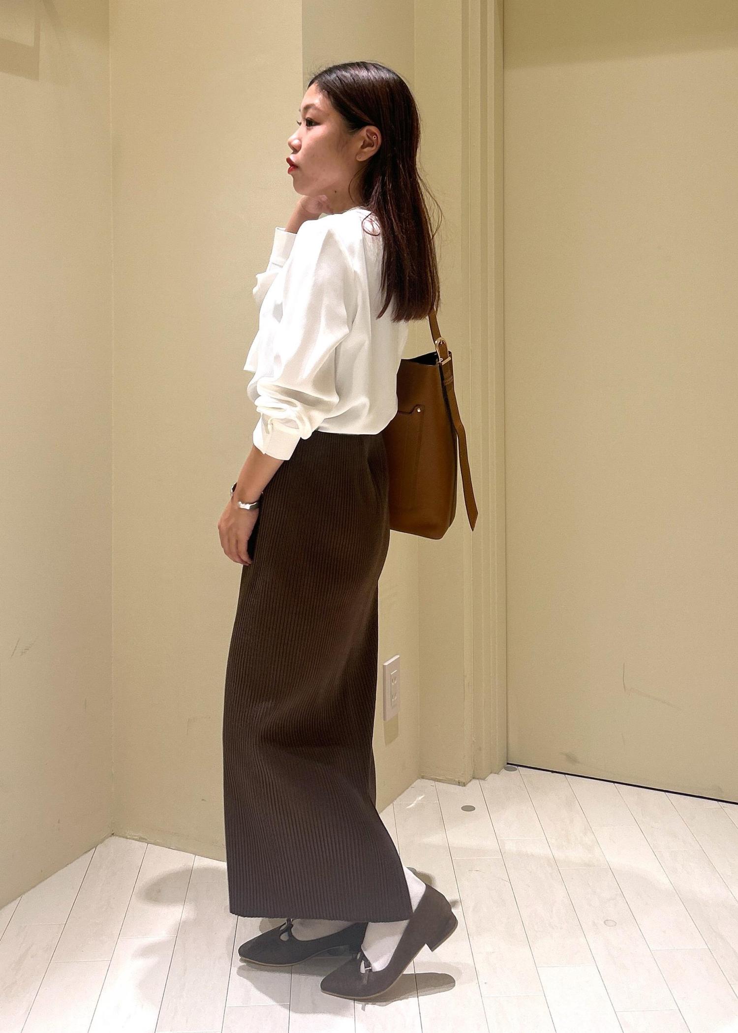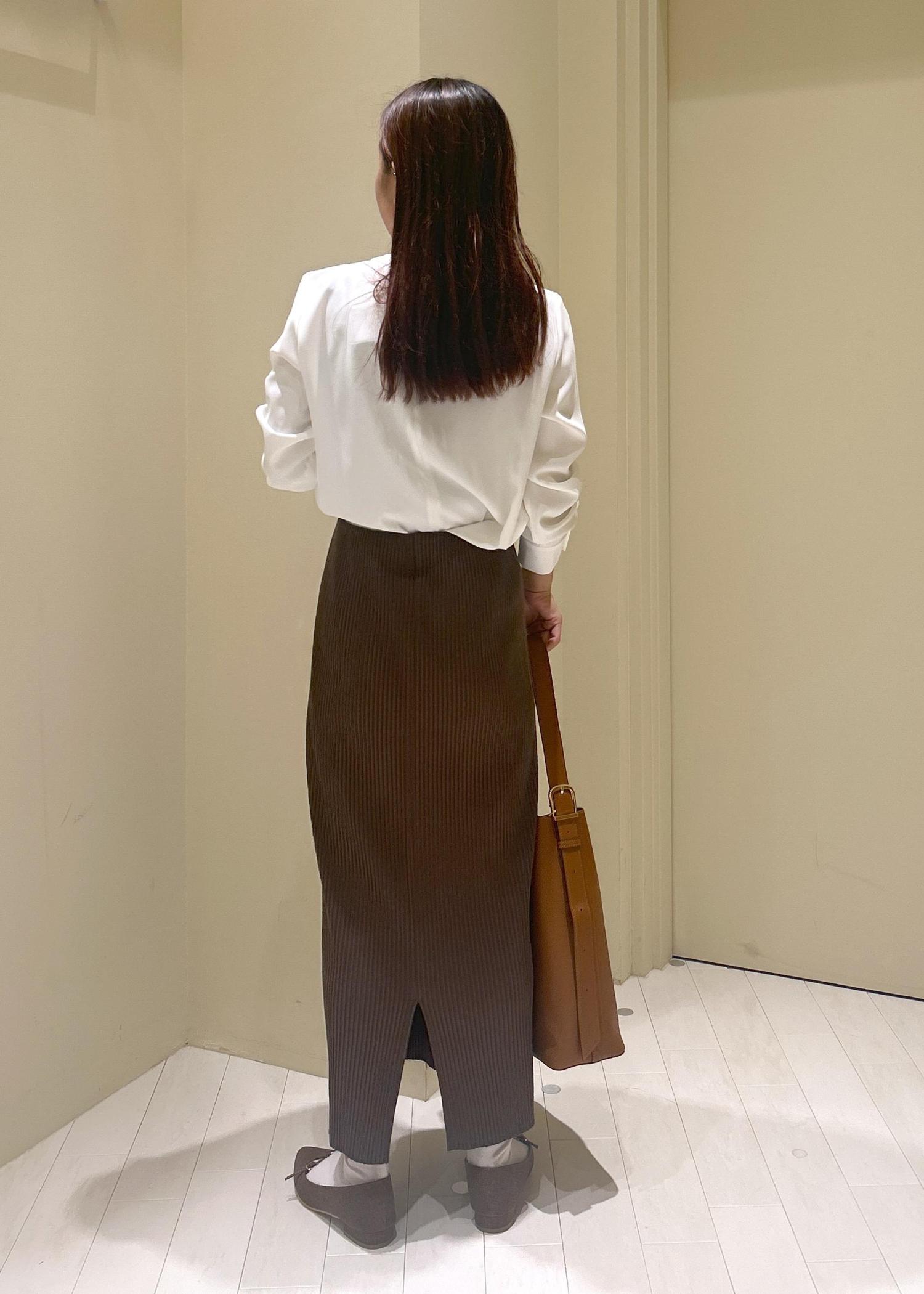 ROPÉ PICNICトタンテレコ Iラインリブニットスカートカーキ系 / 36¥4,499レビュー147cmでもフラットシューズで引きずることなく履けたので、低身長の方にもおすすめです。