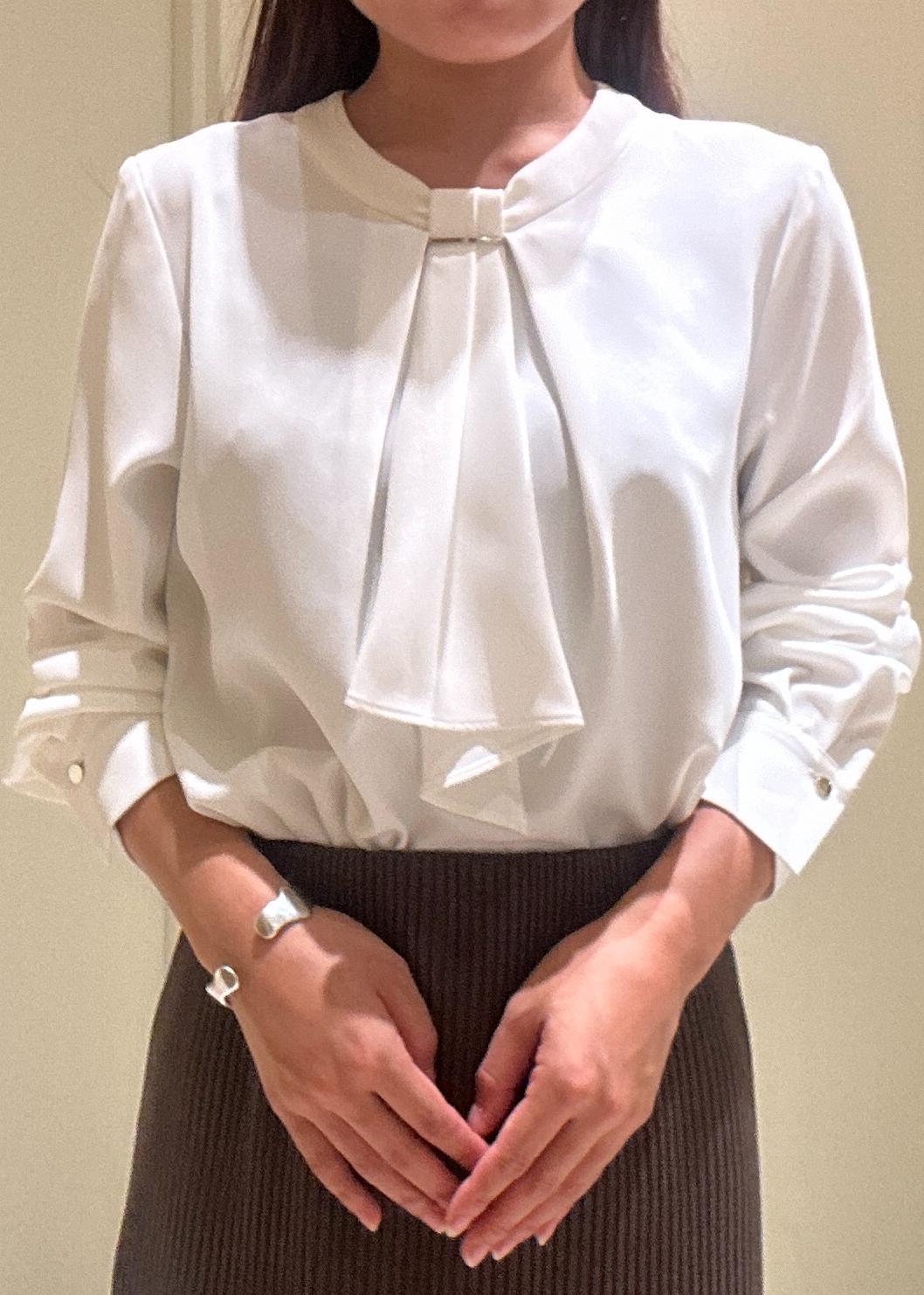 白は多少透け感がありますがとても透ける。という訳では無いので白ブラウスの中では比較的インナーを気にしなくて良いブラウスです。 -