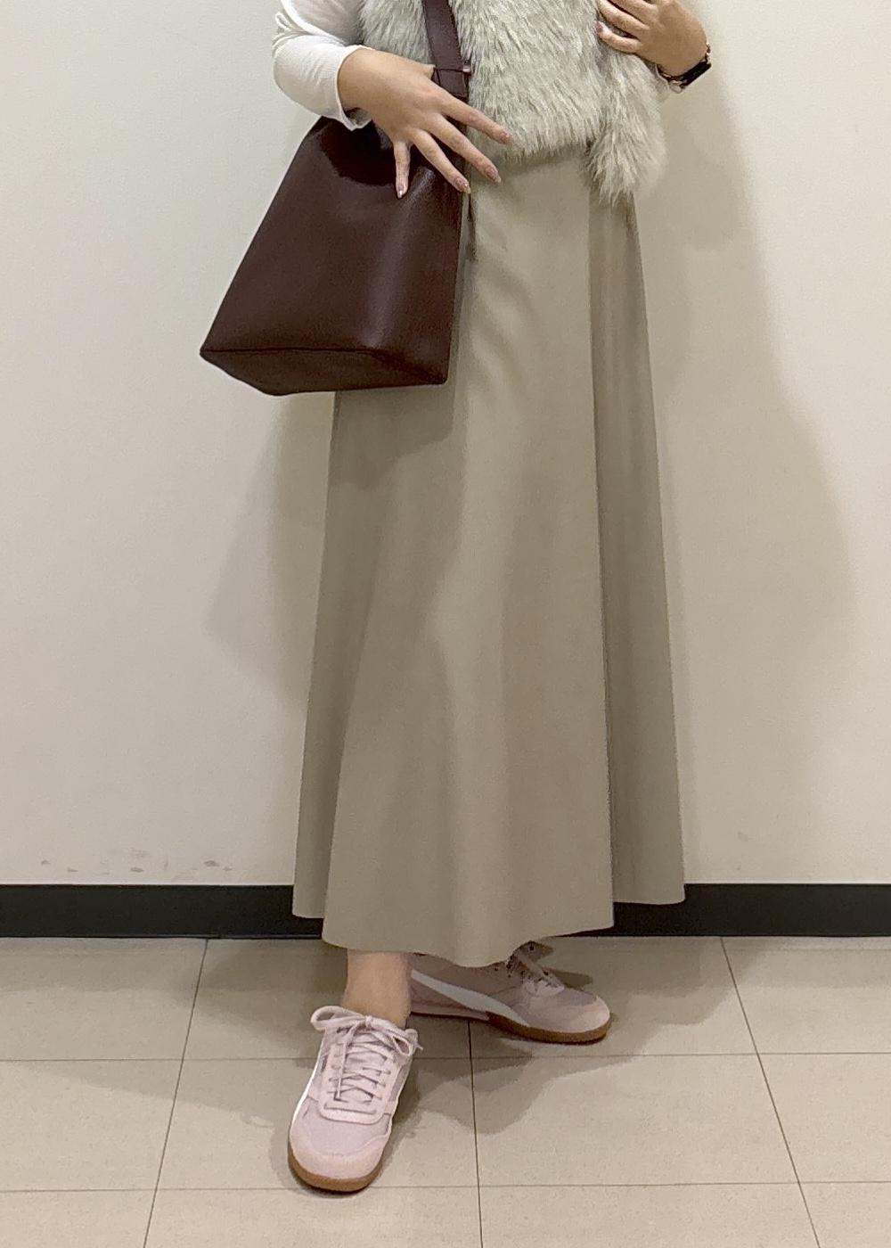 ROPÉ PICNICシンセティックレザーフレアロングスカートベージュ / M¥4,994レビュー軽やかで柔らかな素材。広がりすぎず大人っぽく着こなせます。