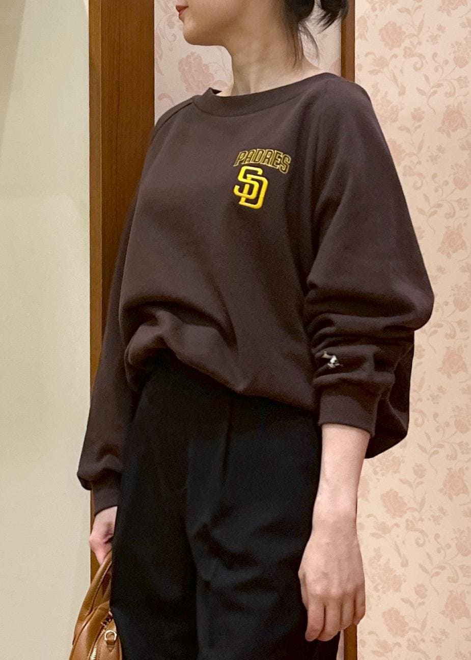 ROPÉ PICNIC【PEANUTS×MLB COLLECTION by ROPE' PICNIC】オフショルスウェットブラウン / F¥5,489レビュー首元はもう少し開くかなと思いましたが、肩のインナーも見えずに着れました。ゆったりしてますが着太りしません◎