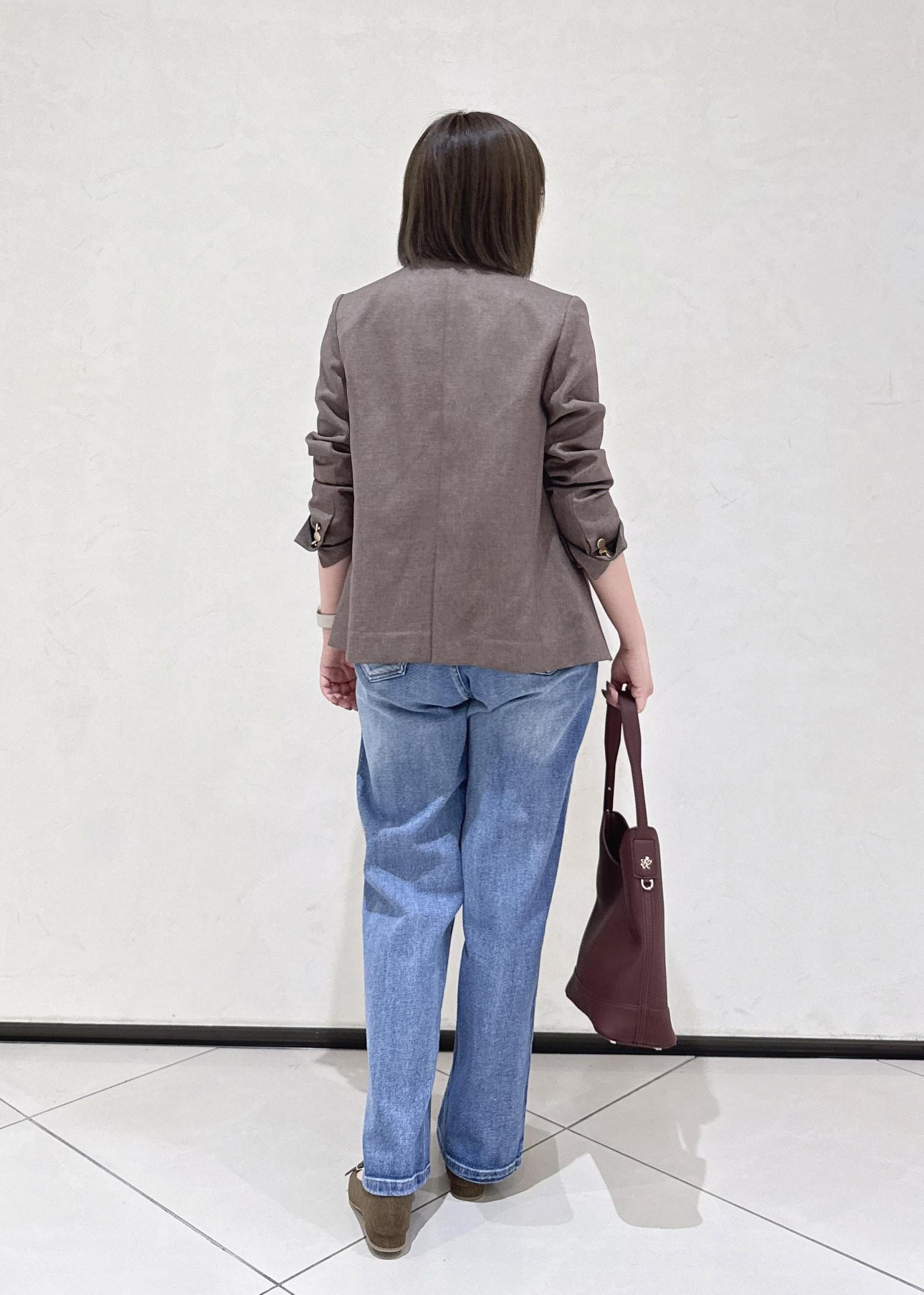 裏地も半分になっていて秋口からしっかりと着用できます。 -
