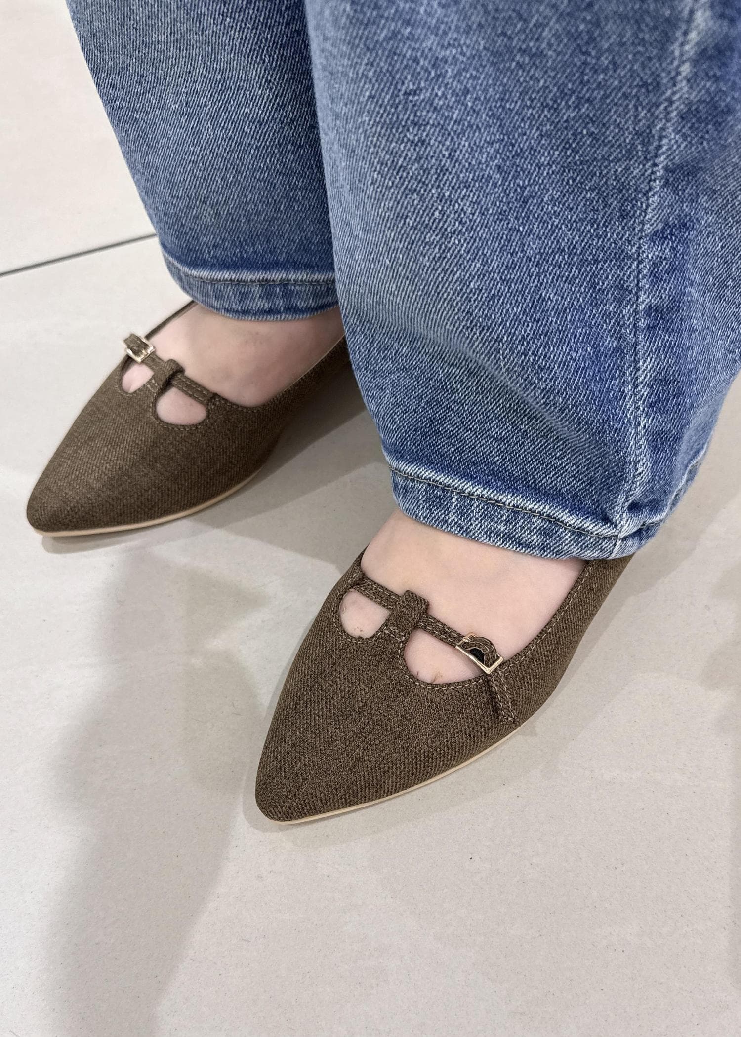 ROPÉ PICNIC PASSAGETストラップフラットパンプスダークブラウン / S¥5,995レビュー表はスウェード調の素材で柔らかくとても履きやすいです。