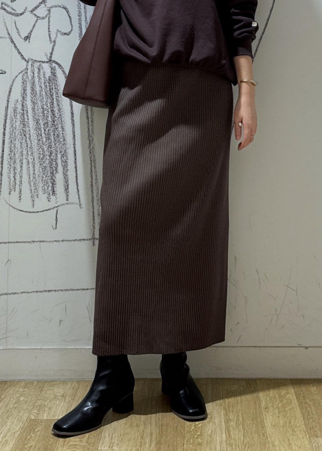 トタンテレコ Iラインリブニットスカート