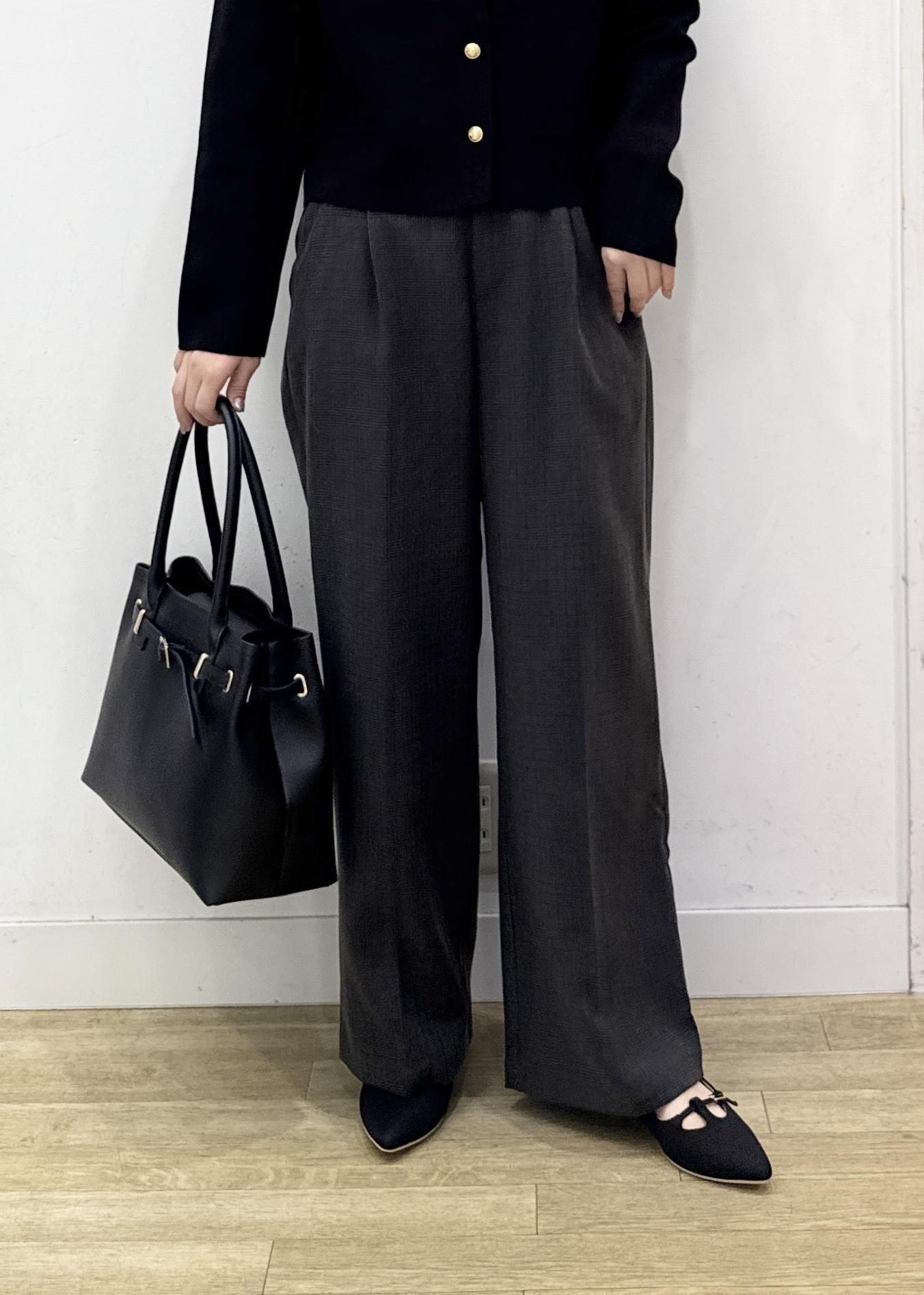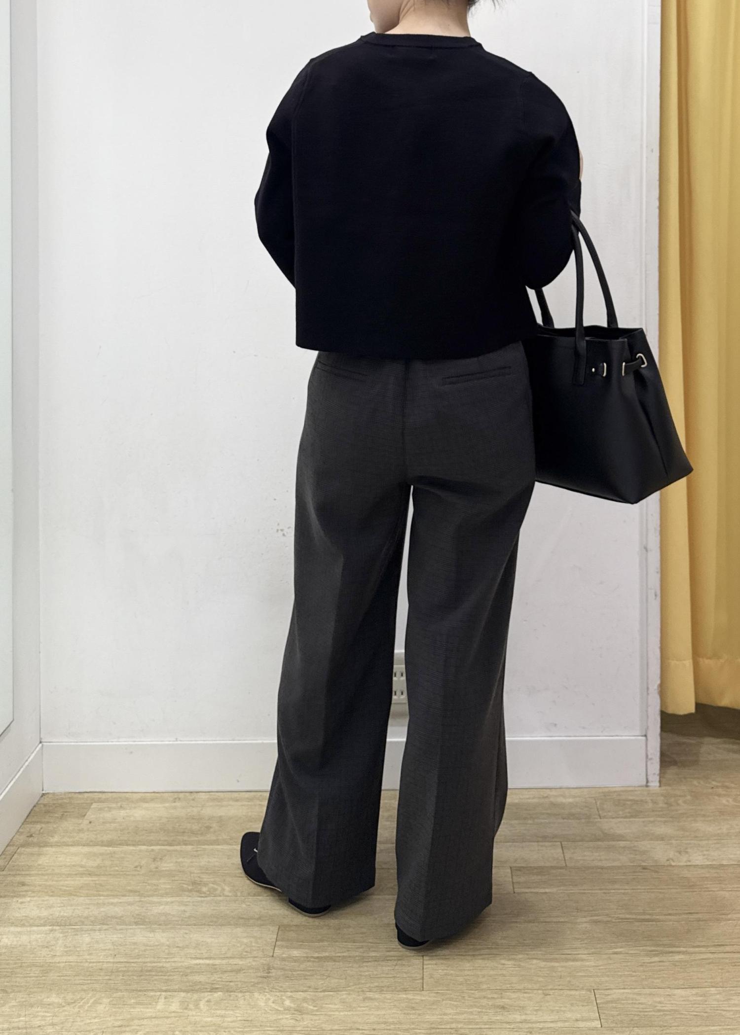 素材感は程よく厚みもあり、脚のラインを気にせずに穿けるゆったりシルエットです。 -