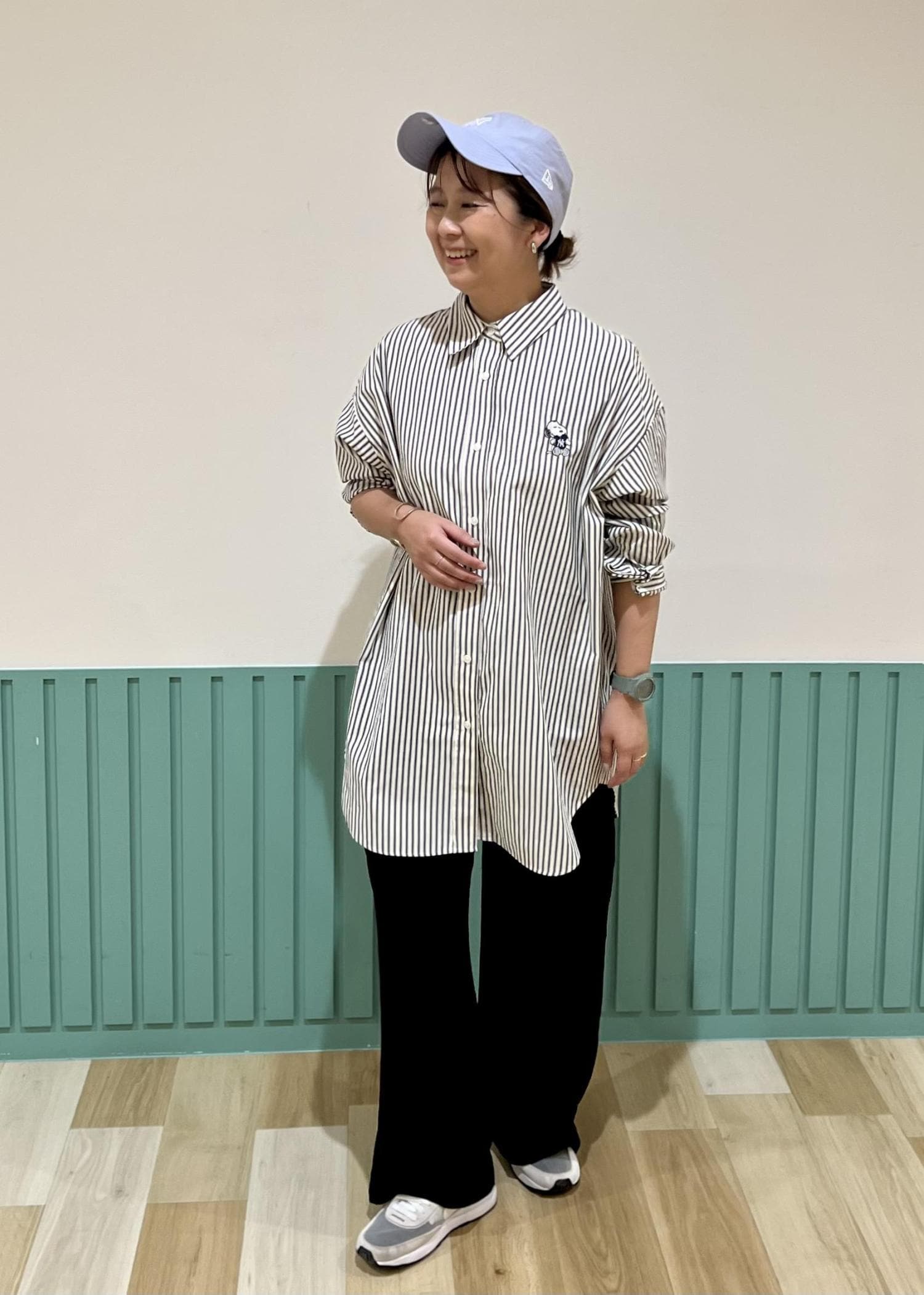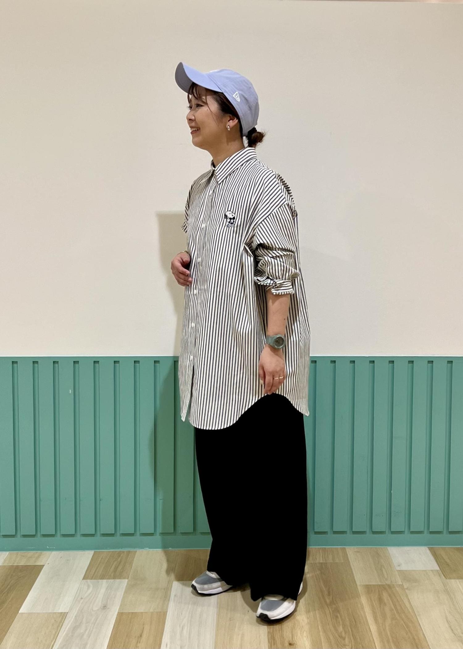 ゆるっとしたパンツを合わせリラクシーな雰囲気に仕上げました。