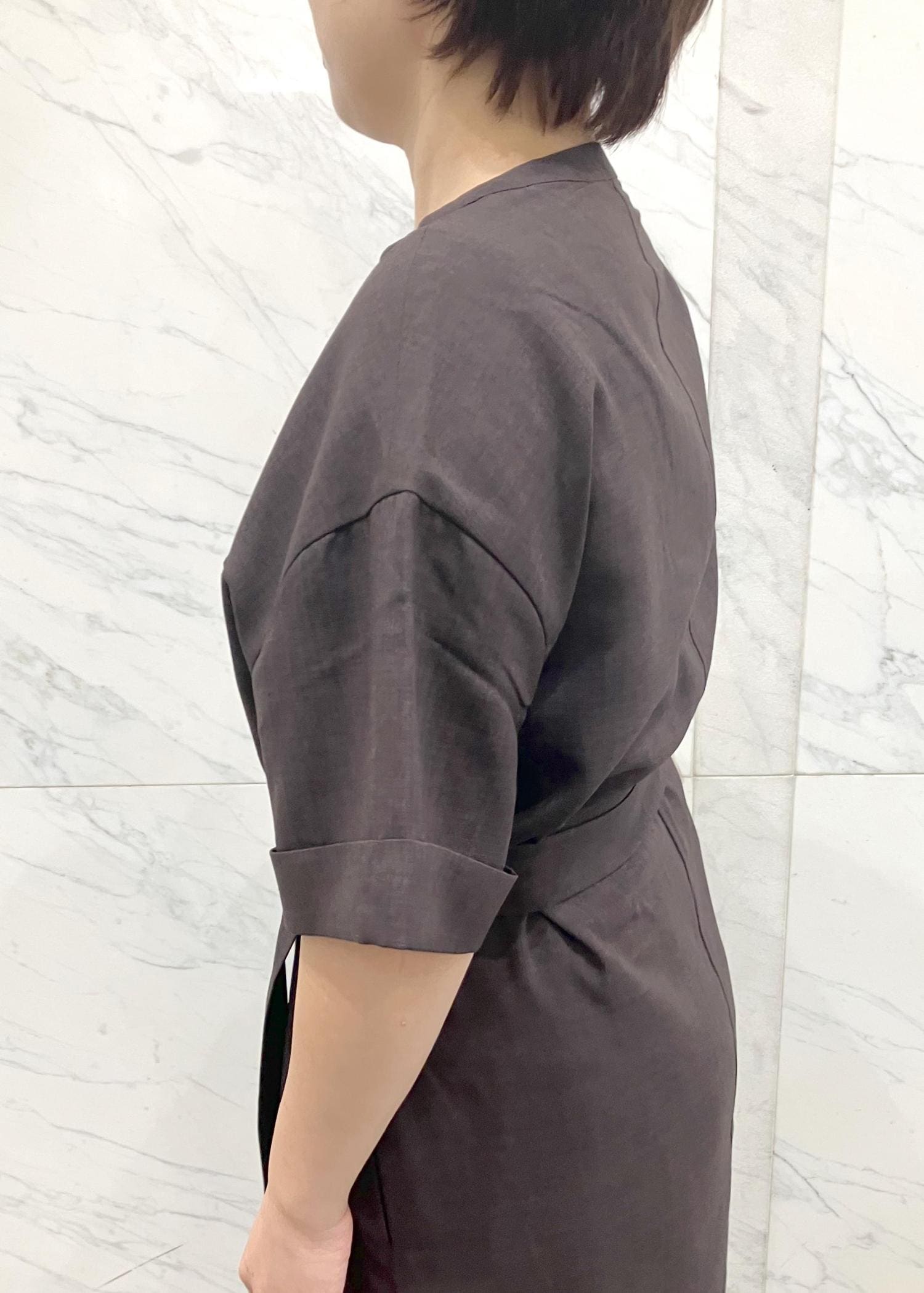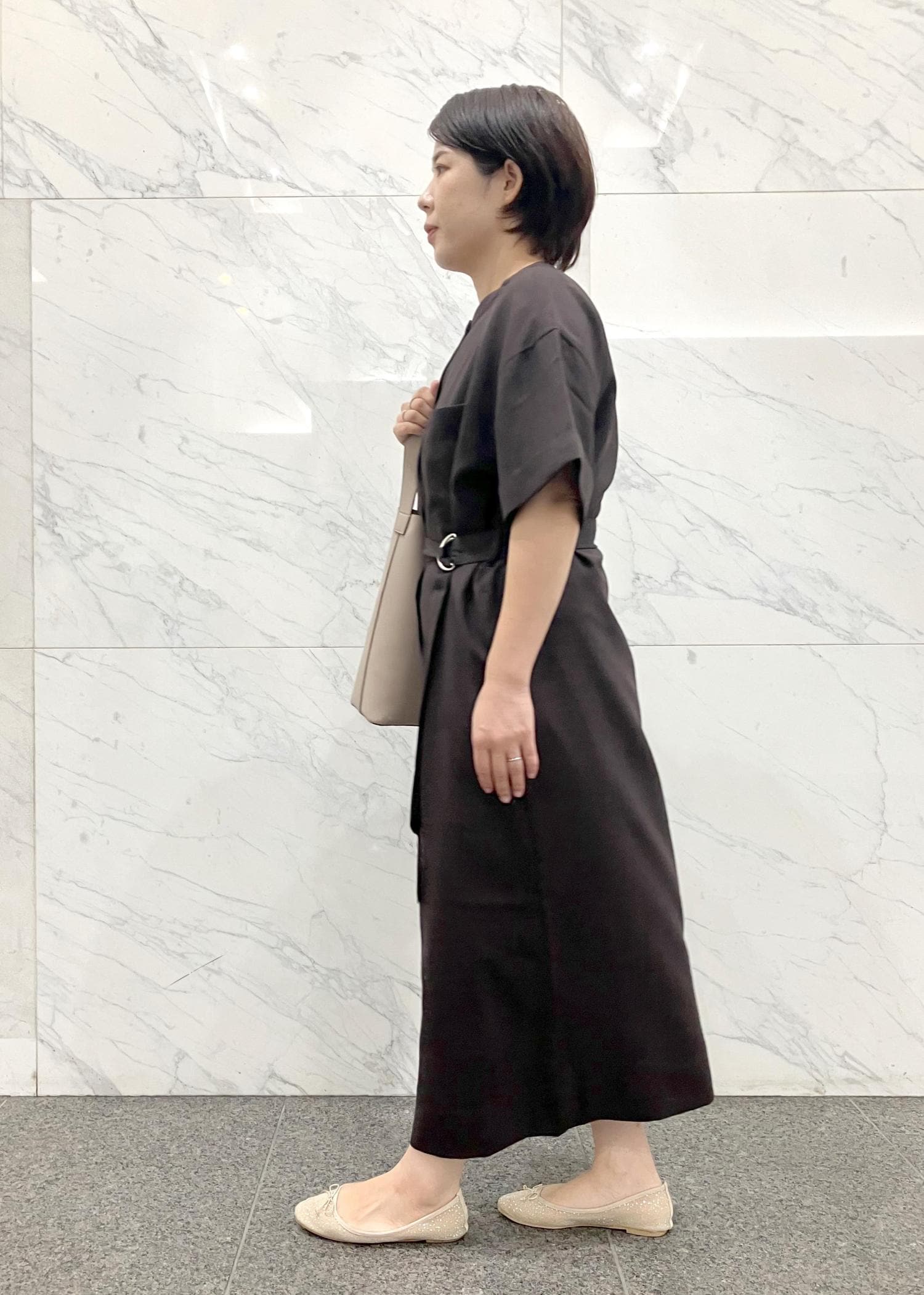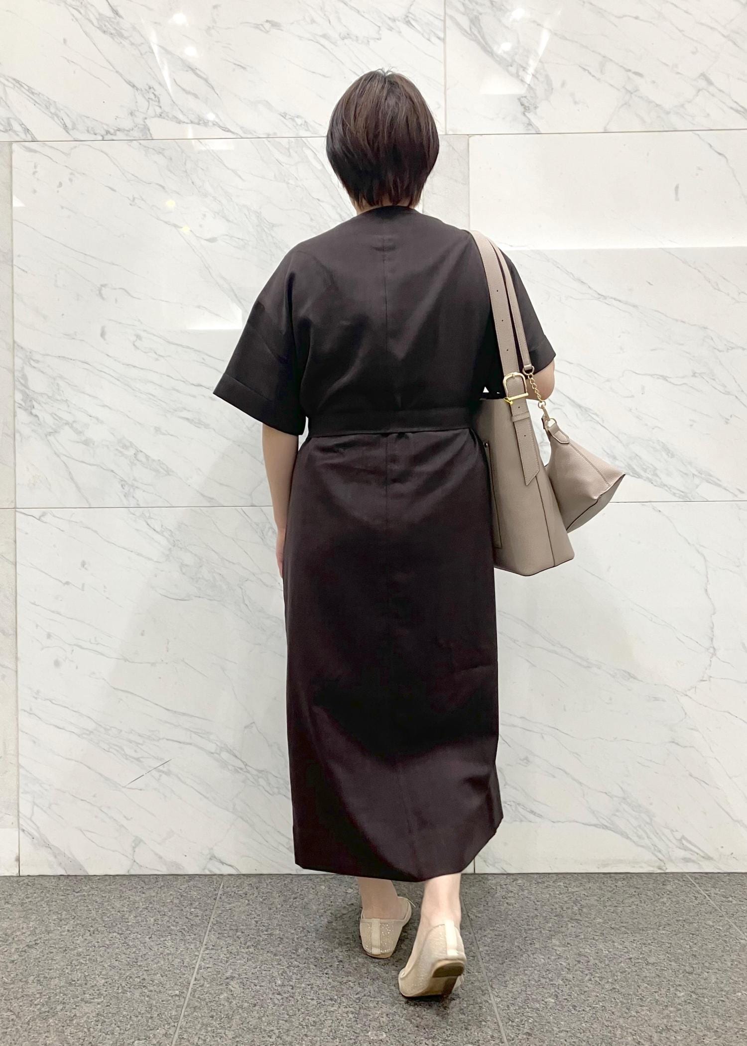 ウエストベルトがあるワンピースは1枚でも着やすいです。