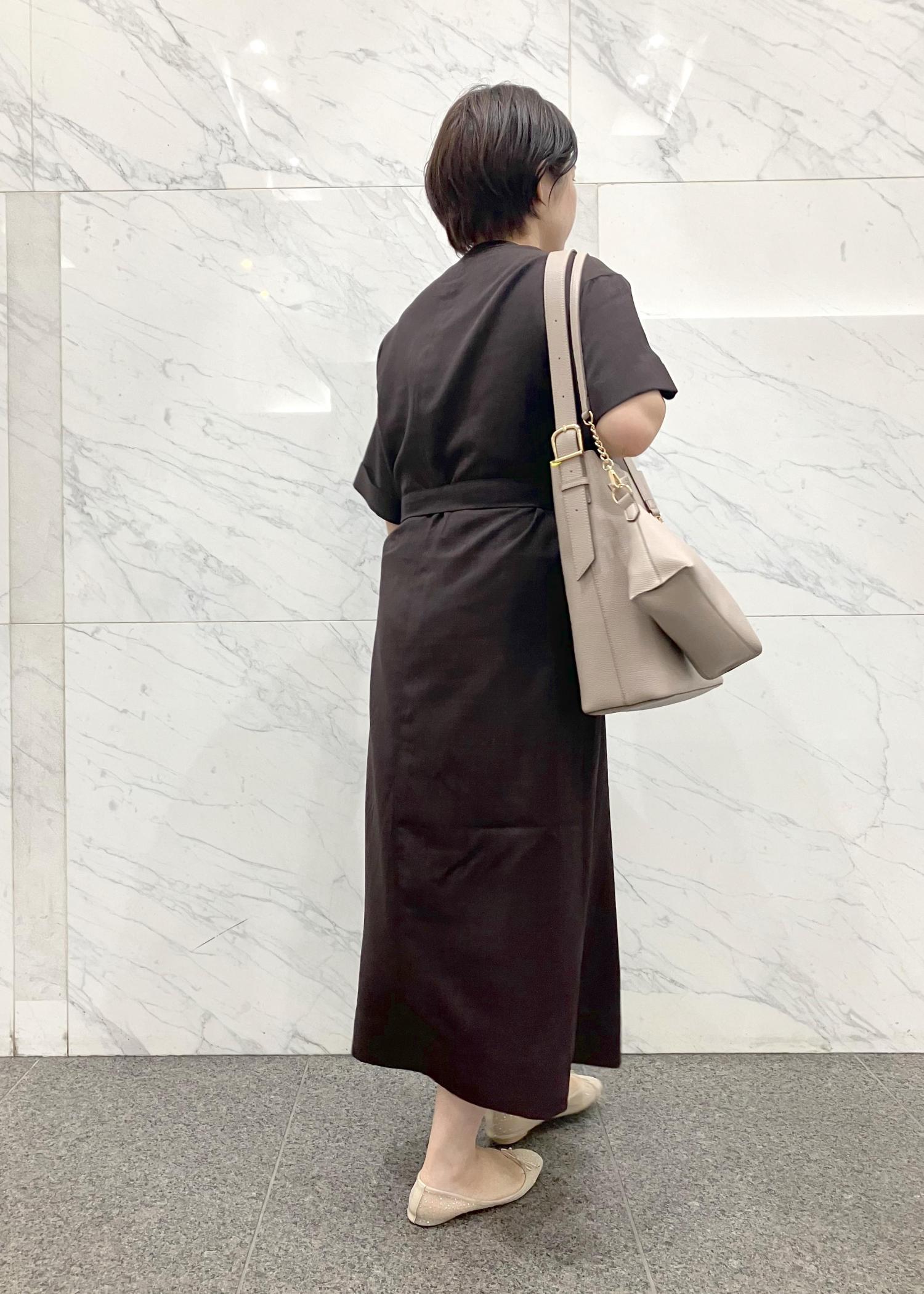 胸元はあいてなく、スカートの広がりも少なめなのでお仕事にもおすすめです。