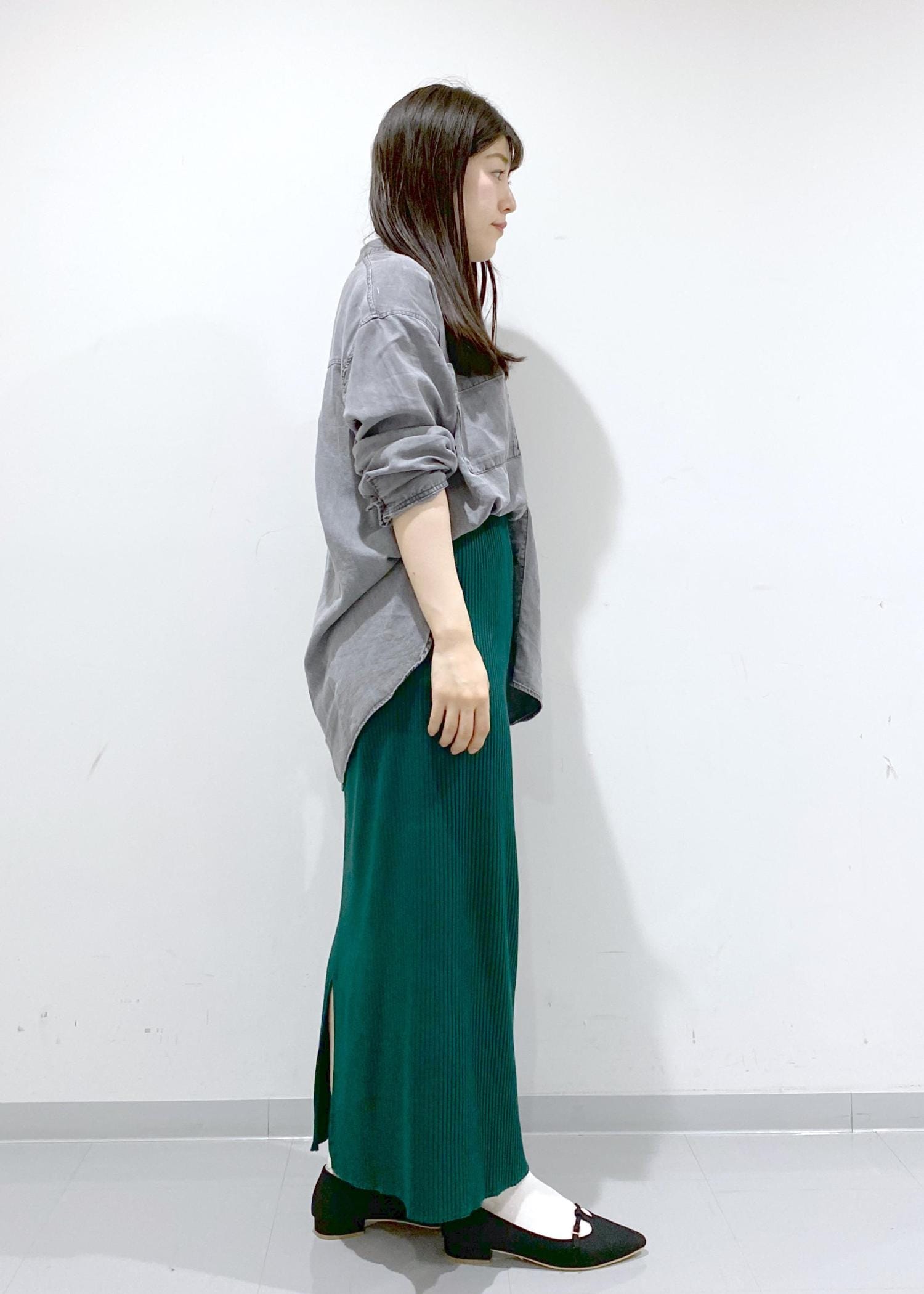 くるぶしあたりの丈感で、バックスリットが入っているのでIラインシルエットでも歩きやすいです。