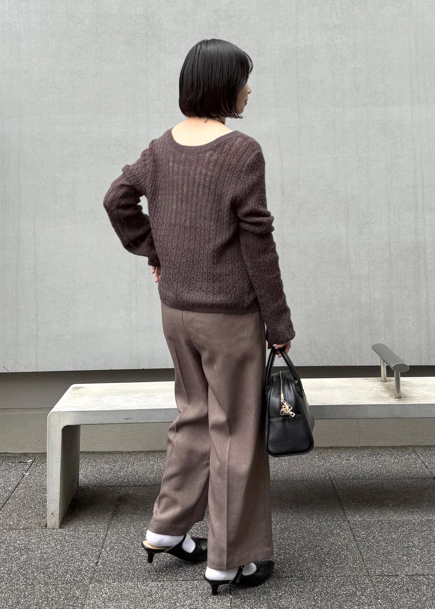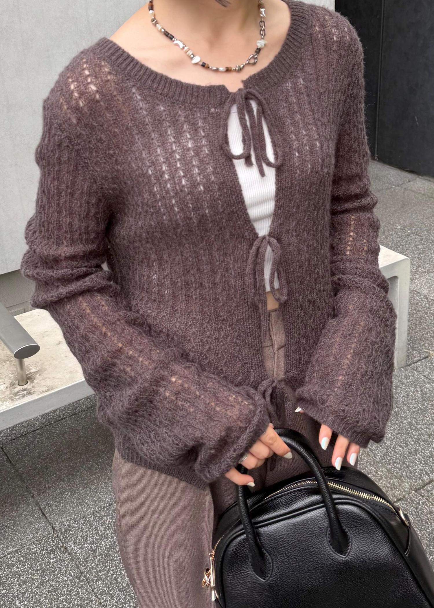 ROPÉ PICNICレース編みメッシュニットカーディガンダークブラウン / F¥3,993レビューモヘアのような素材感のカーディガン