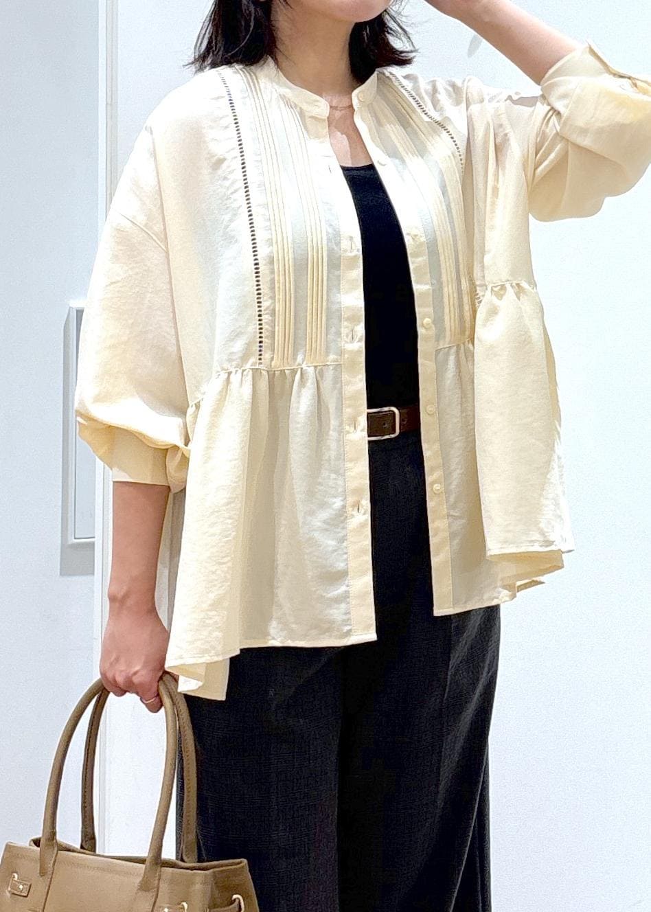 ROPÉ PICNIC【UVケア・防シワ】羽織れるピンタックデザインペプラムシャツクリーム / M¥3,993レビュー軽くサラッとした素材のシャツで、秋らしさを取り入れつつ軽やかに着ていただけます。