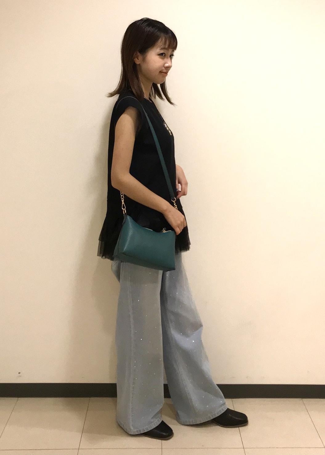 小物はブーツと深緑のバッグを合わせて秋らしさを取り入れてます。