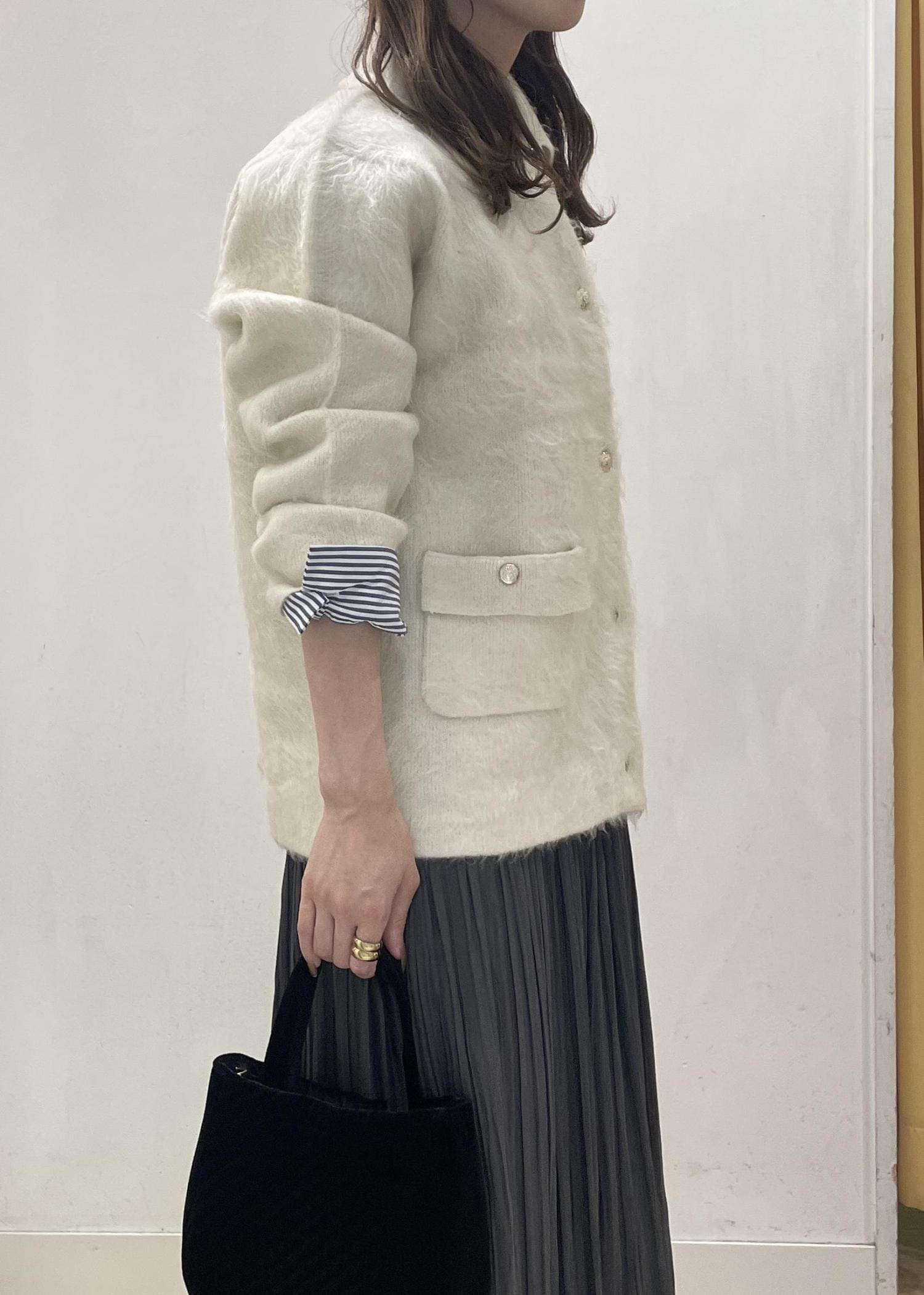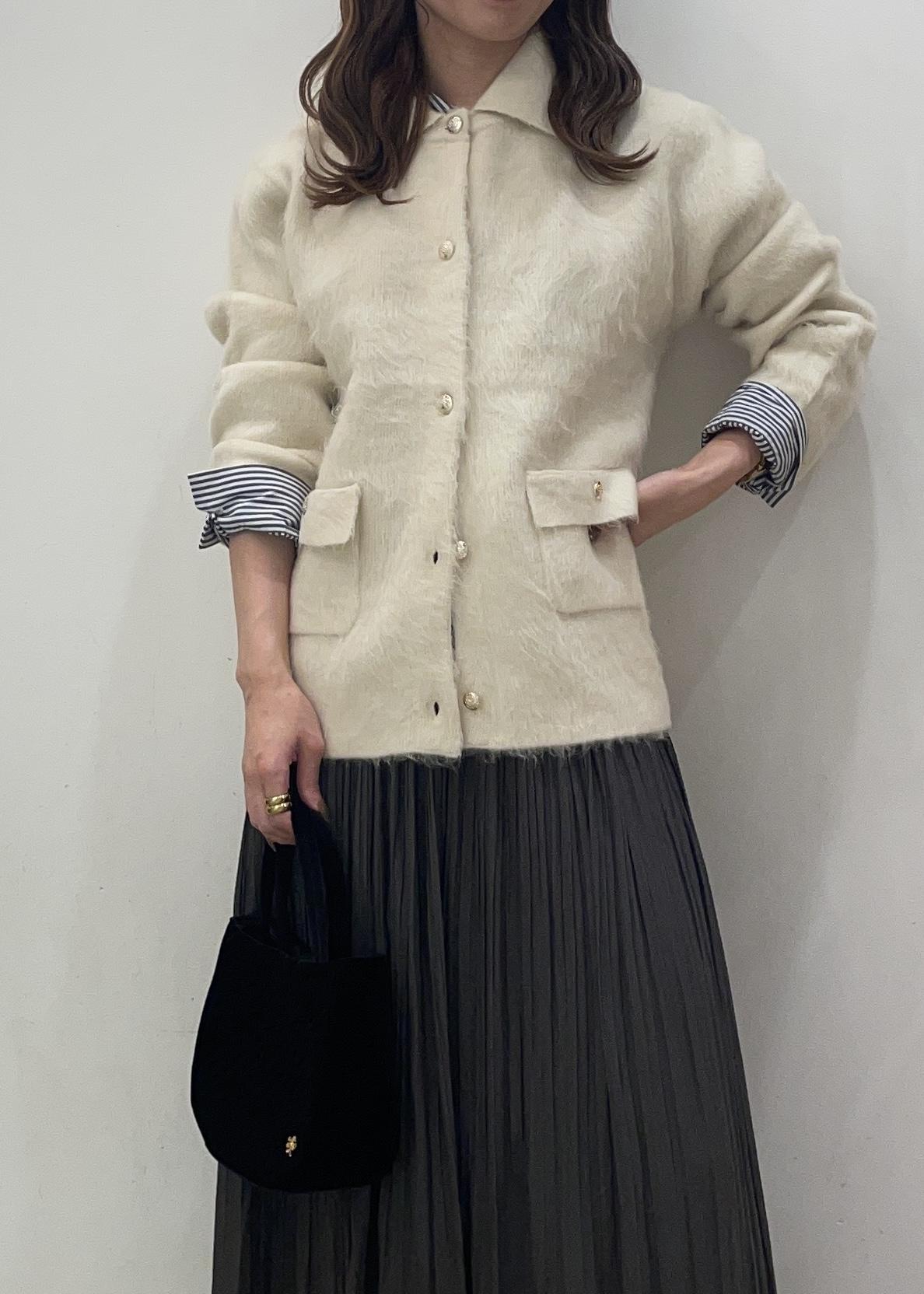 襟取り外し可能な起毛カーディガンは綺麗めコーデやカジュアルコーディネートなど