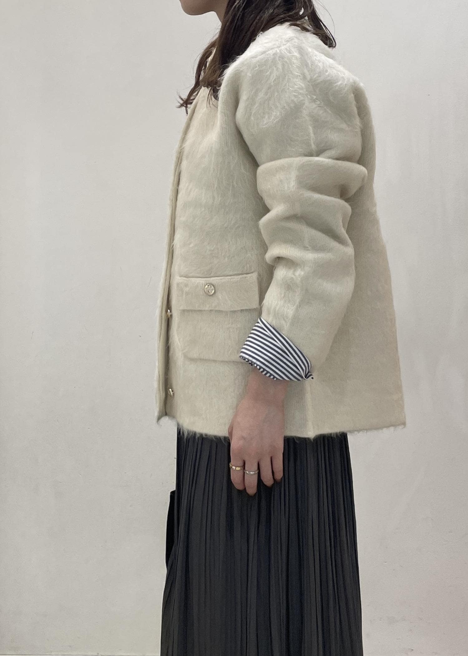 襟取り外し可能なので雰囲気を変えて綺麗め・カジュアルどちらにもお使いいただけます。 -