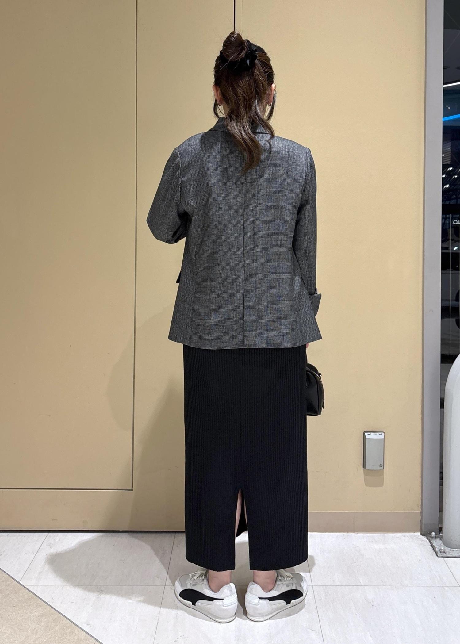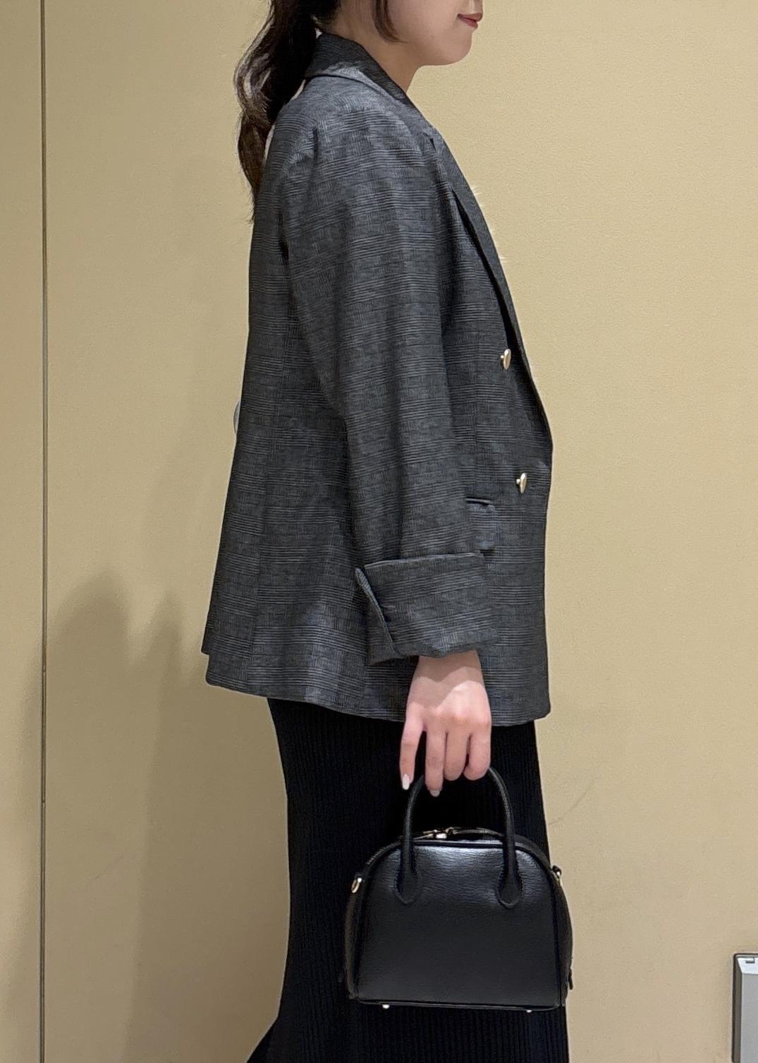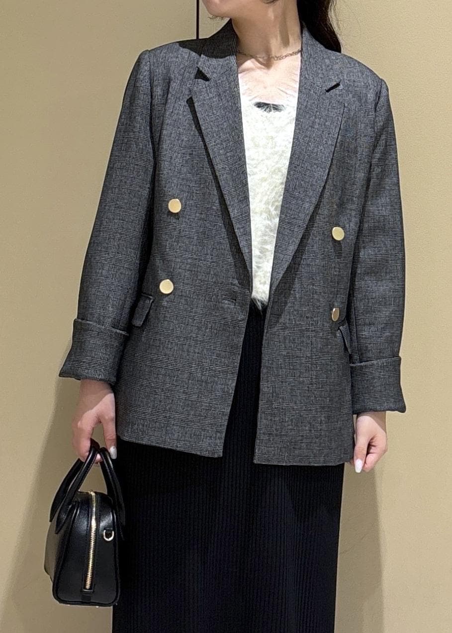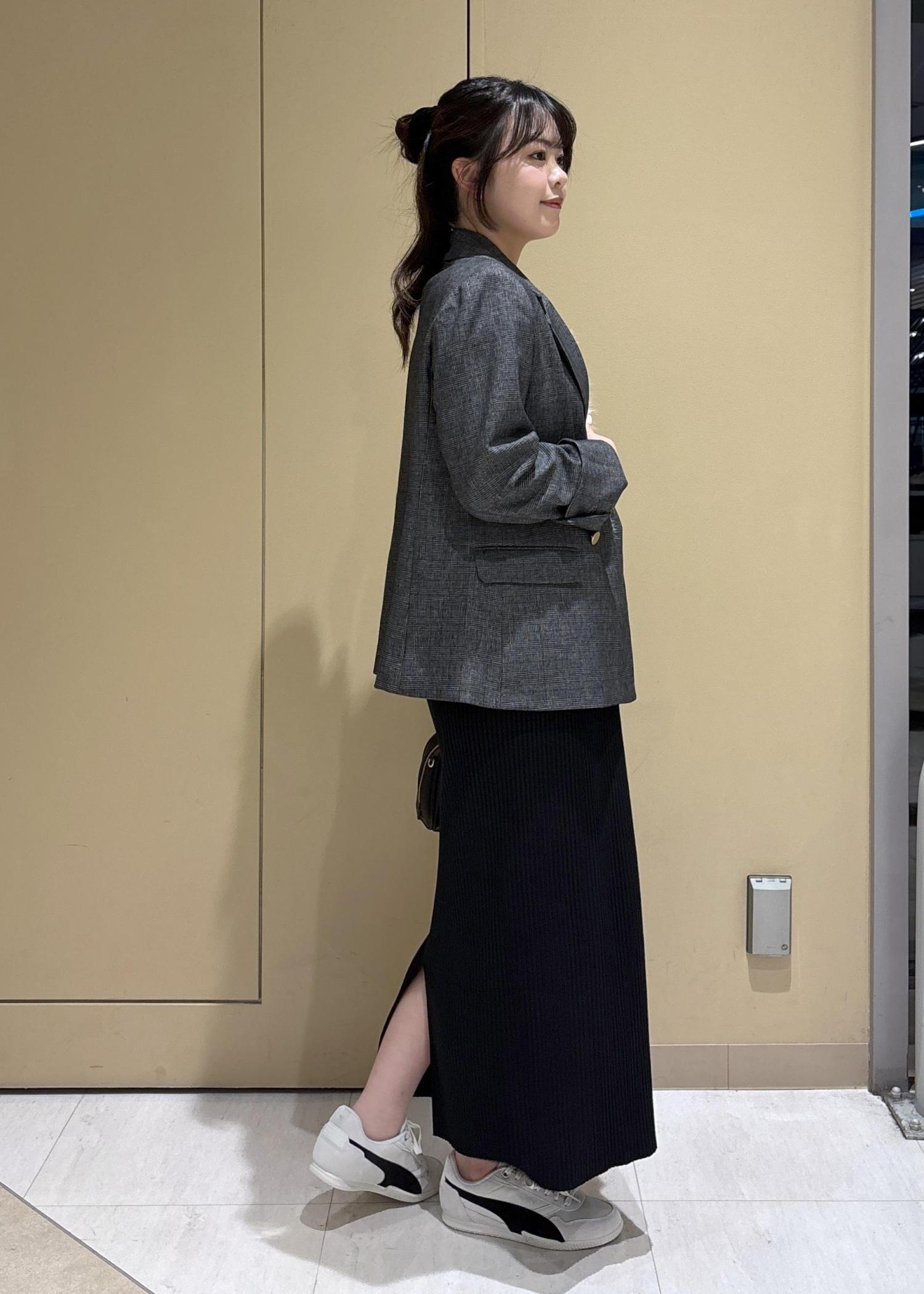 秋といえば、のジャケットを使ったコーディネート。今年らしくシャギーニットをインナーに、トタンテレコスカートを合わせて大人カジュアルなスタイルにしました。外しのスニーカーもポイントです。