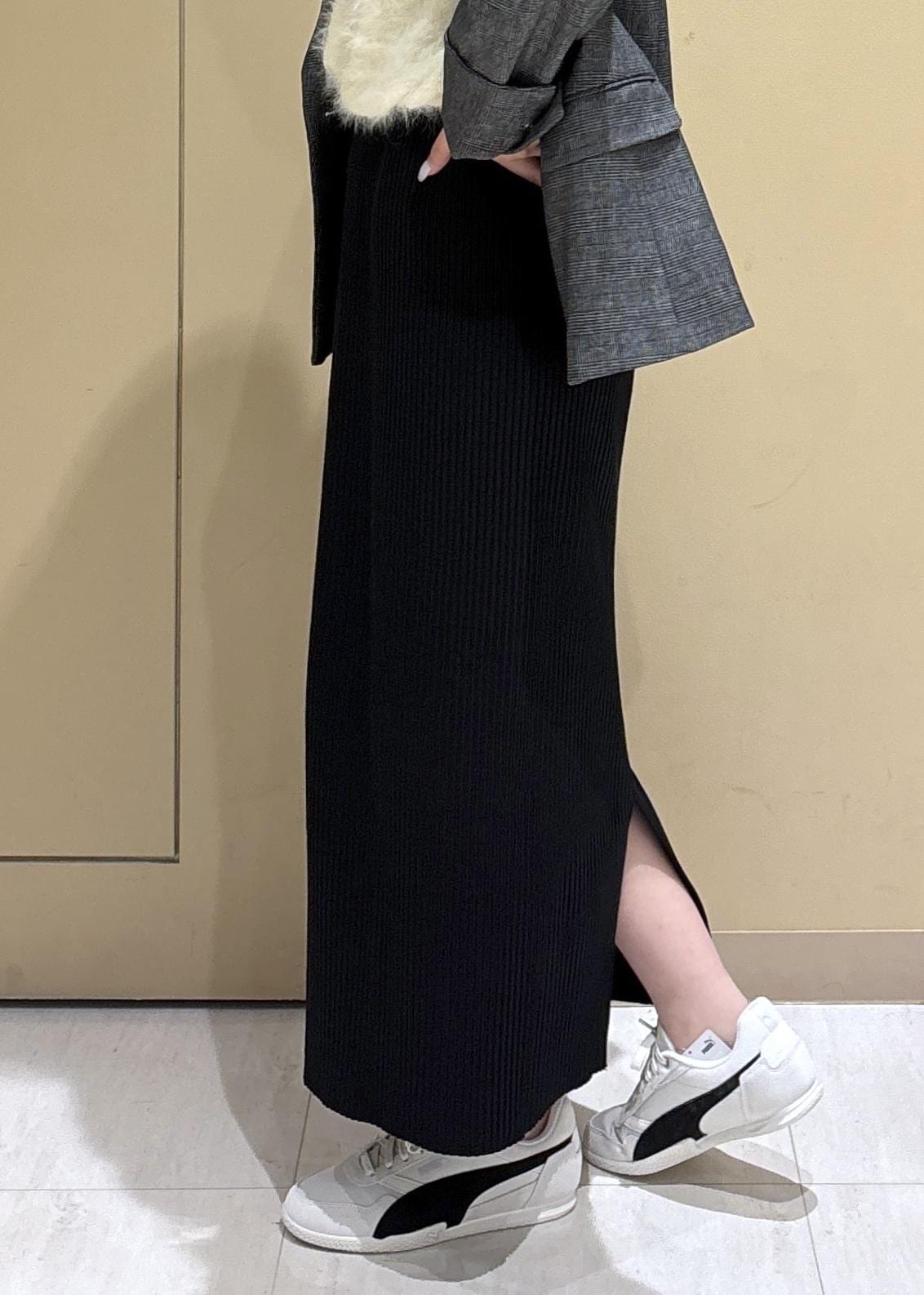 ROPÉ PICNICトタンテレコ Iラインリブニットスカートブラック / 38¥4,499レビュー161cm38サイズで足首が少し見えるくらいの丈感です。ハリのある素材がボディラインを拾いすぎず安心な着用感。見た目以上に伸縮性が高くスリットもしっかり入っているので足捌きもよく楽な履き心地です。