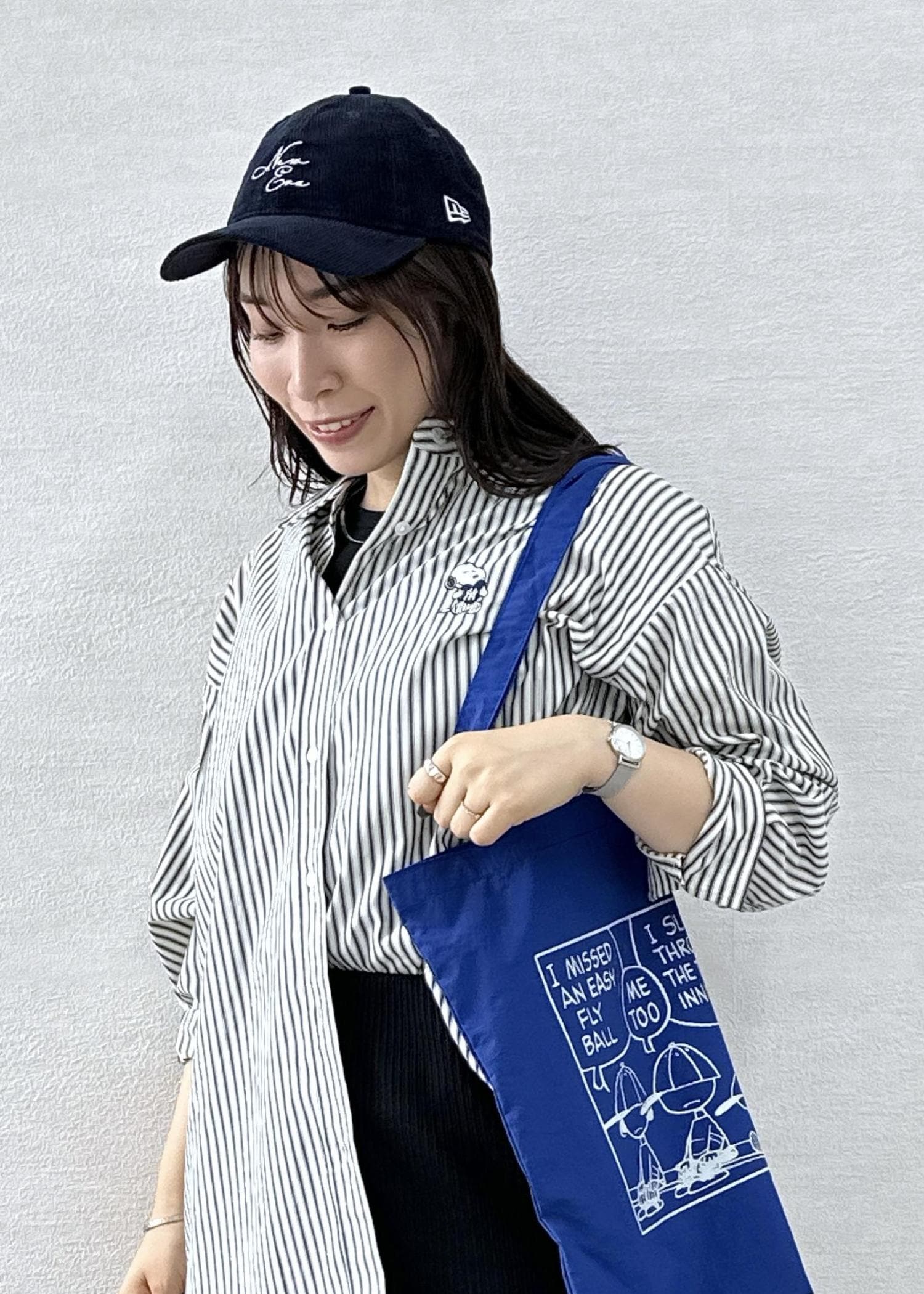 スヌーピーがワンポイントになっているシャツと、ブルーがアクセントのトートバッグがスペシャルコレクションのアイテムです!