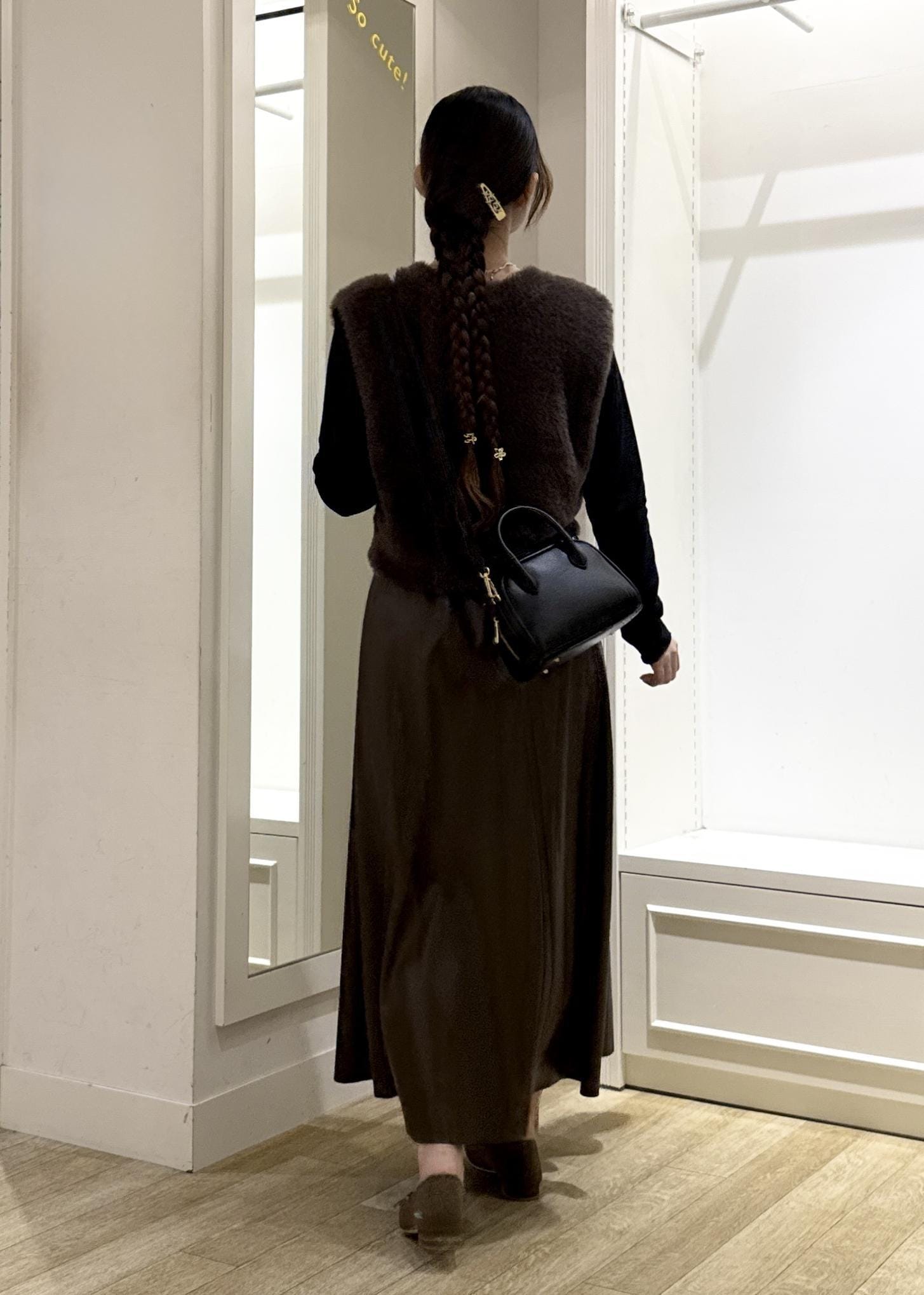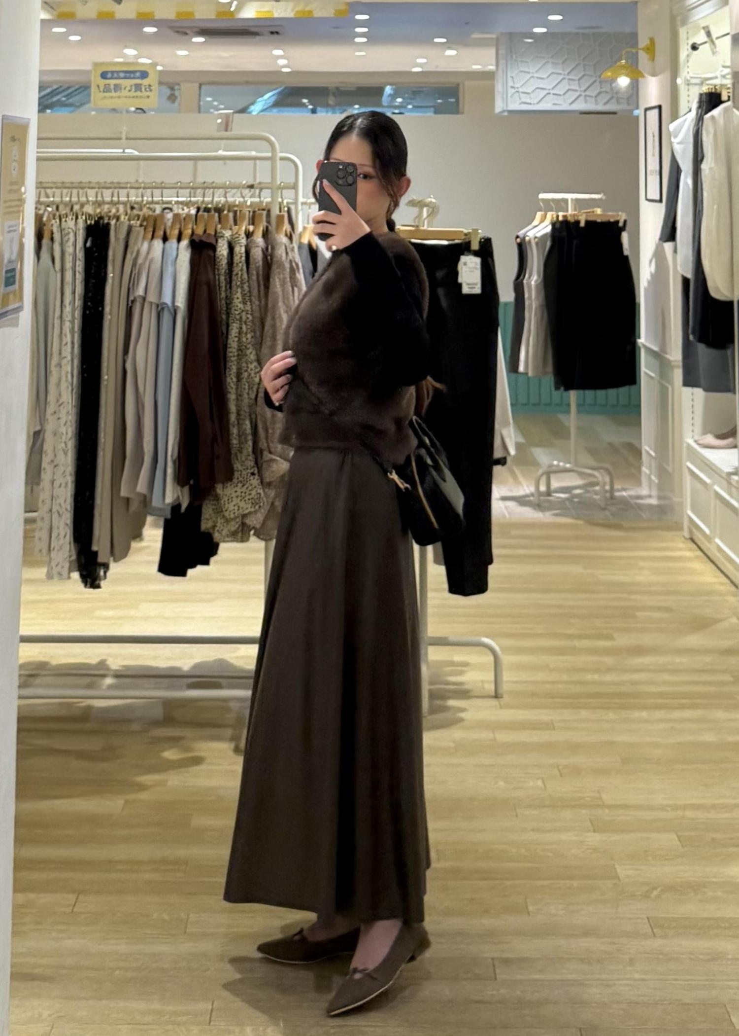 ROPÉ PICNICシンセティックレザーフレアロングスカートダークブラウン / M¥4,994レビュー生地感はすごく柔らかく薄目です!