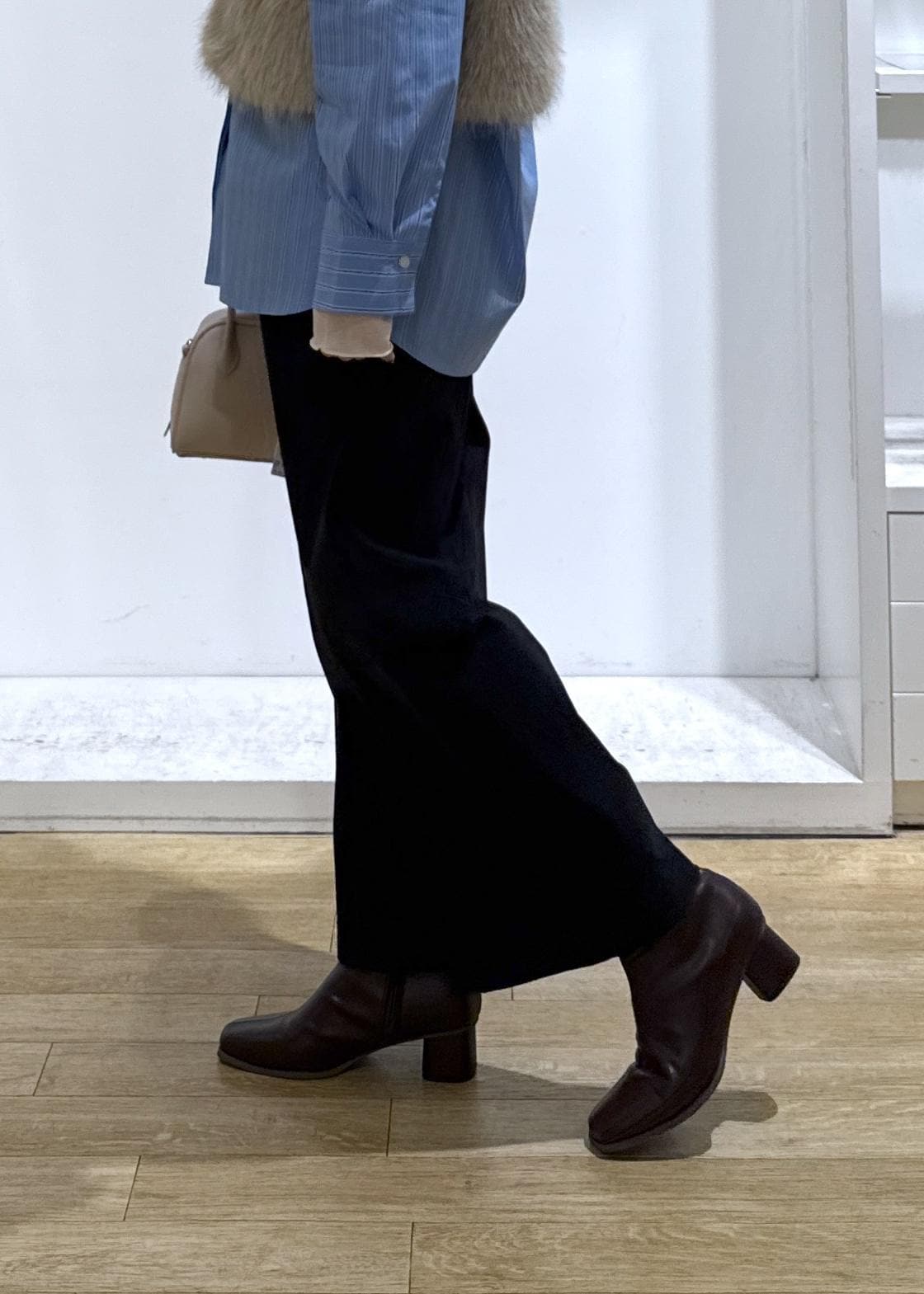 柔らかいストレッチの効いた合皮素材なので足首部分も締め付けすぎず履けます。 -
