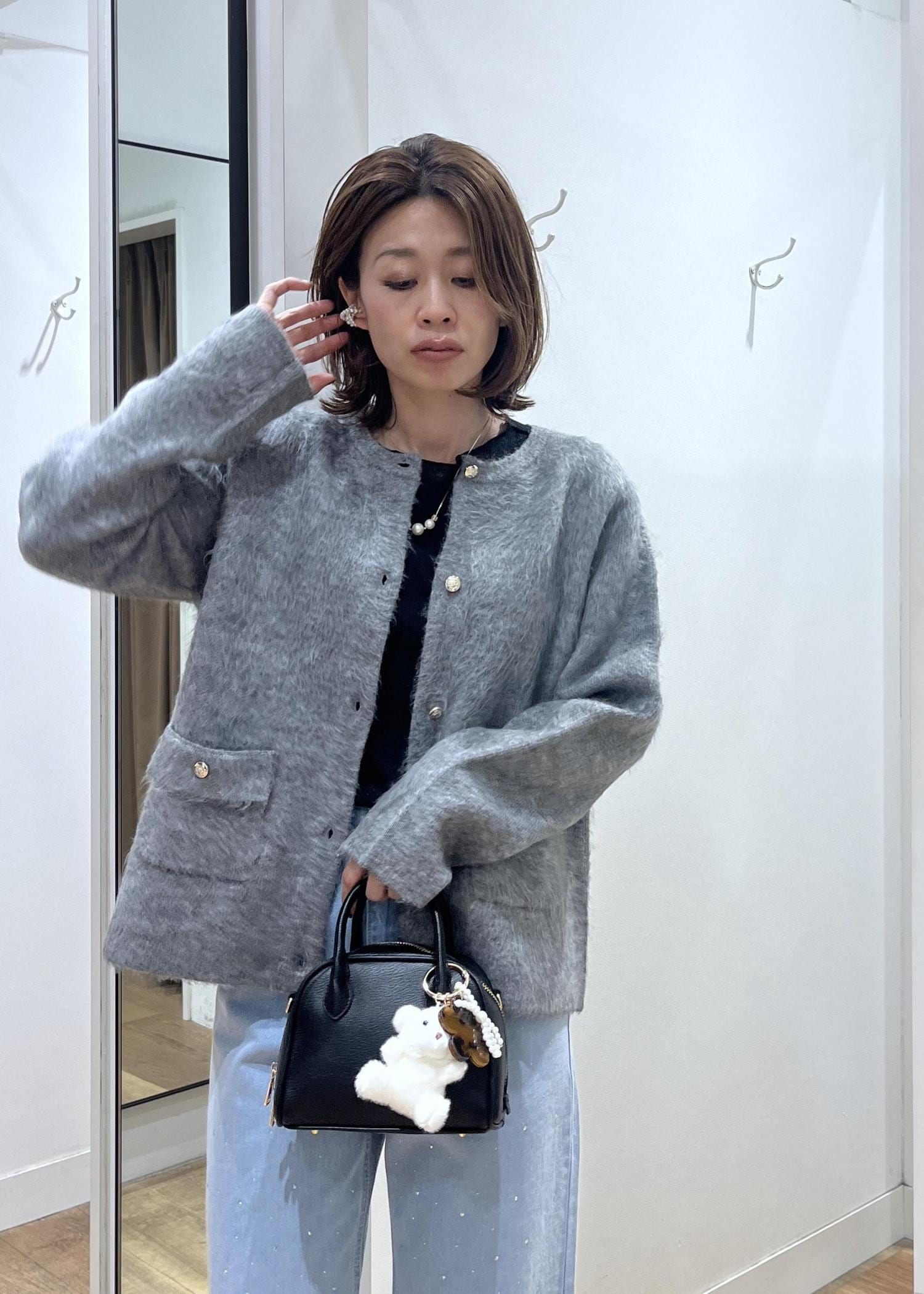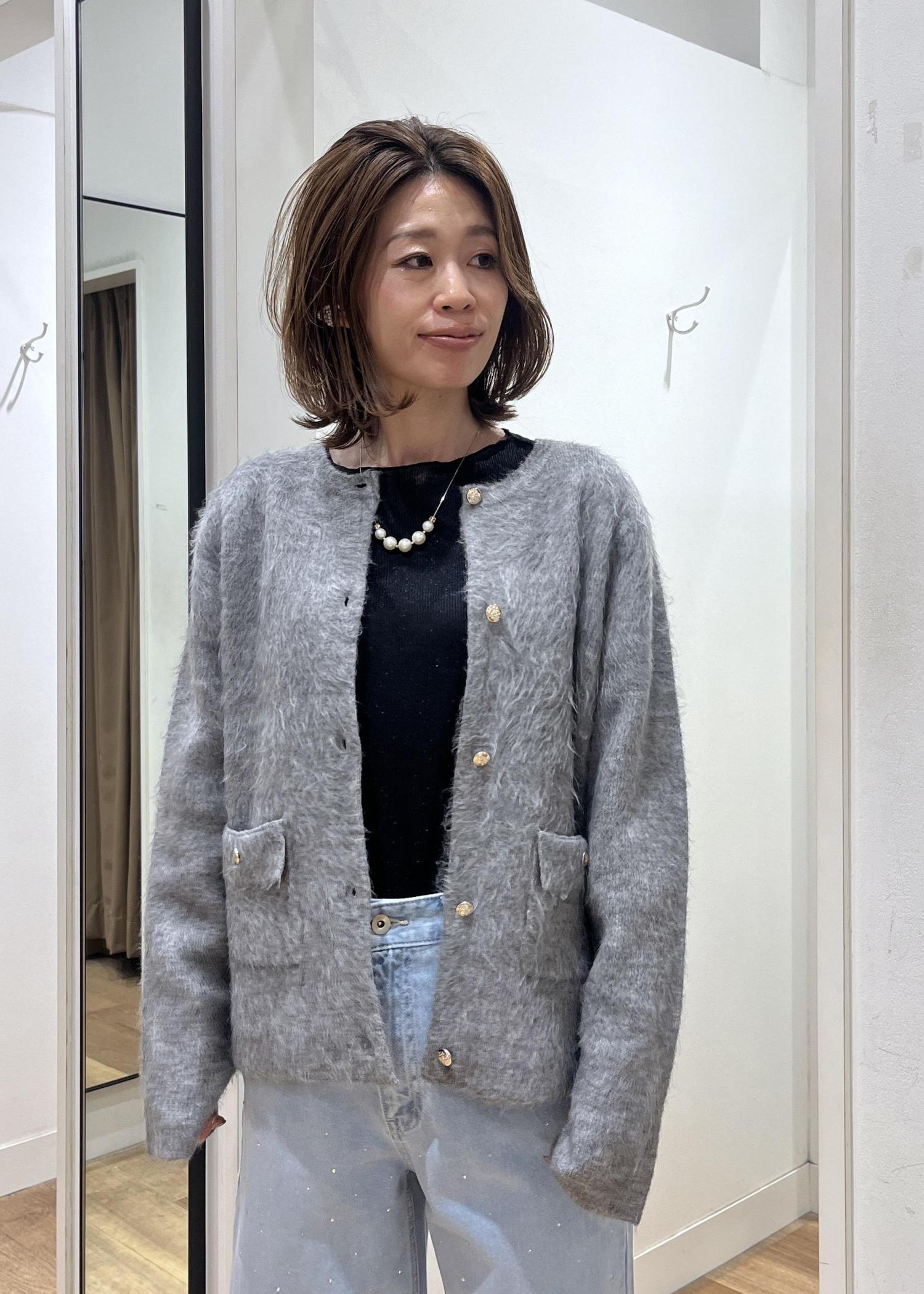 ROPÉ PICNICダブルフェイス襟取り外し起毛カーディガンライトグレー / F¥5,995レビューふんわり柔らかくて軽い毛足が長い素材です。