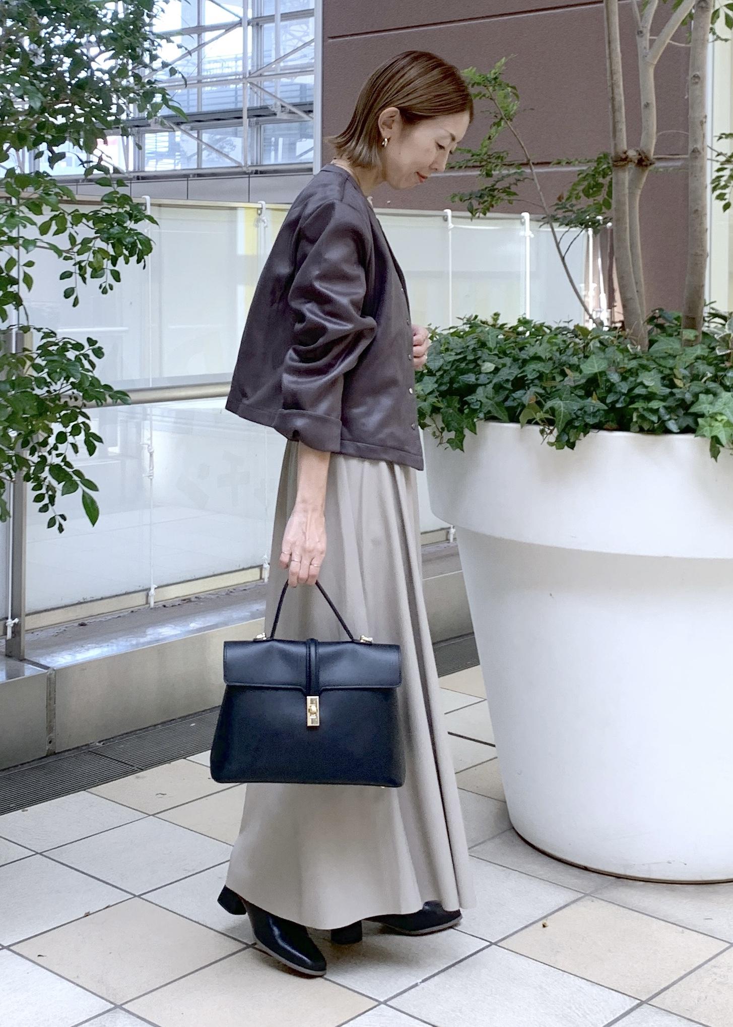 シンプルでオンオフどちらのスタイリングにも使いやすい。